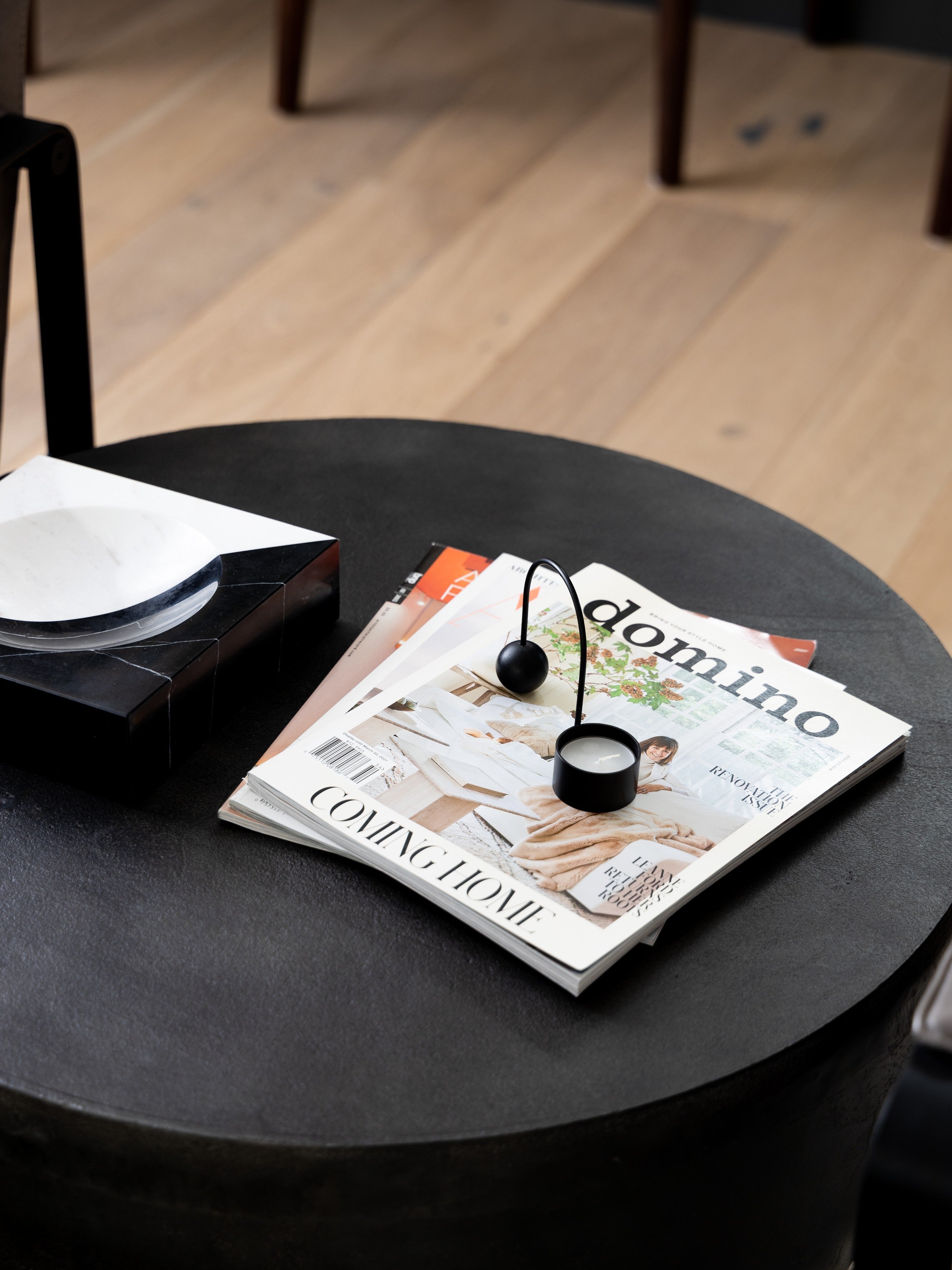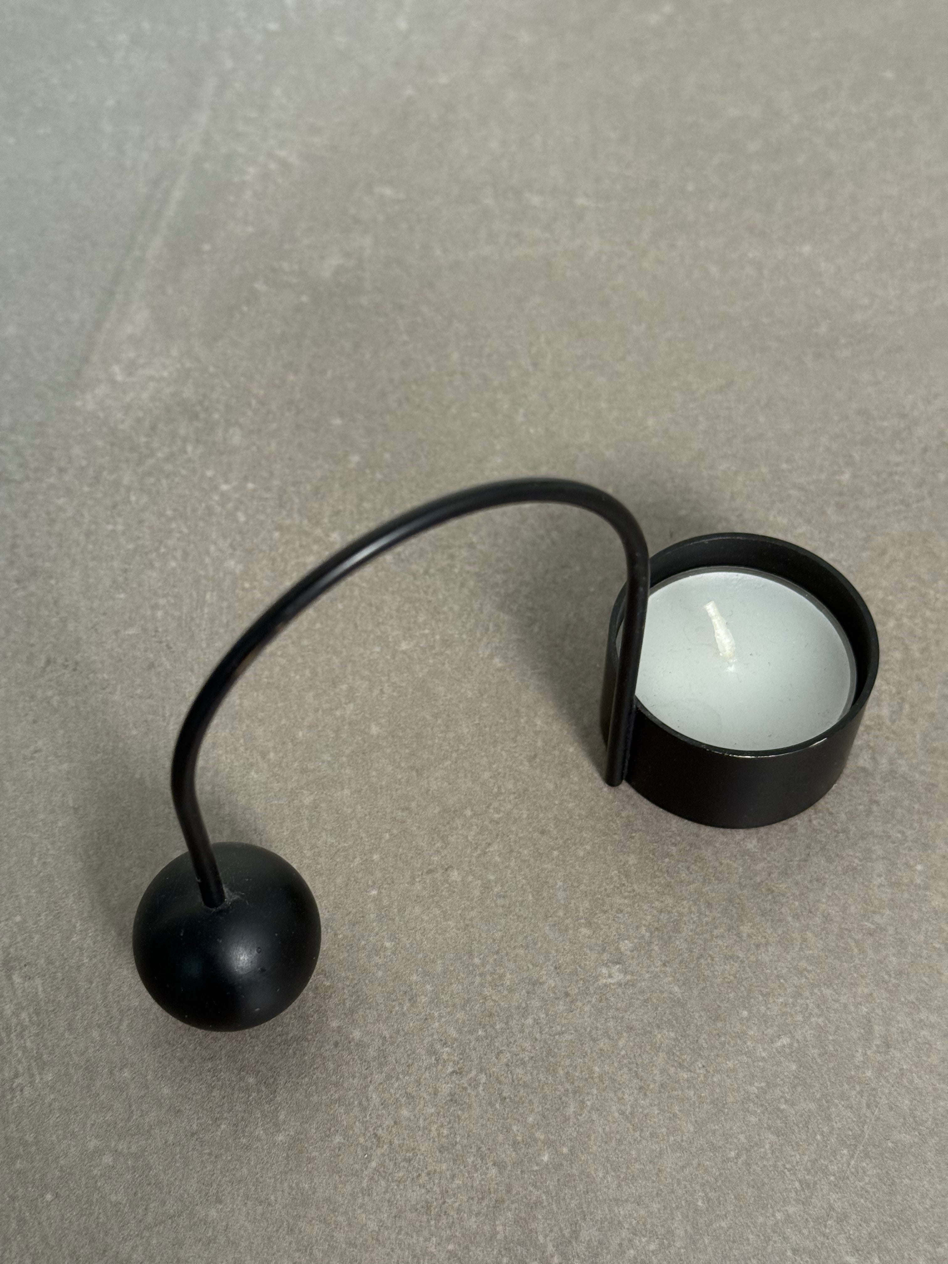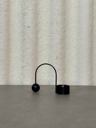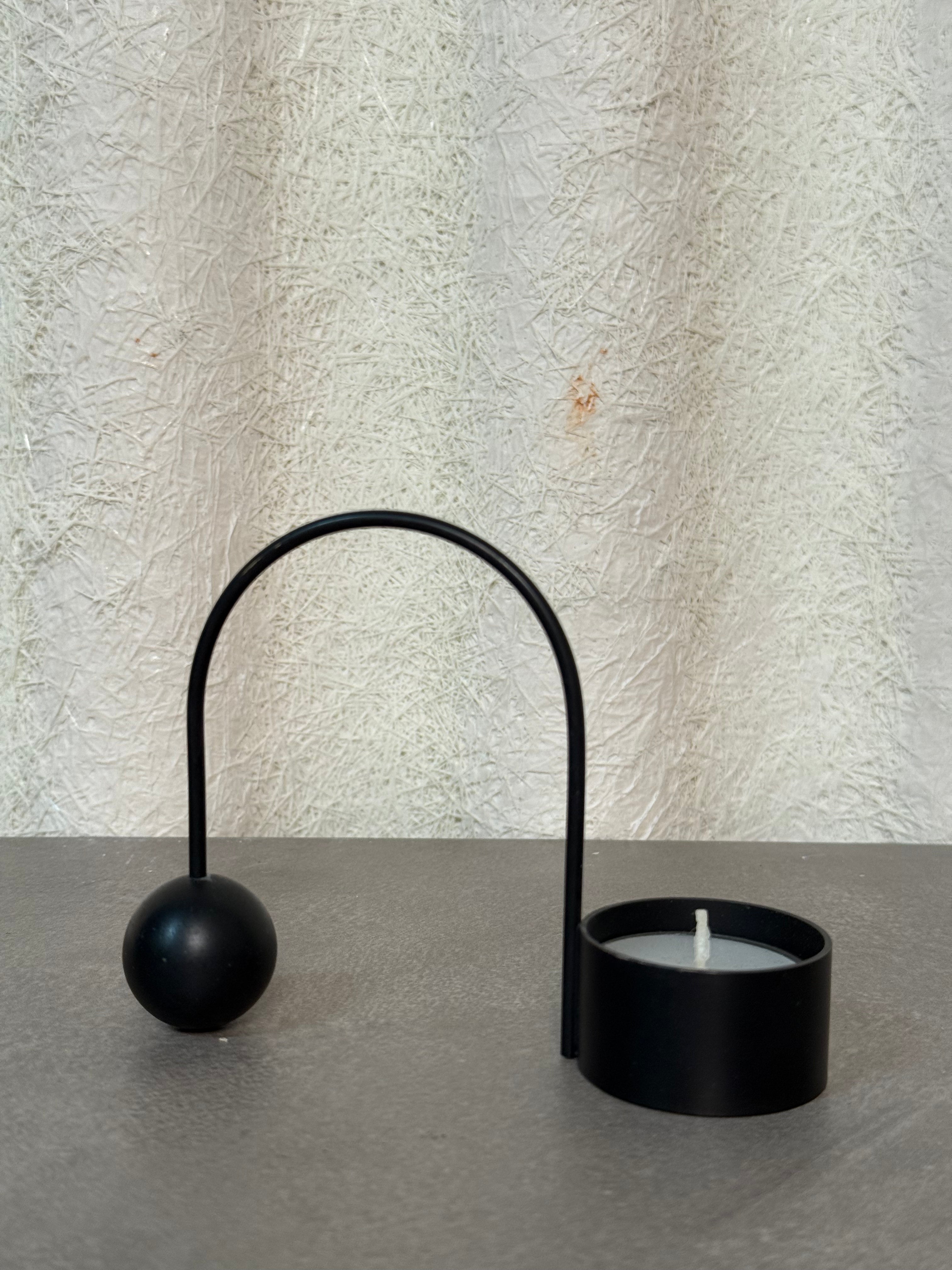Modern minimalist tea light holder crafted in black metal with a sculptural arched design. Perfect for adding warmth and style to any space.