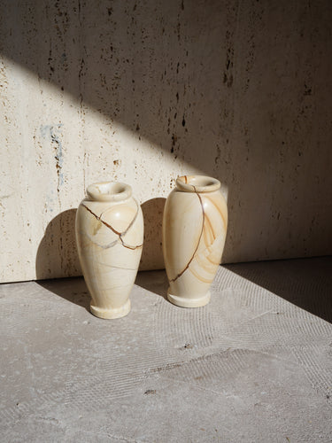 Burma Teak Marble Stone Bud Stem Vase [VINTAGE]