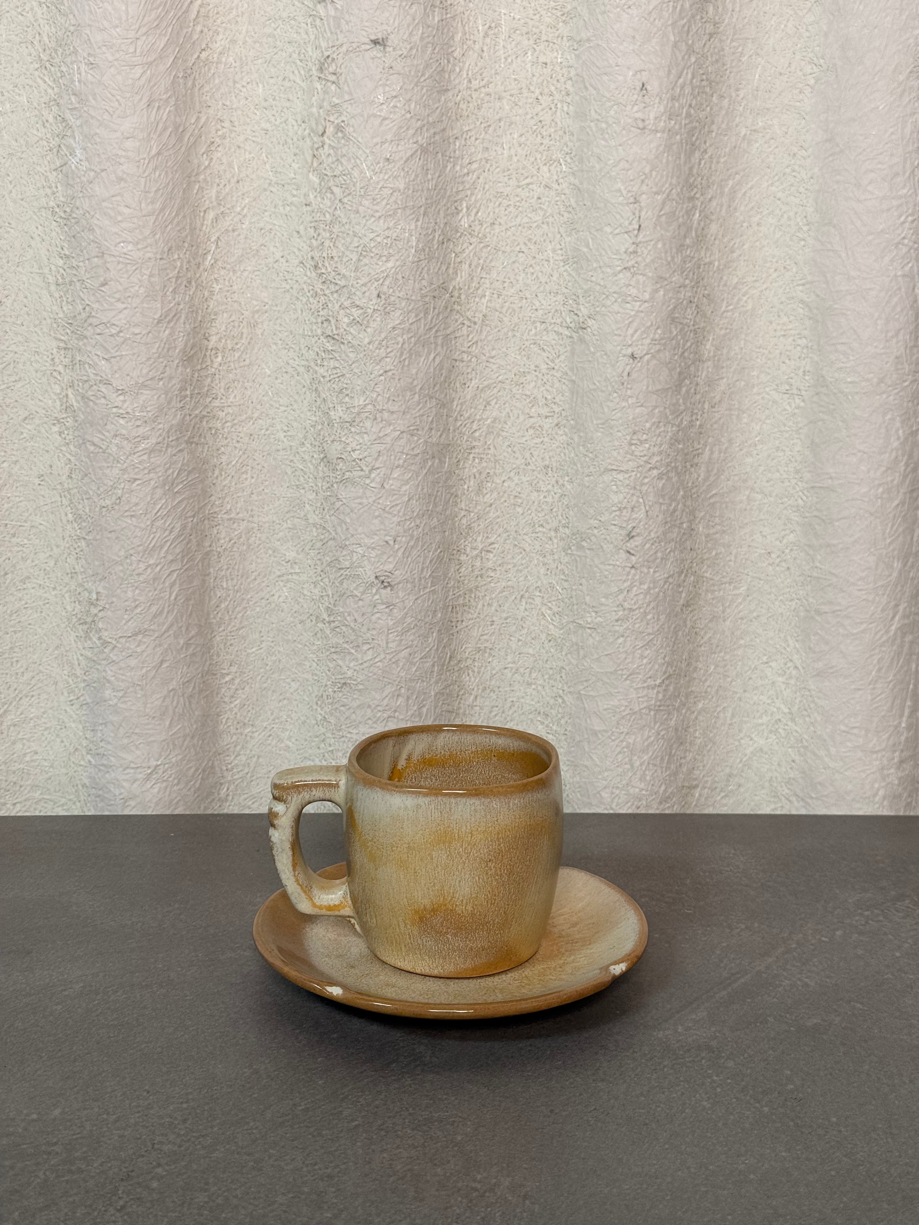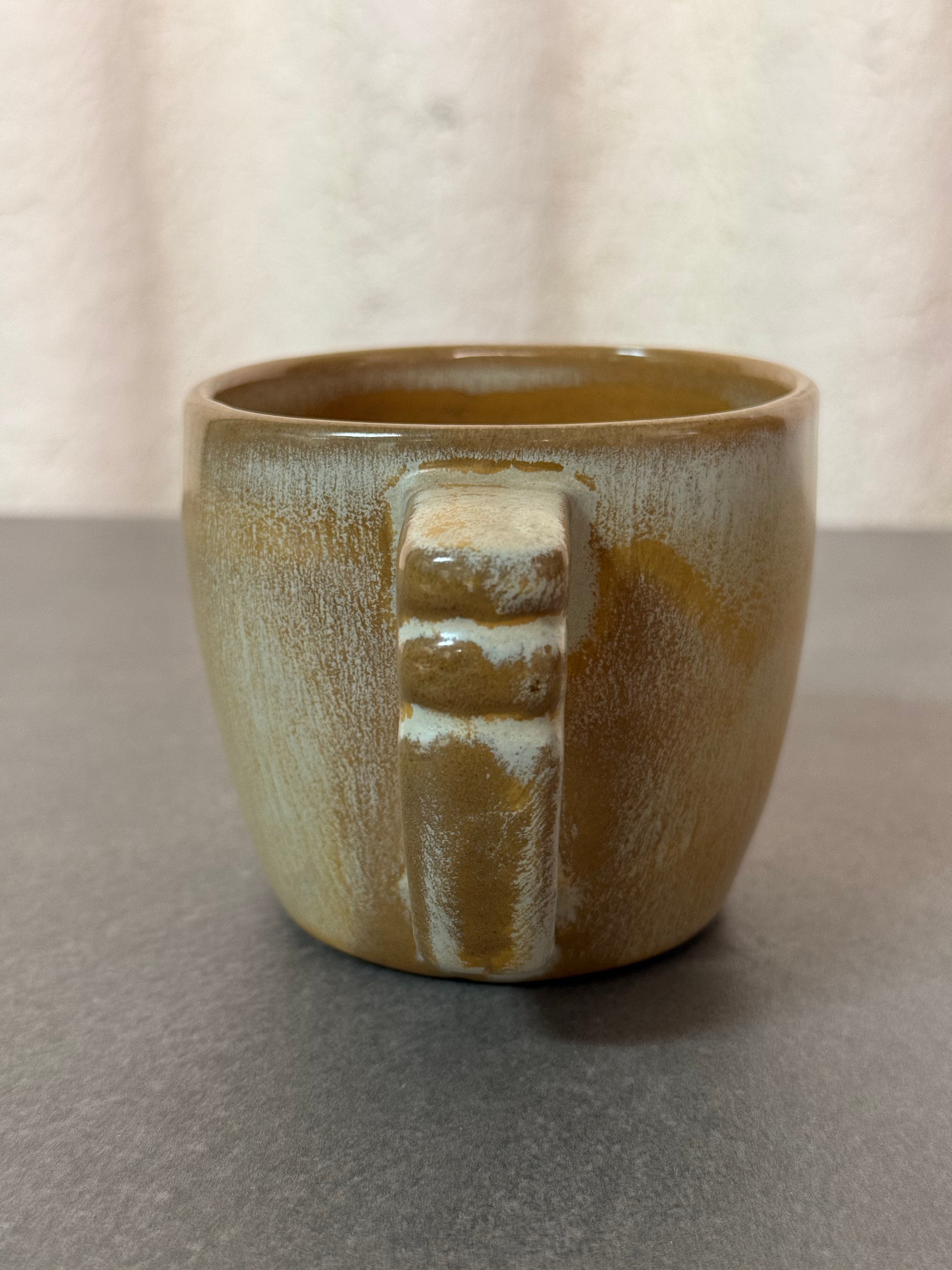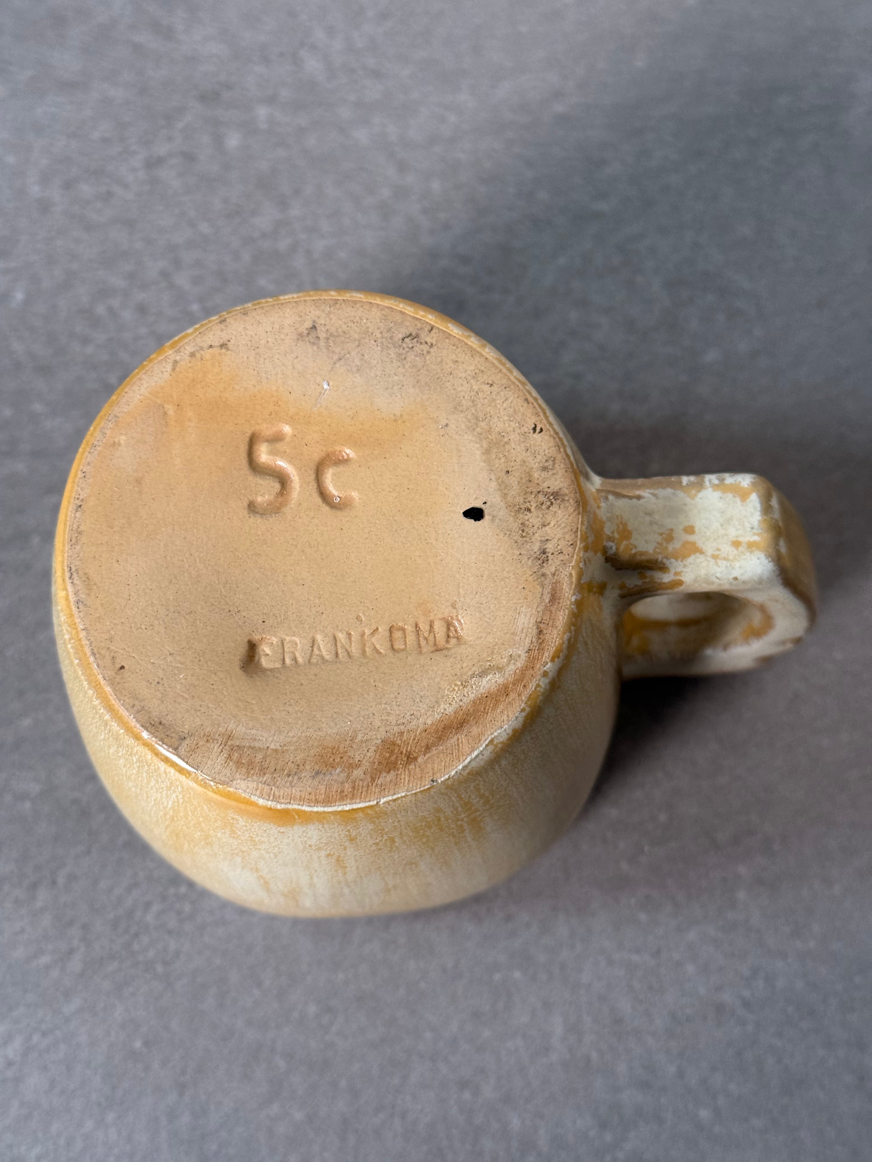 Vintage Frankoma cup and saucer set in the warm Desert Gold glaze, featuring the brand’s signature handcrafted Oklahoma clay and smooth mid-century design. Perfect for collectors or for adding a touch of rustic charm to your coffee or tea ritual. Durable, timeless, and distinctly Frankoma.