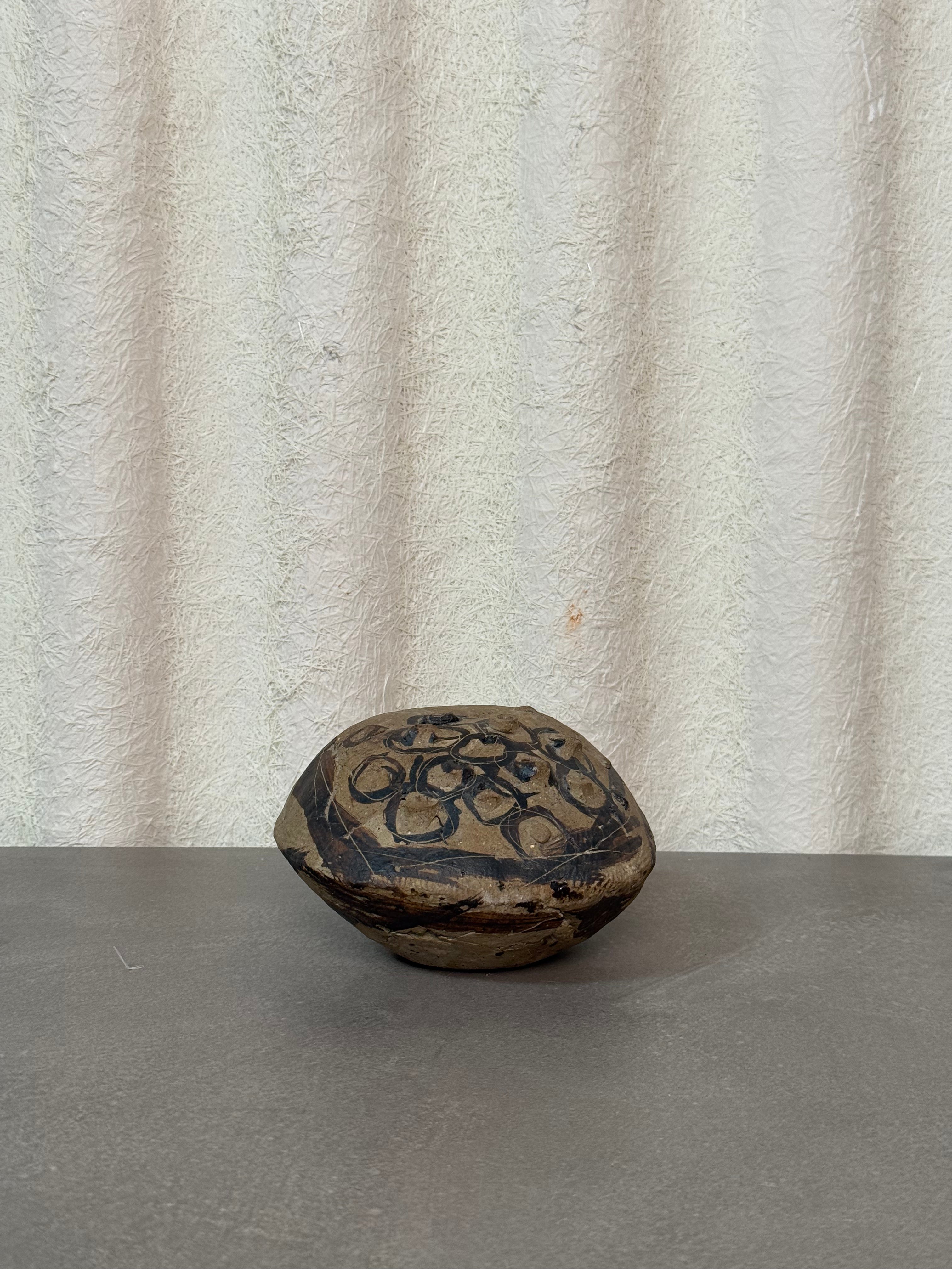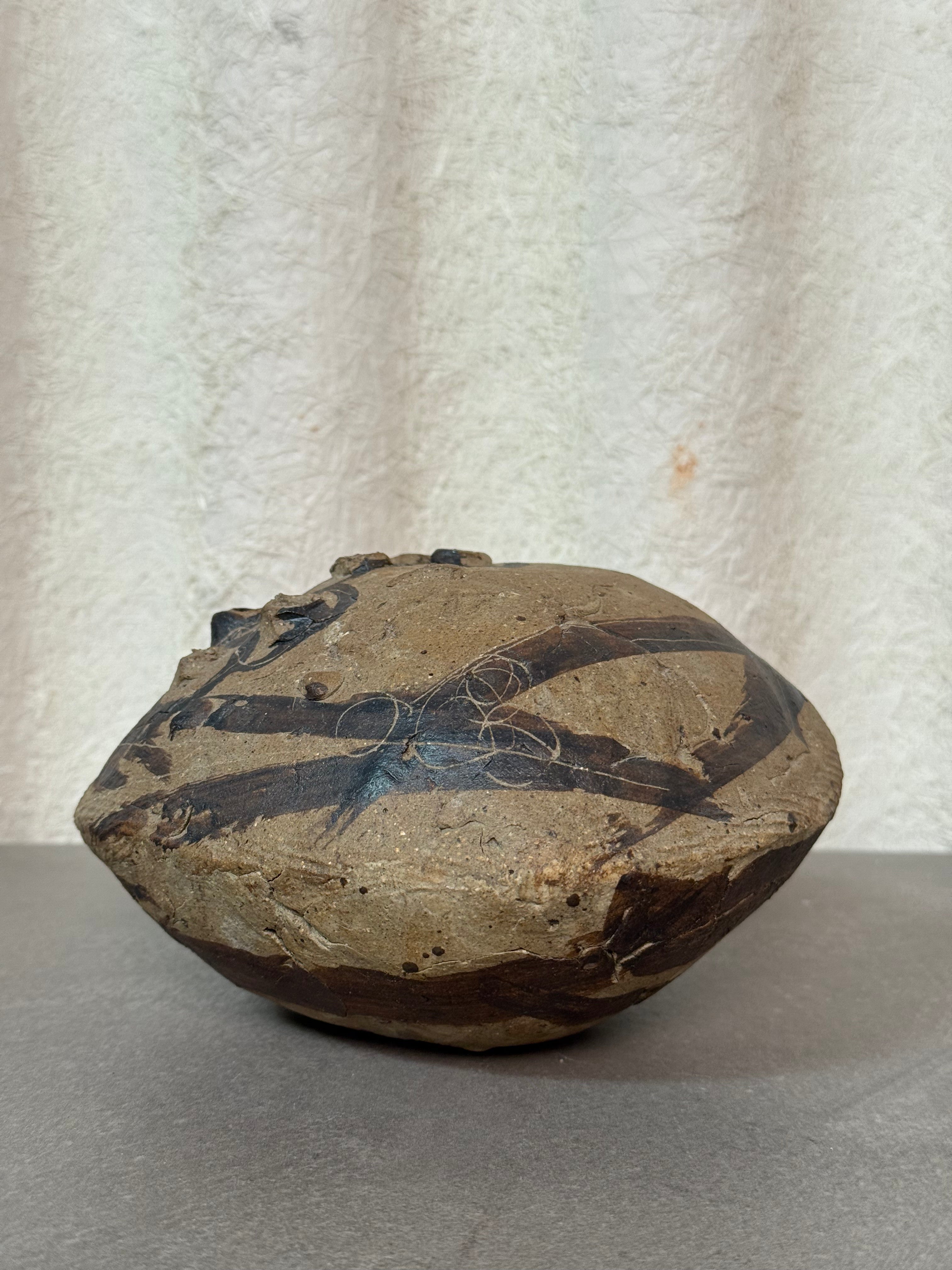 Rare studio pottery weed pot by Maurice Grossman, featuring bold abstract brushwork and organic hand-formed texture. A collectible mid-century modern piece for serious pottery enthusiasts.