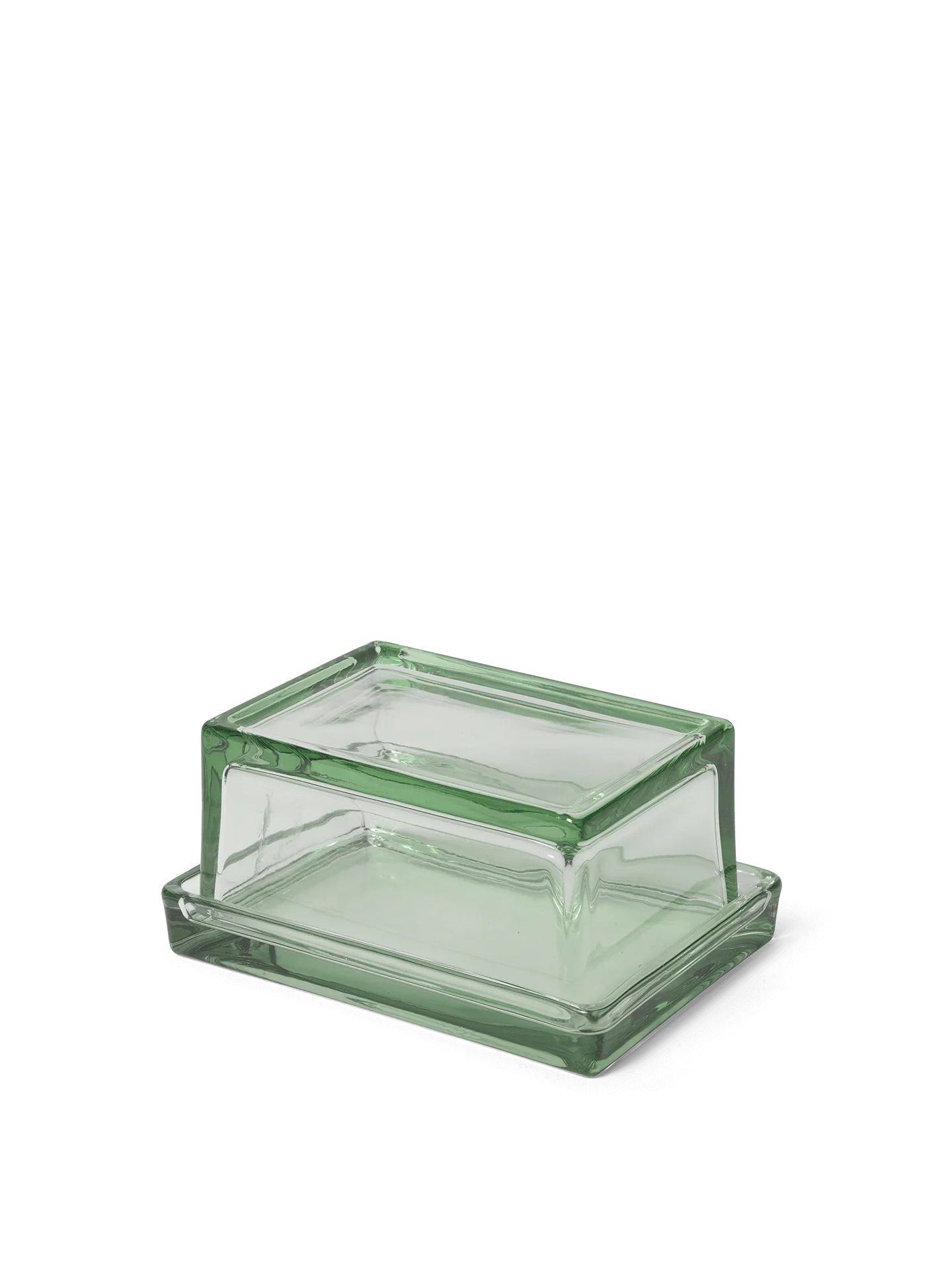 This multifunctional glass container that can be used in a multitude of ways for storing smaller items, including keeping butter fresh in the fridge, displaying jewellery or storing cotton pads in the bathroom. Made from 100% recycled glass, the Box is both decorative and practical, making it ideal for open-storage shelving.