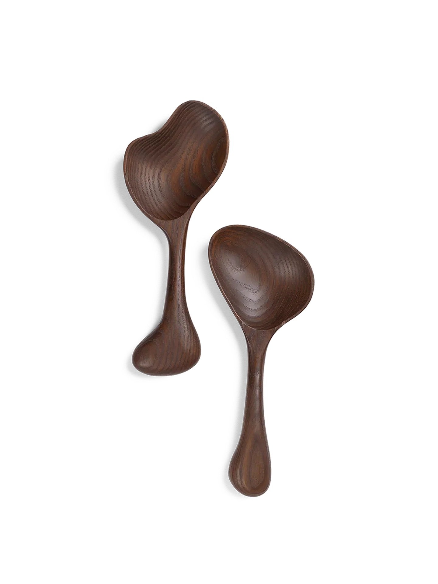 The design of the distinctive Oro Salad Servers is characterised by soft curves and sculpted details. Made in certified ash wood with a carbonised finish, they have a significant artistic expression.