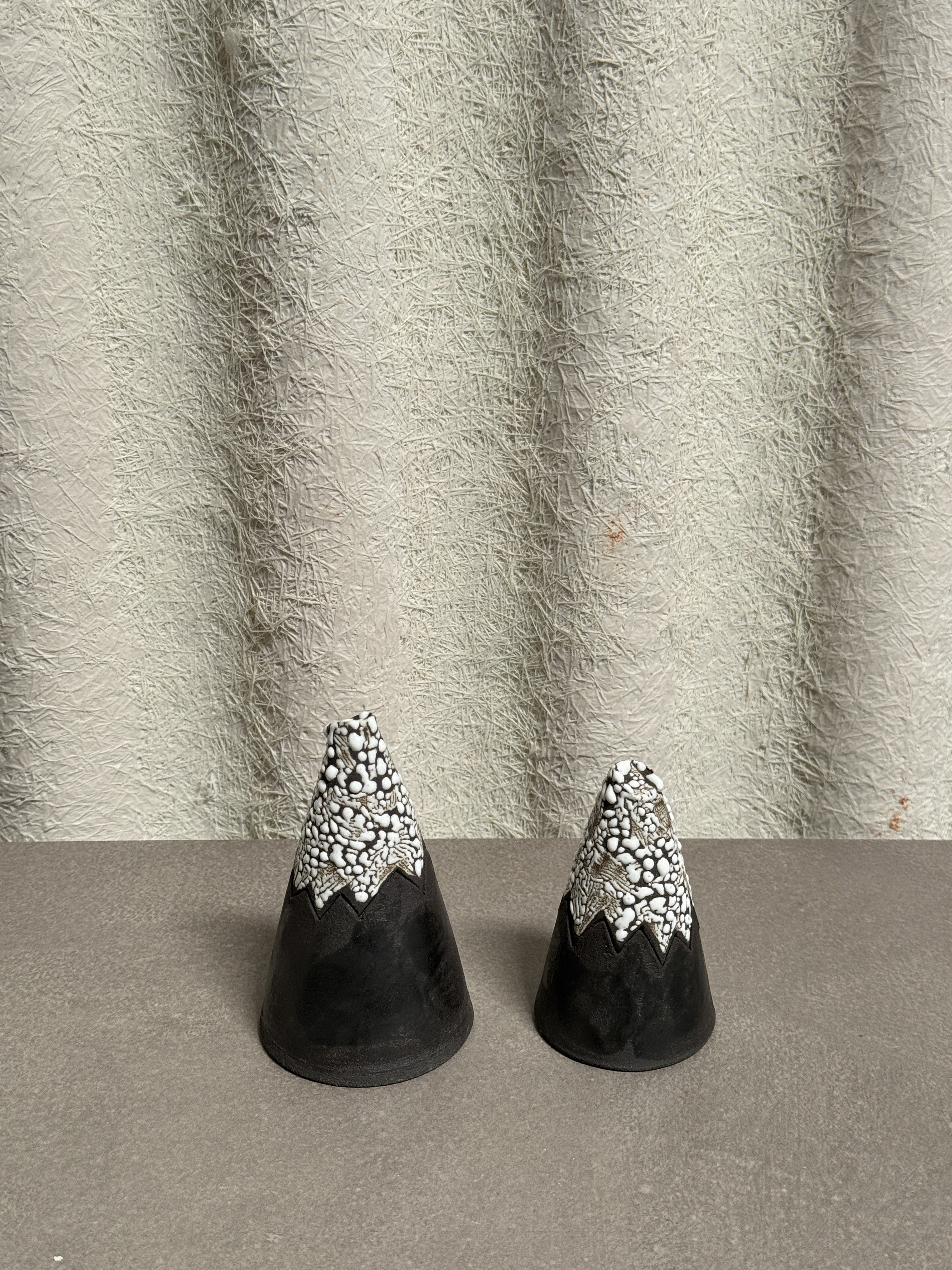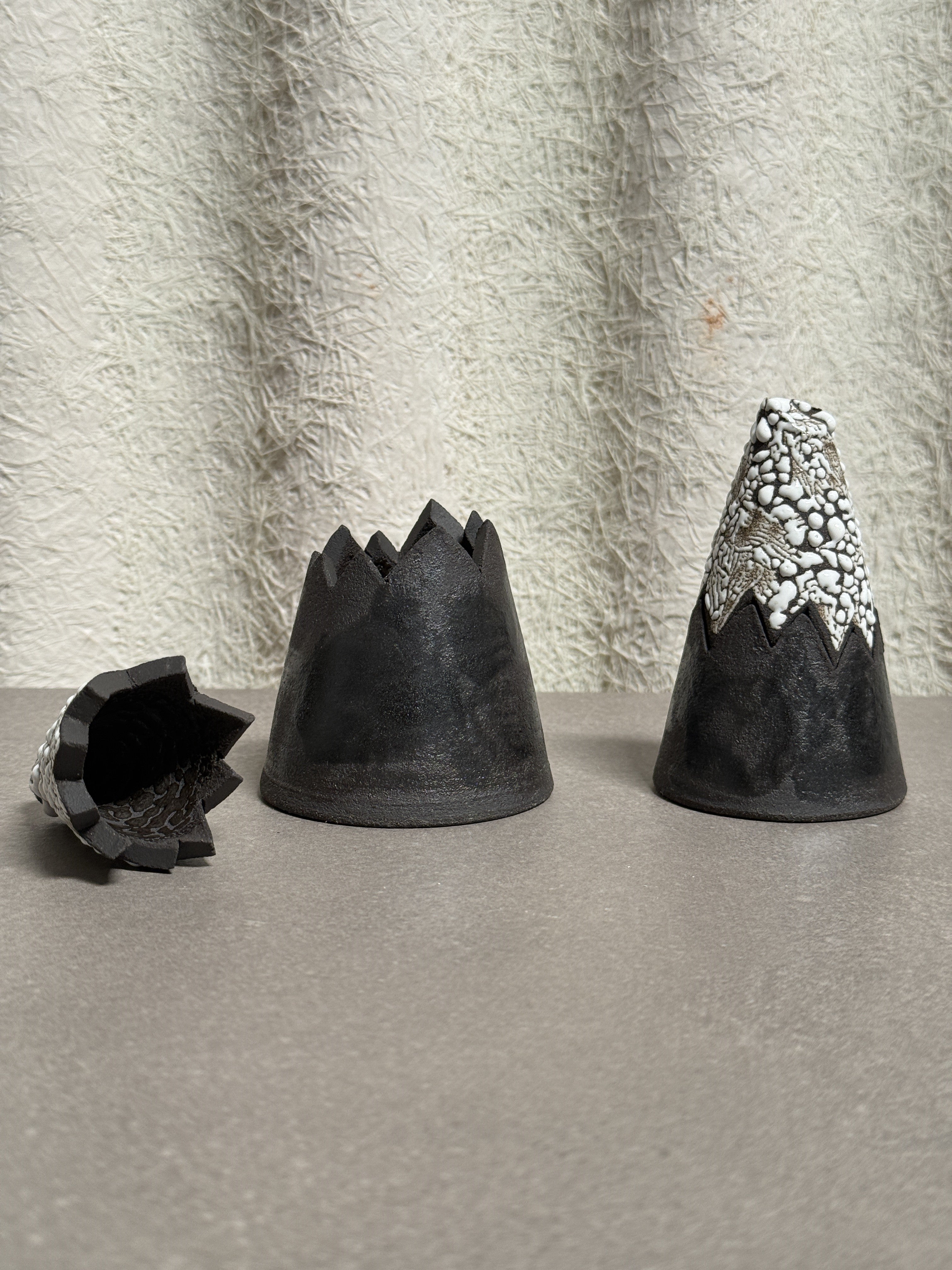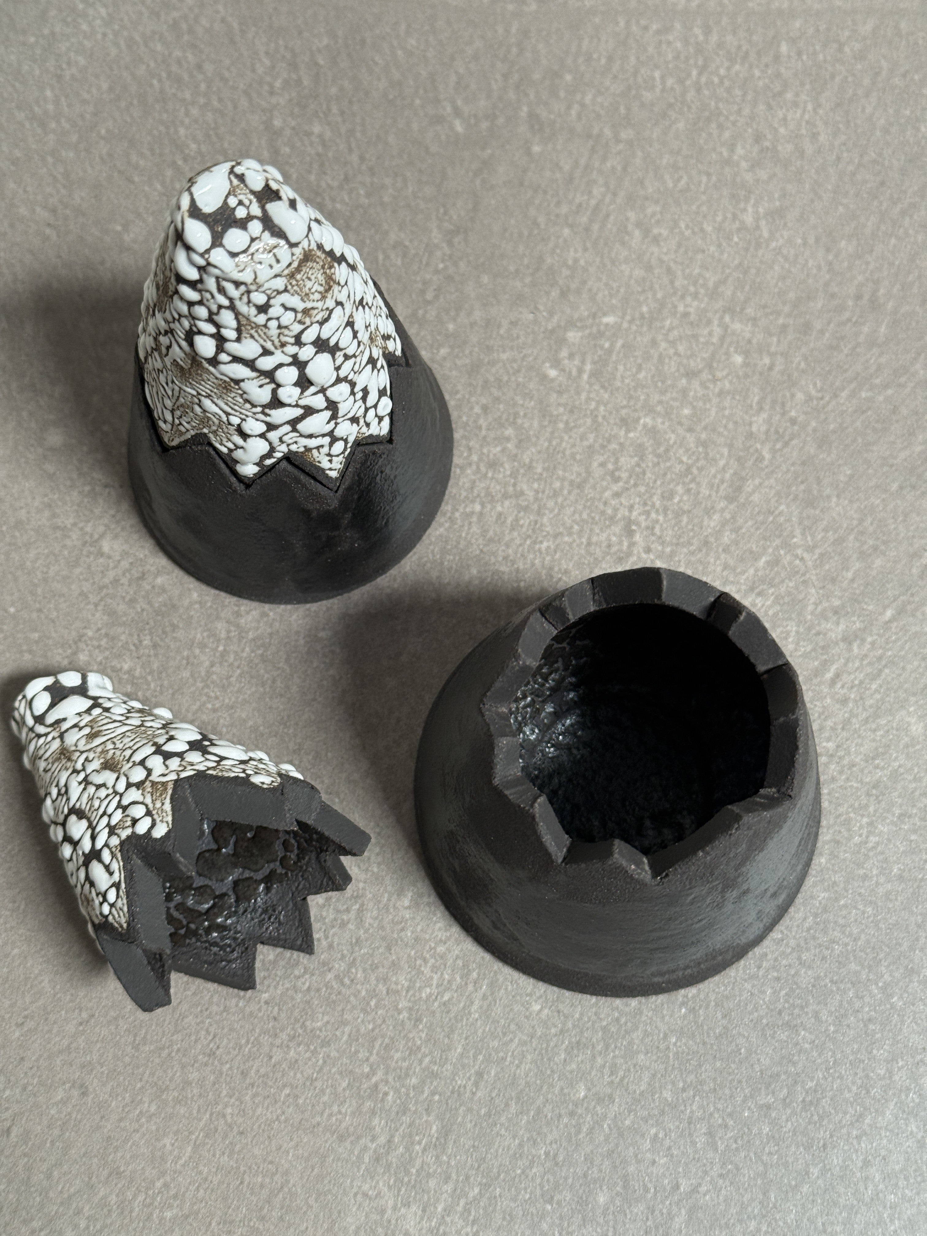 Handcrafted by Icelandic artist Aldís Yngvadóttir, these volcanic-inspired canisters echo the forms of jagged peaks and cooling lava. Each lid fits organically, with textured detailing that makes every piece a sculptural object as well as functional storage.