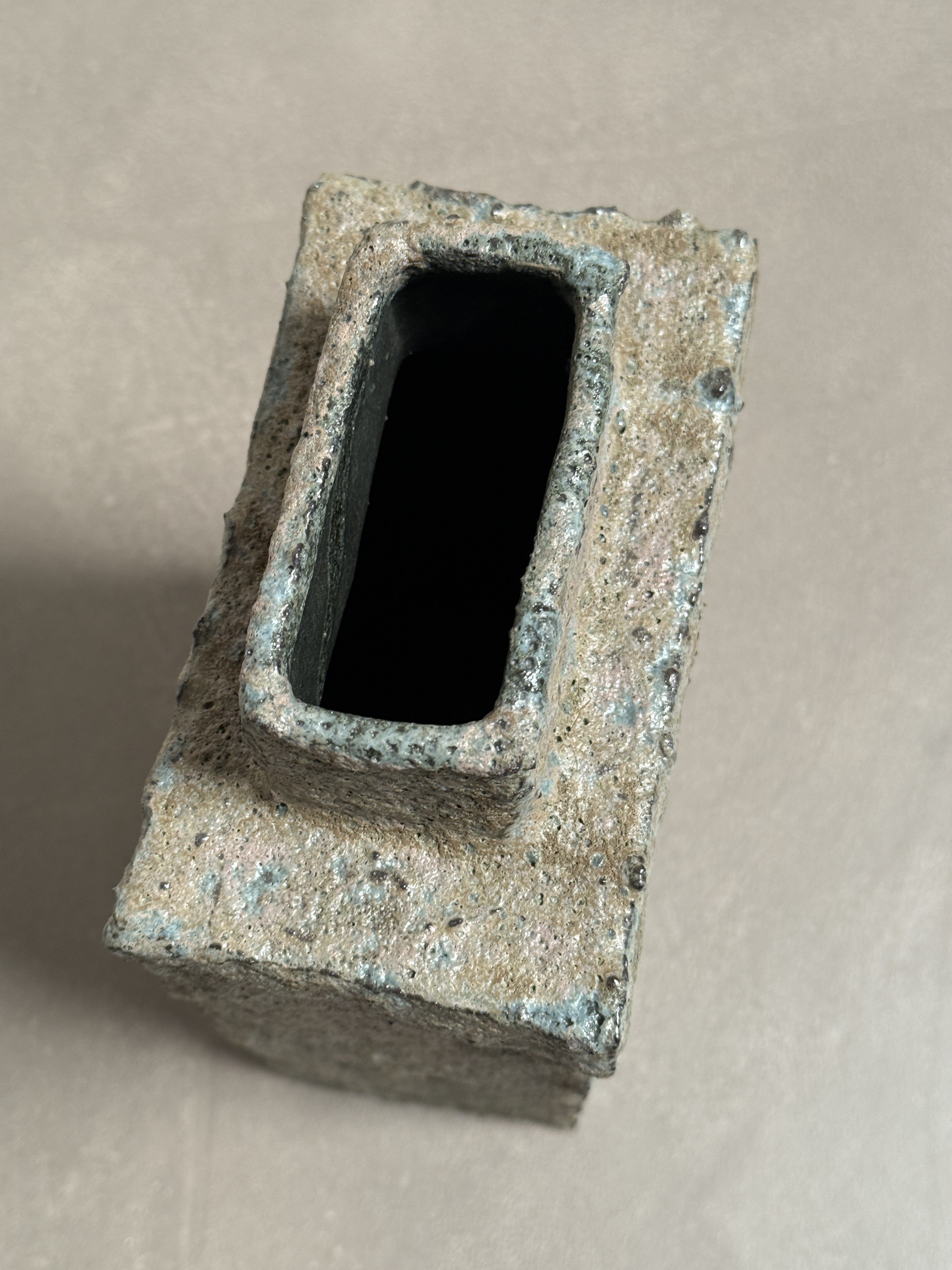 Handmade in Iceland by artist Bjarni Sigurdsson, this one-of-a-kind ceramic vessel echoes the rugged beauty of volcanic basalt. With its raw, textured surface and natural stone hues, it captures the stark drama of Iceland’s lava fields and rocky terrain—an ode to earth and craft.