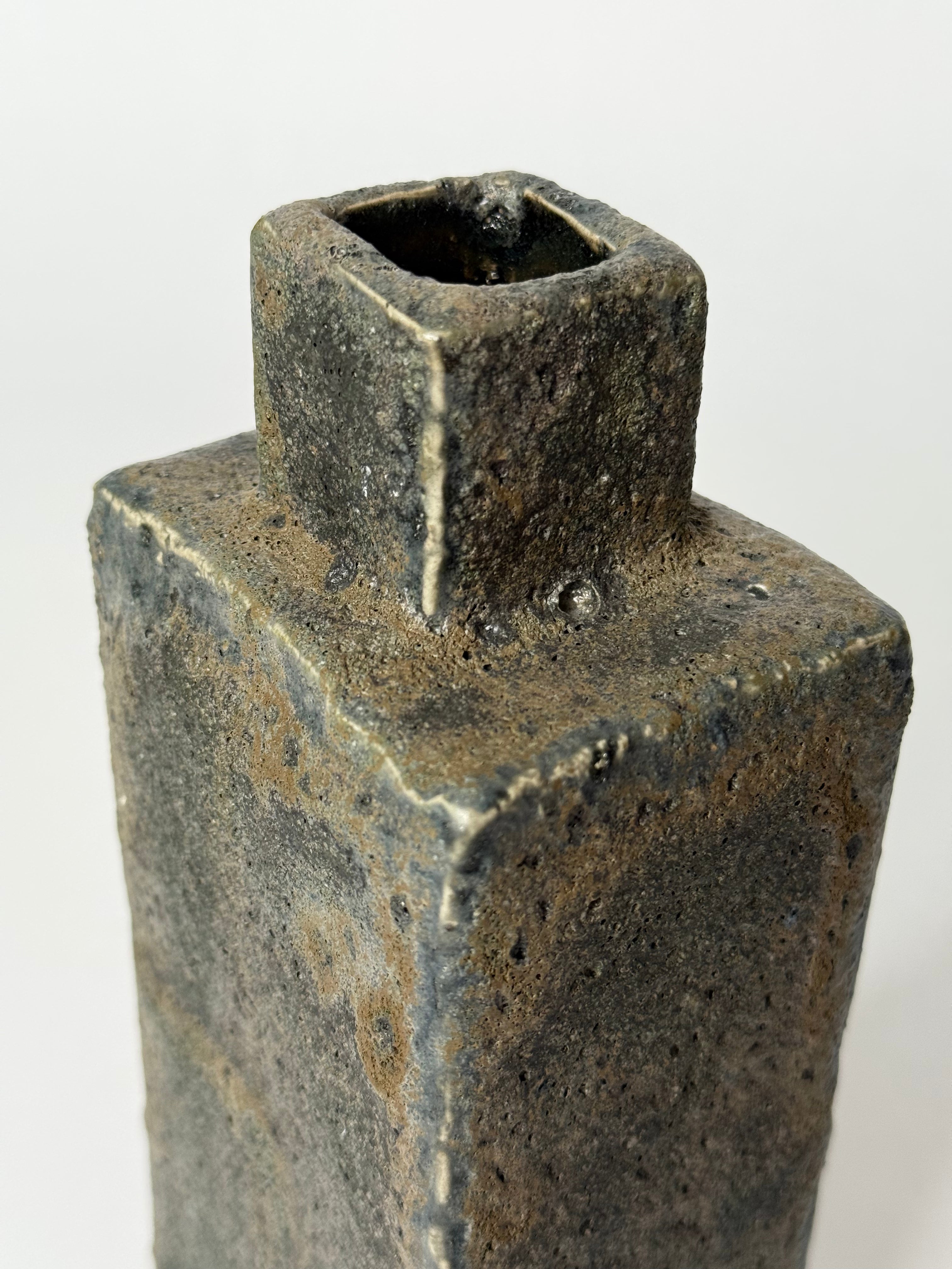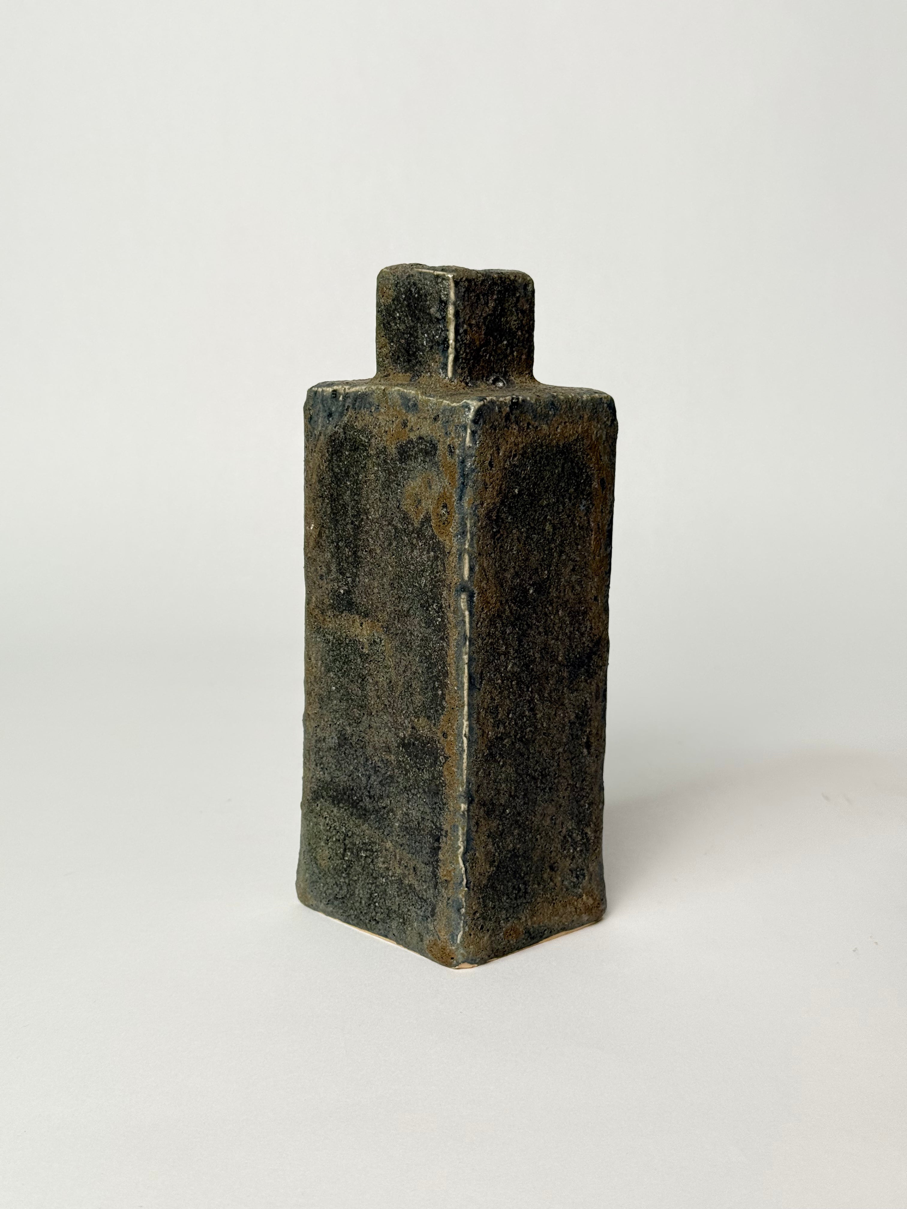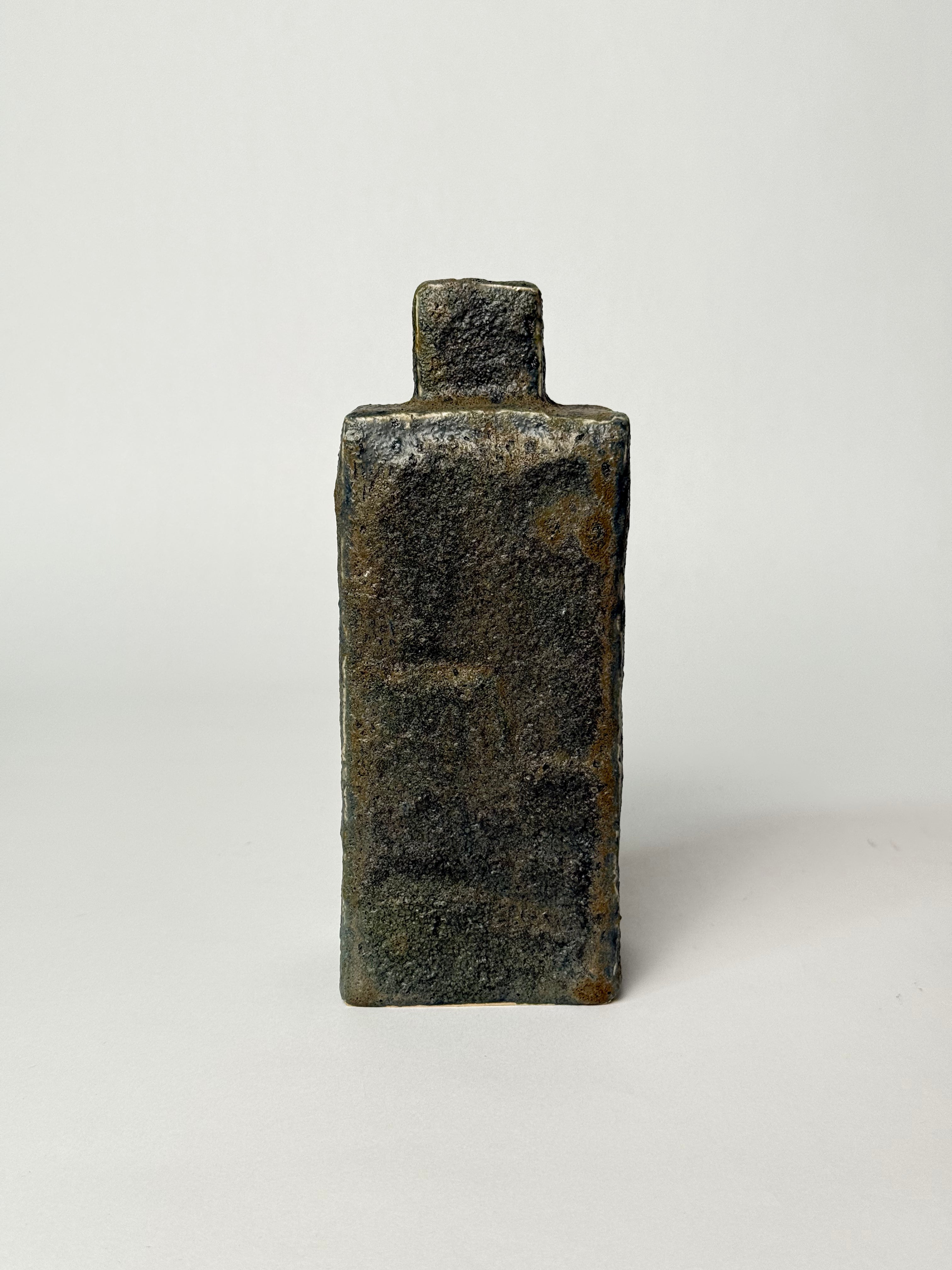 This tall, sculptural ceramic vessel features a rugged, stone-like texture and earthy blue-grey tones inspired by Iceland’s basalt cliffs and volcanic ridges.