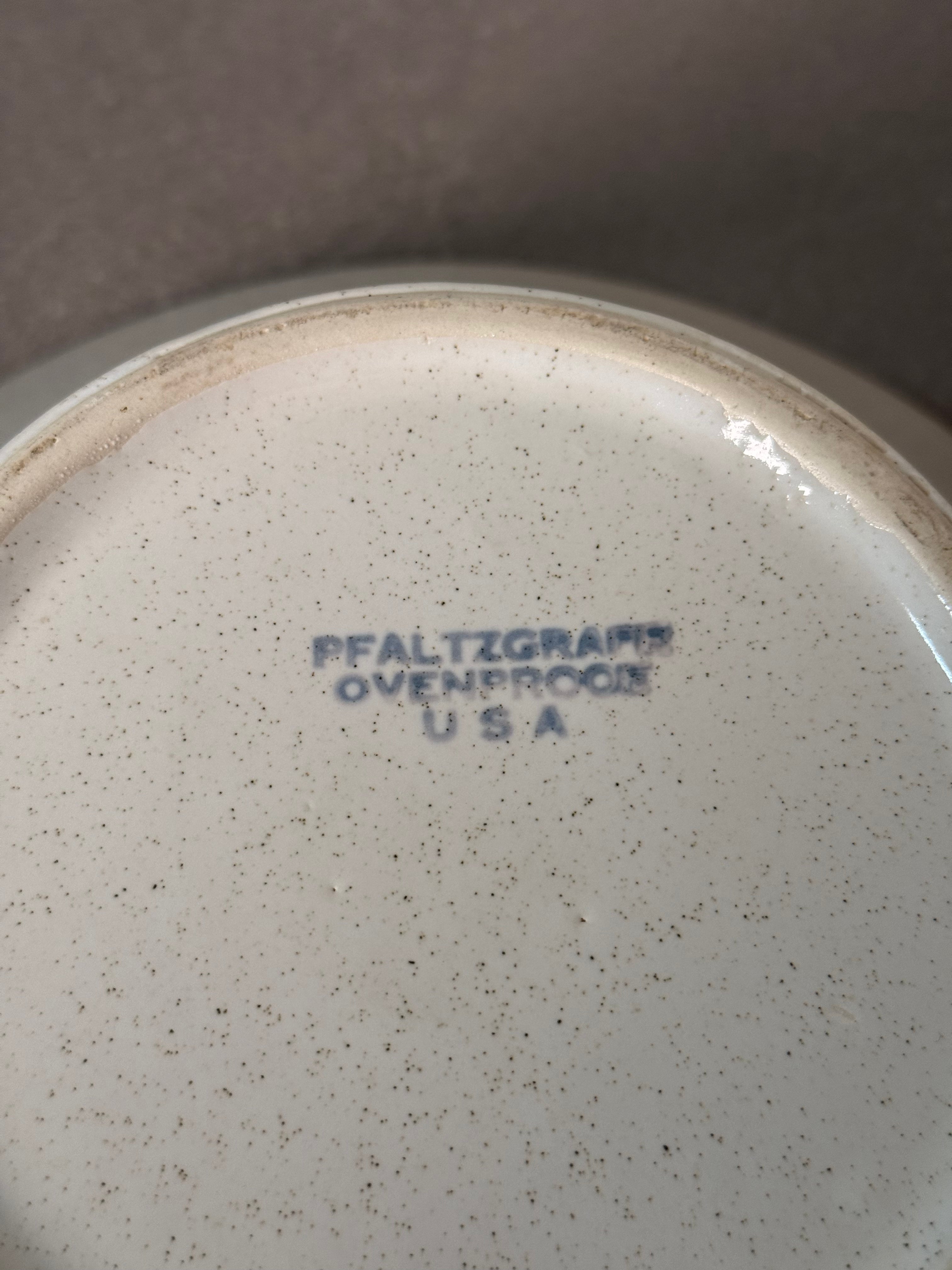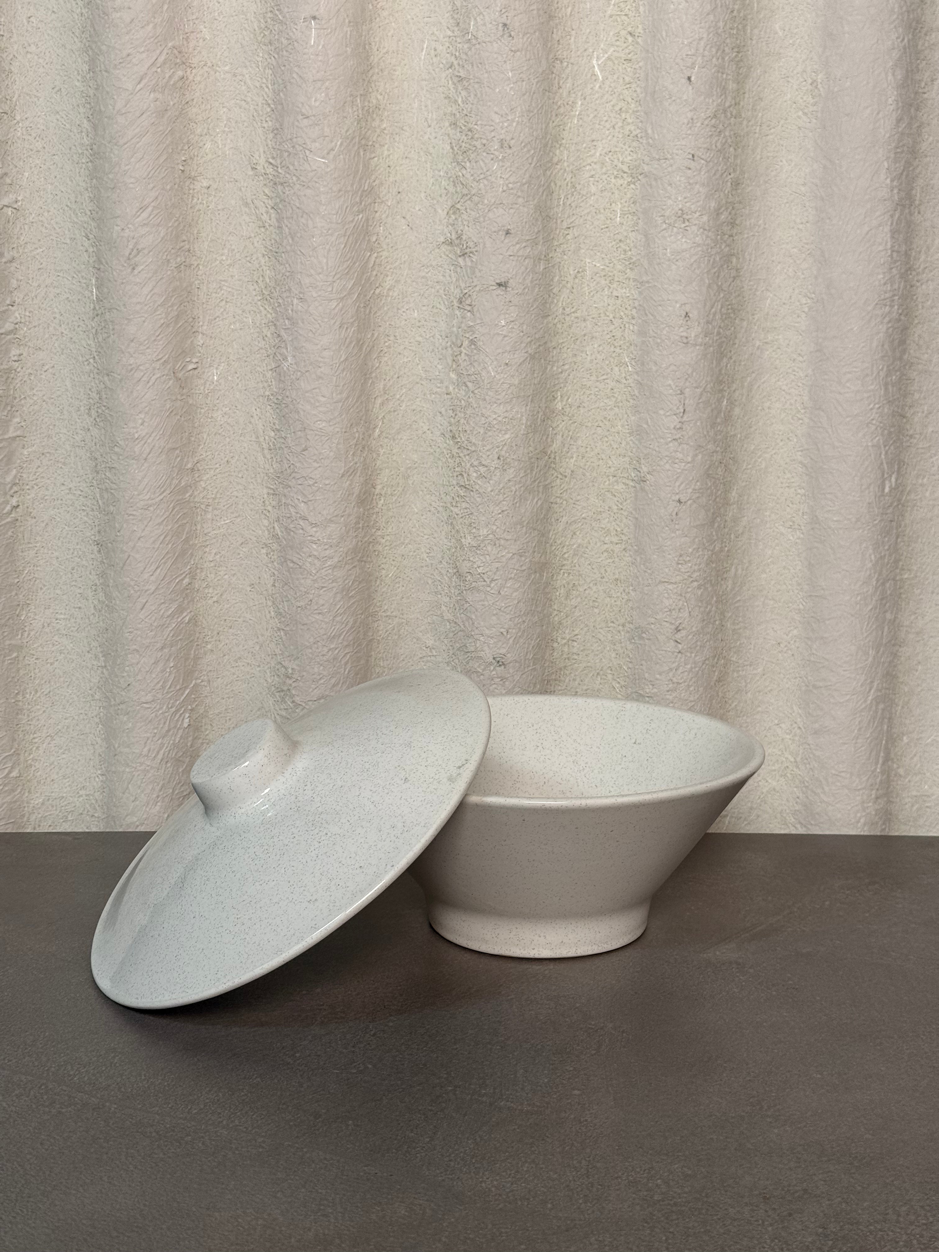 Vintage Pfaltzgraff Aura covered serving bowl with lid. Classic speckled stoneware design, perfect for family meals, holiday gatherings, or as a collectible piece. Durable and versatile, this lidded bowl adds charm to any kitchen or dining table.