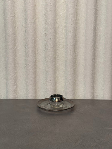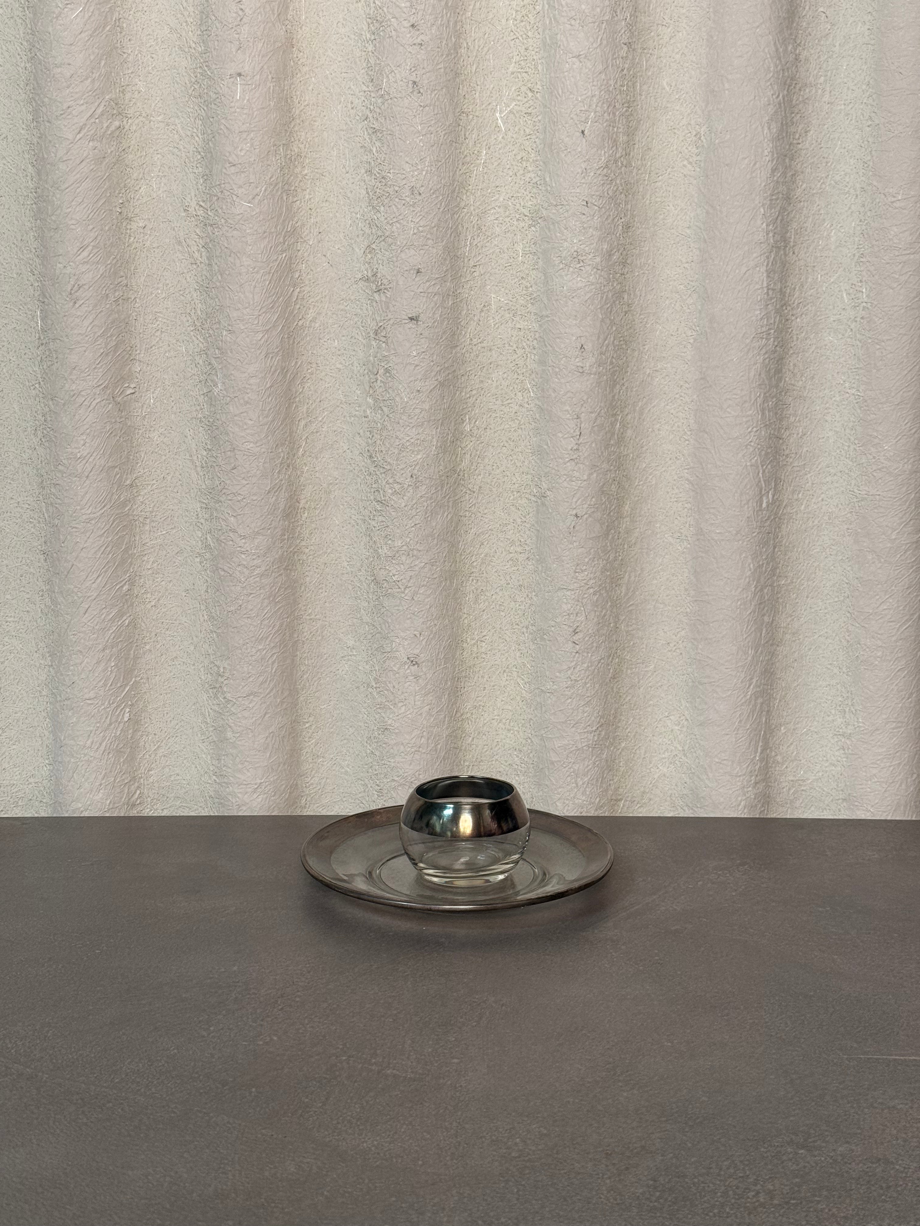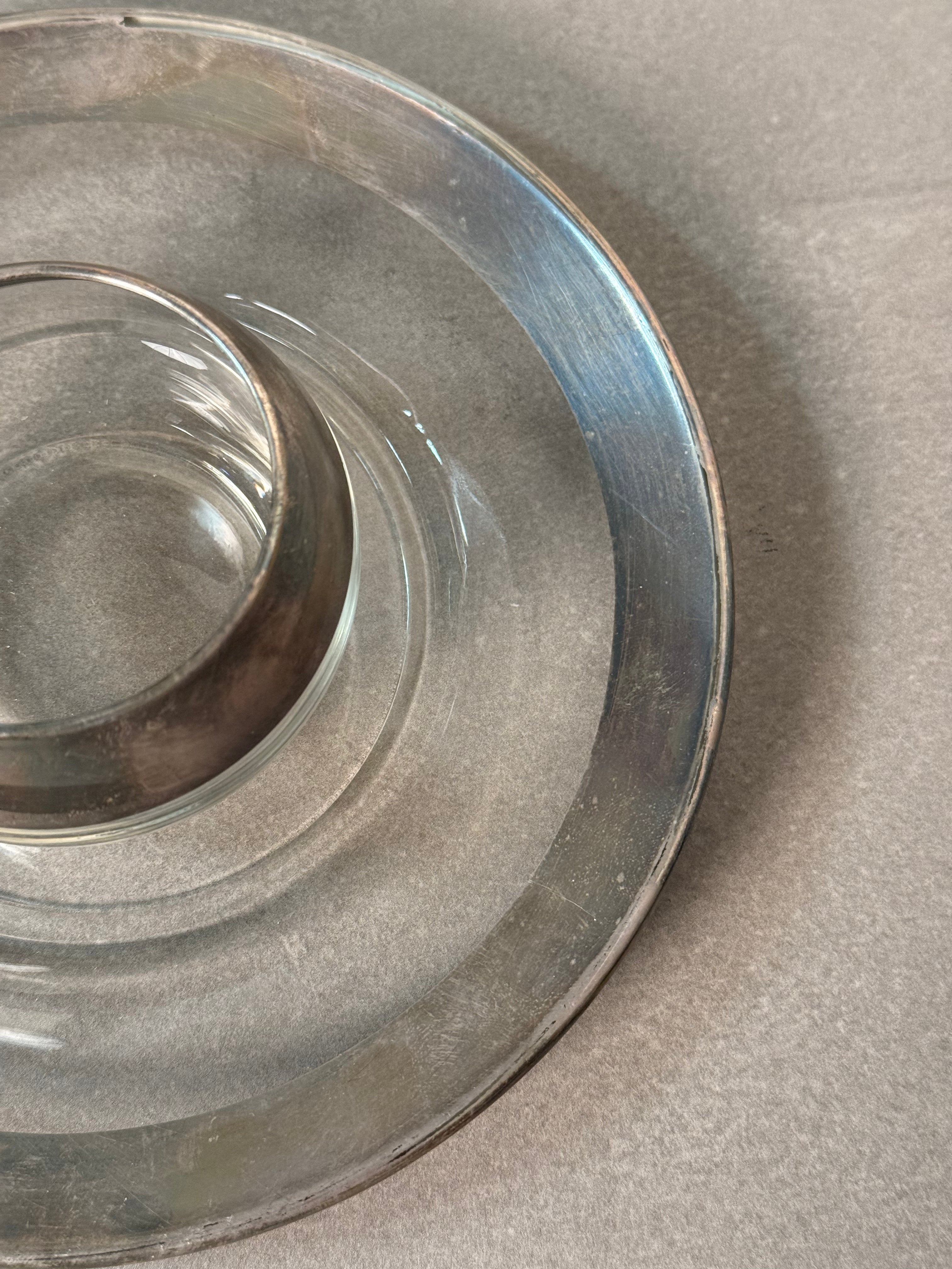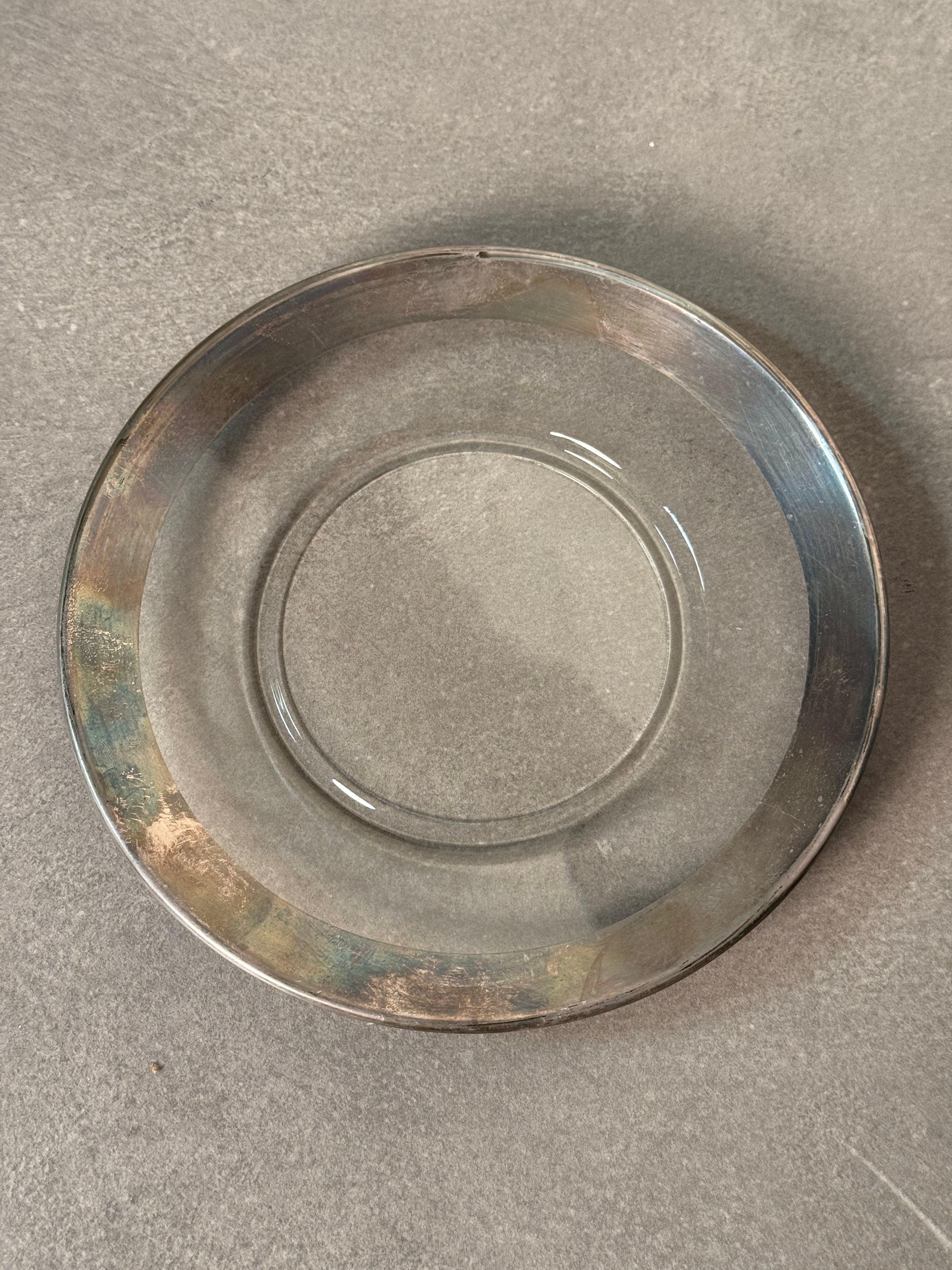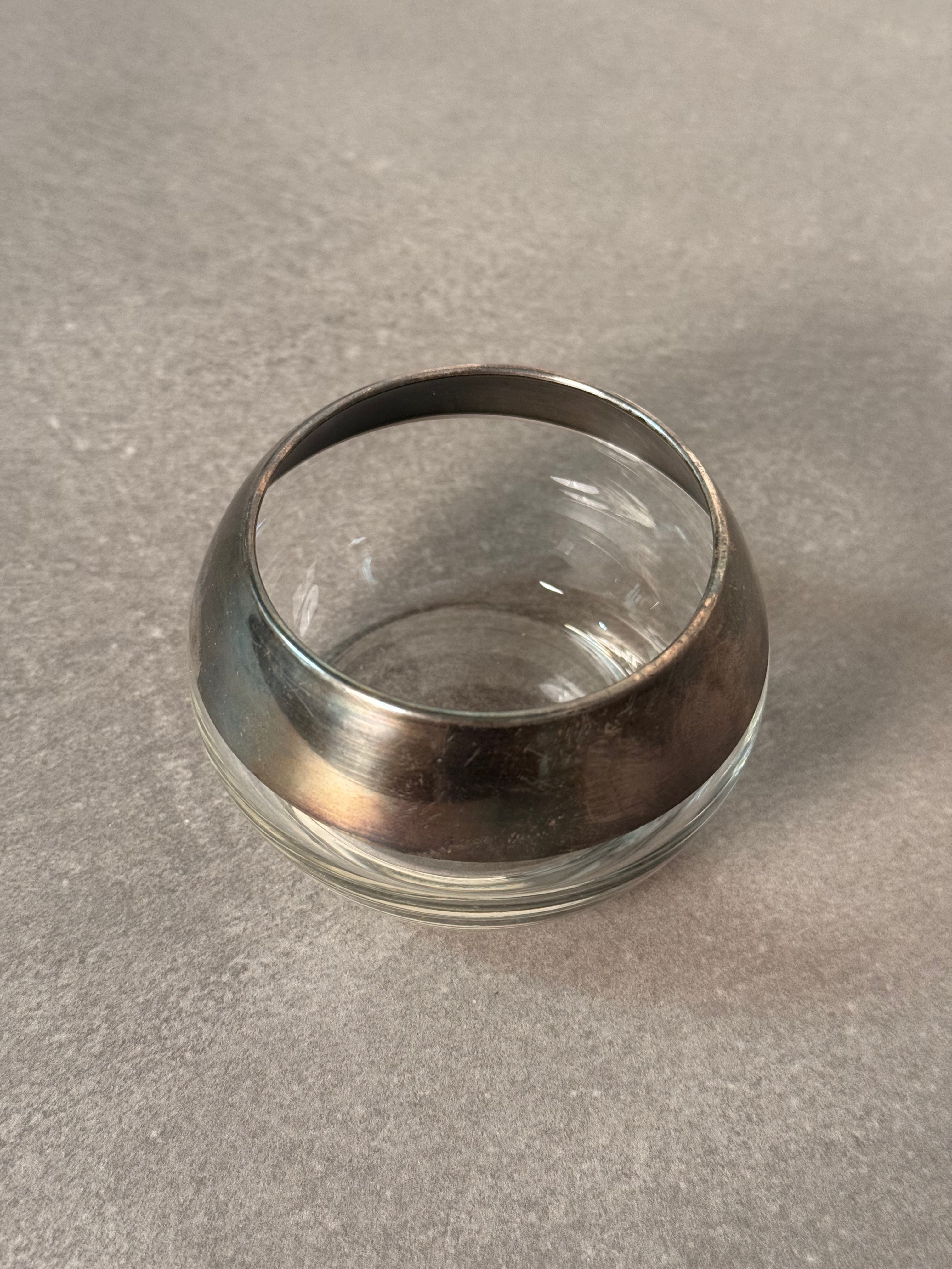 Elegant 2-piece vintage finger bowl set featuring clear glass with polished silver-plated rims. A timeless dining accessory, perfect for formal tablescapes, entertaining, or as a collectible display piece.