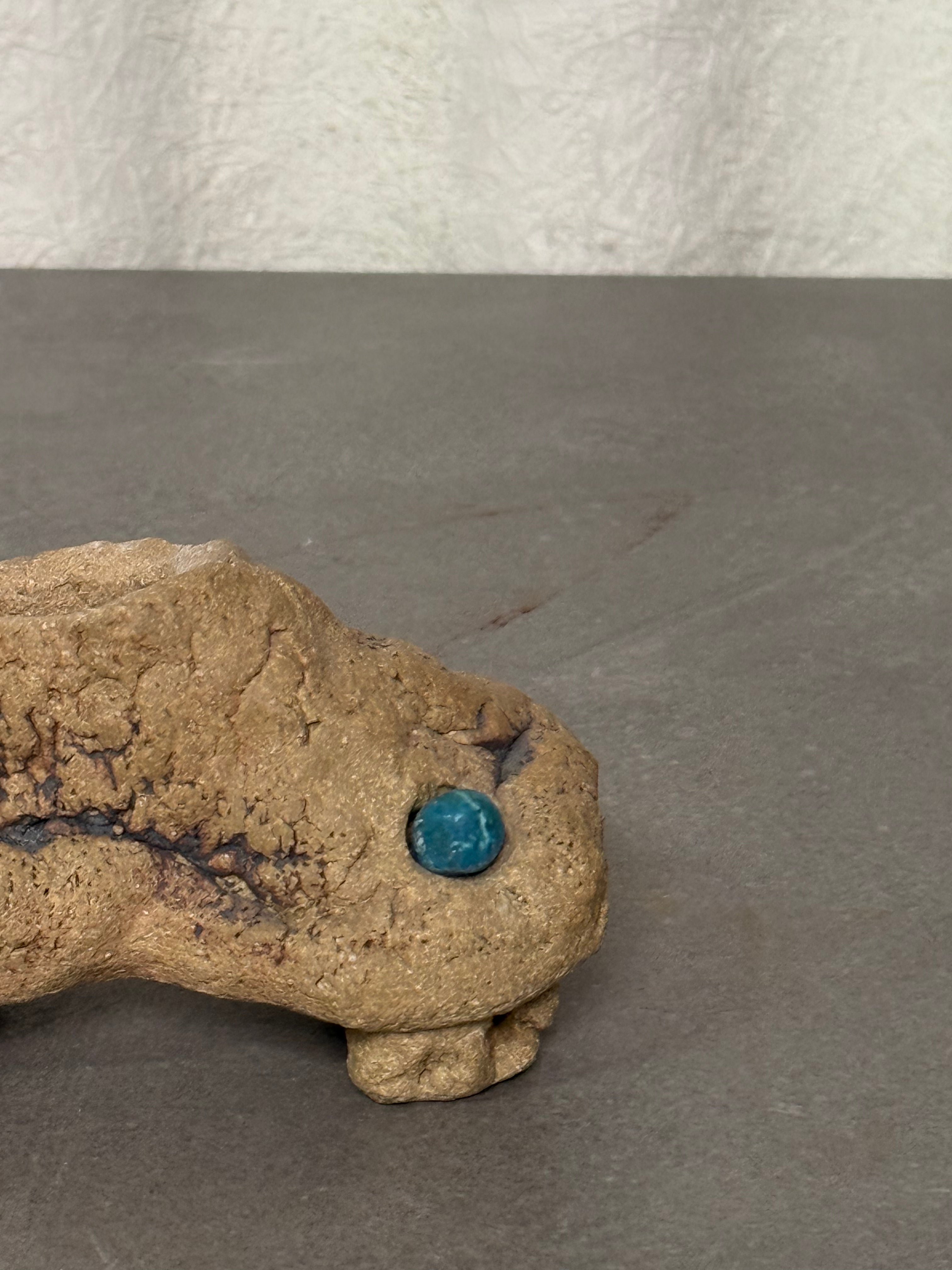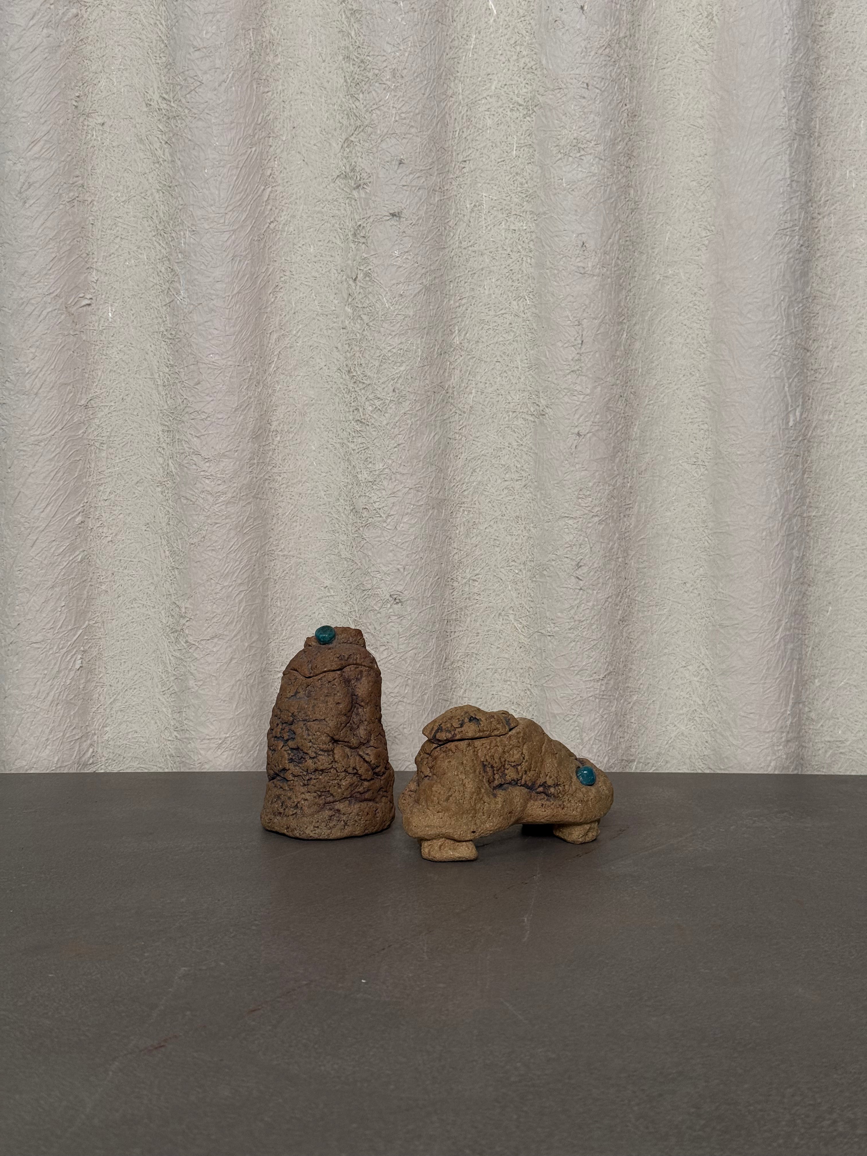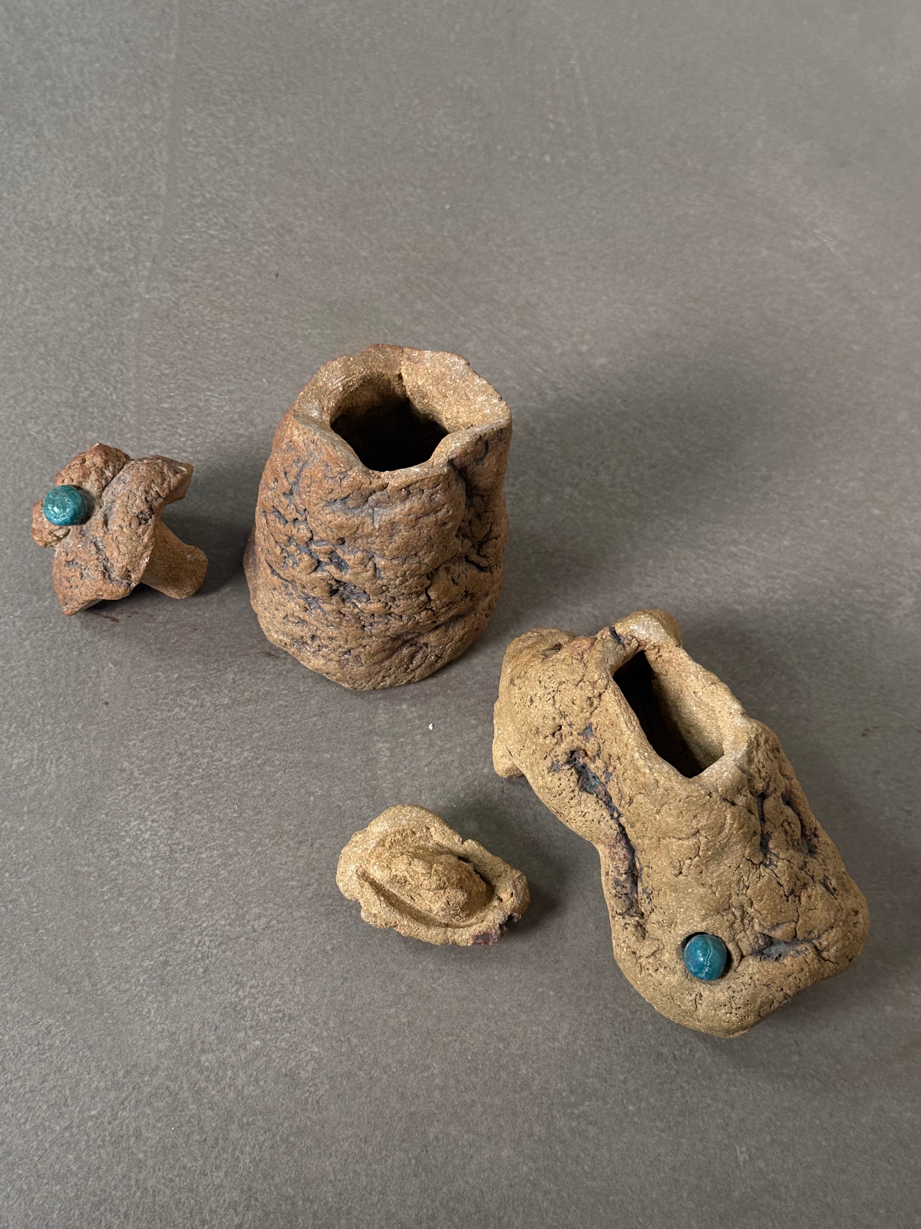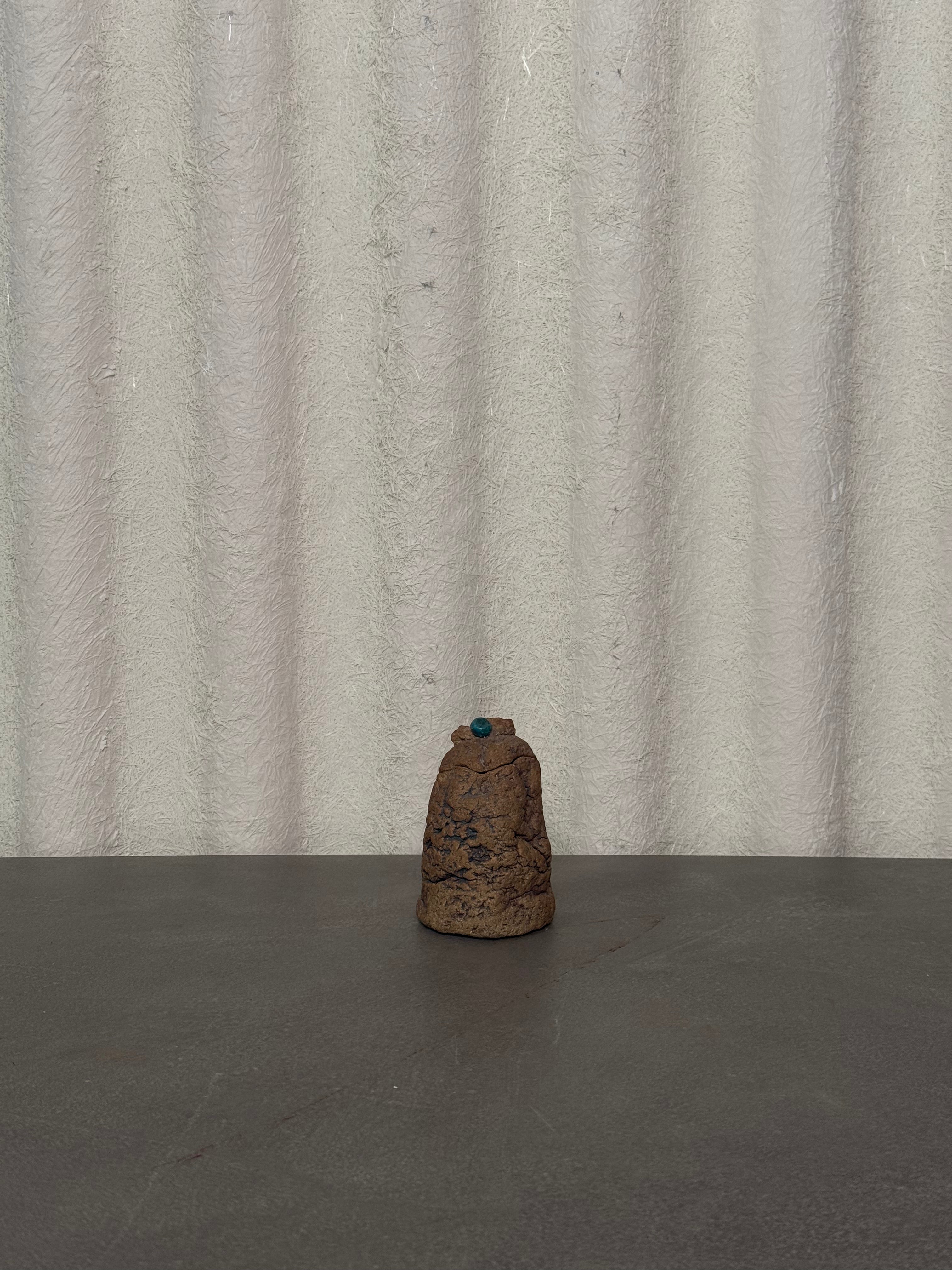 Turquoise clay lidded canister, handcrafted with a vibrant finish, perfect for storing small items while adding a pop of color and artisanal charm to any kitchen or décor space.