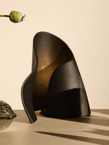 Made in casted recycled aluminium, the Cavern Table Lamp has a decorative, organic shape due to its soft, lively curves. Reminiscent of oyster shells gathered at the beach, the texture and finish of the lamp has a distinctive, rough expression owing to the casting process, and the interplay between its organic shape and raw surface creates a compelling contrast. Diffusing a soft, cosy light, the Cavern Table Lamp is a functional yet sculptural piece that will elevate your home.