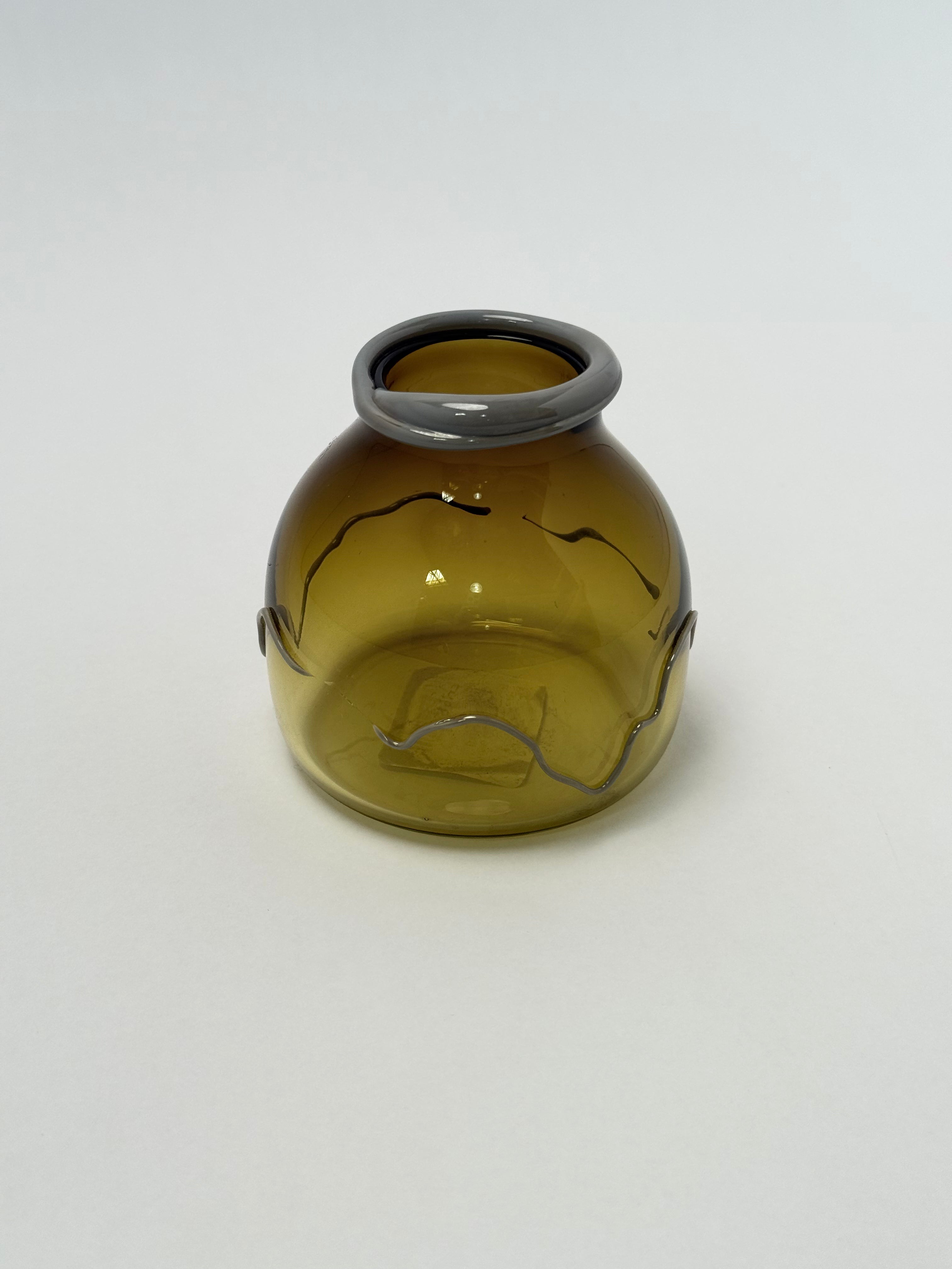 The Isbre vase — named for the Glassier in Norwegian — is a luminous piece of Scandinavian glasswork. Handblown in Norway by Cribbe Eriksson, it features a edgy body with a translucent glow, encircled by a vivid line and topped with a soft rim.
