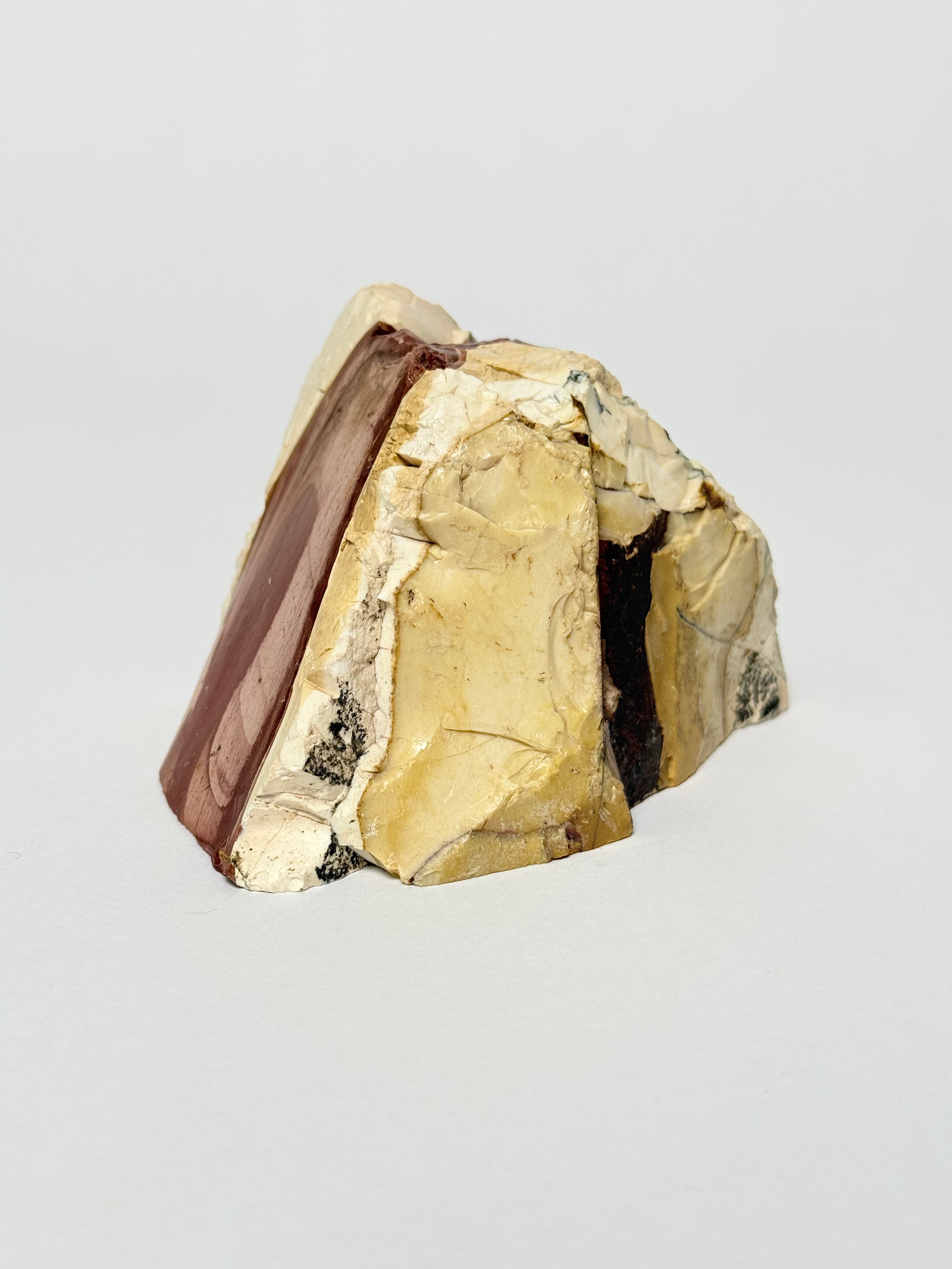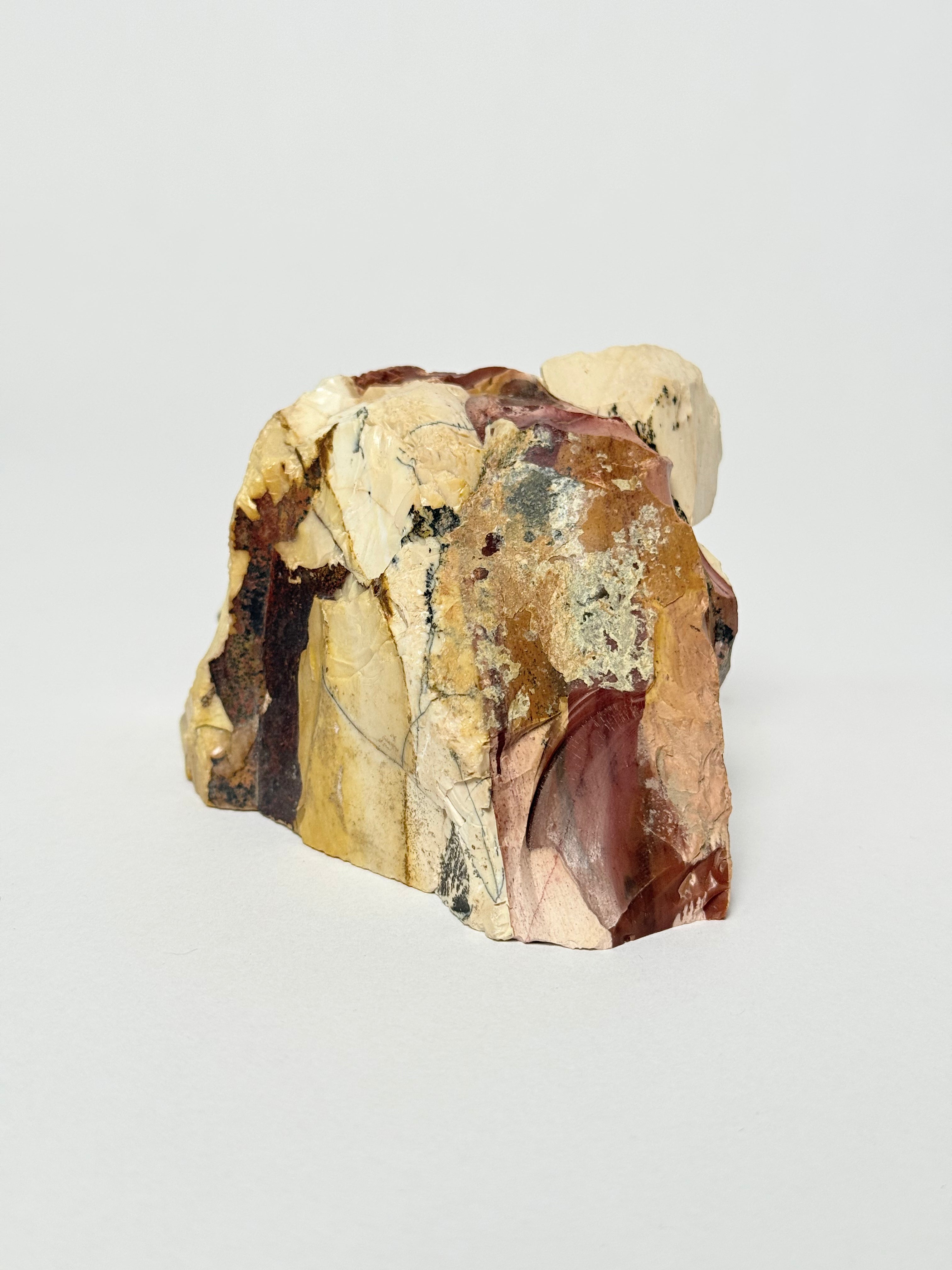 This rock sculpture features a natural, organic form that highlights the raw texture and character of the material. Its sculptural silhouette makes it a striking decorative object for shelves, consoles, or tabletop displays, adding an earthy, grounded presence to any interior. Whether styled on its own or paired with other collected objects, it brings a sense of nature, weight, and quiet simplicity to a space.