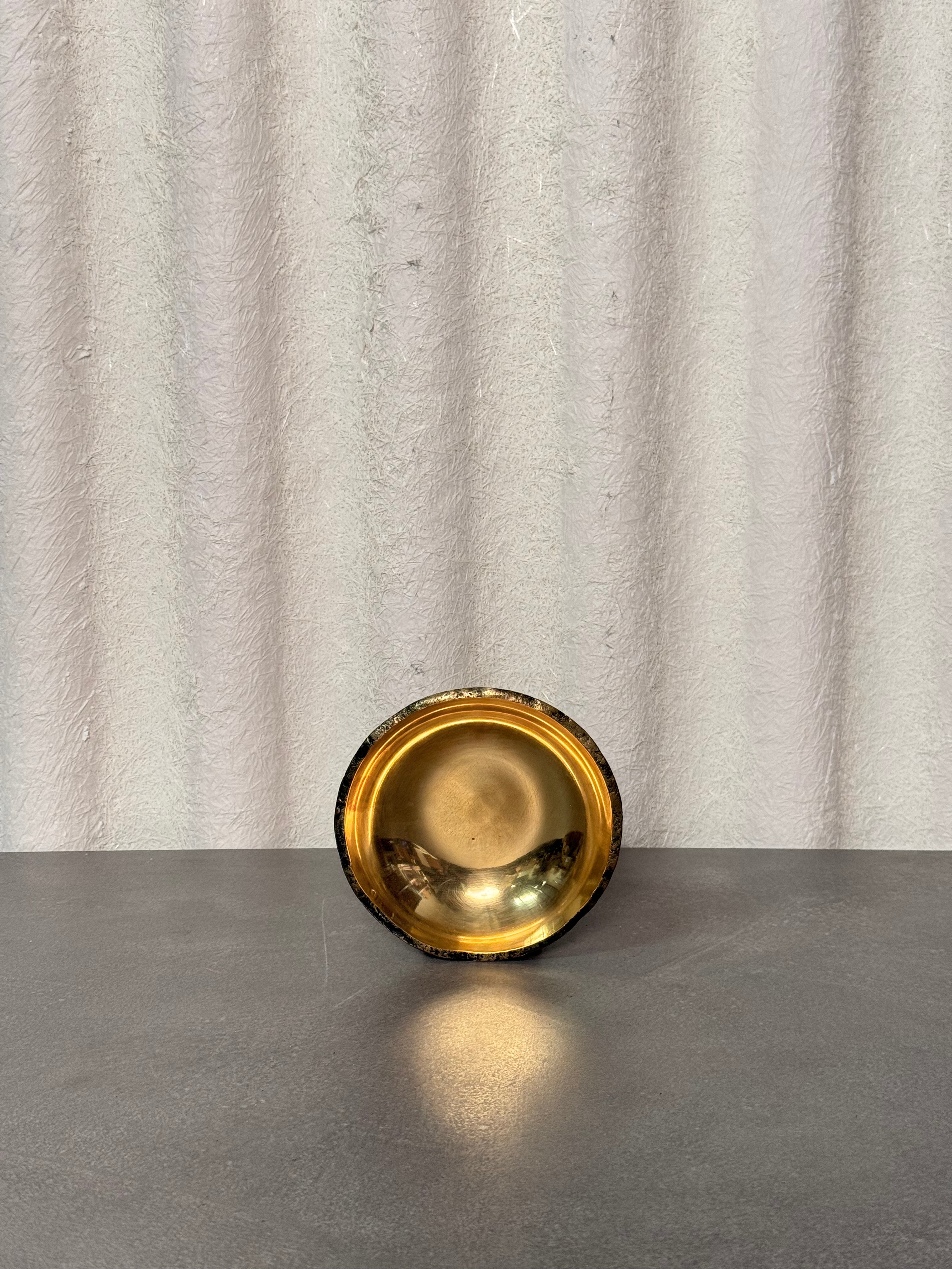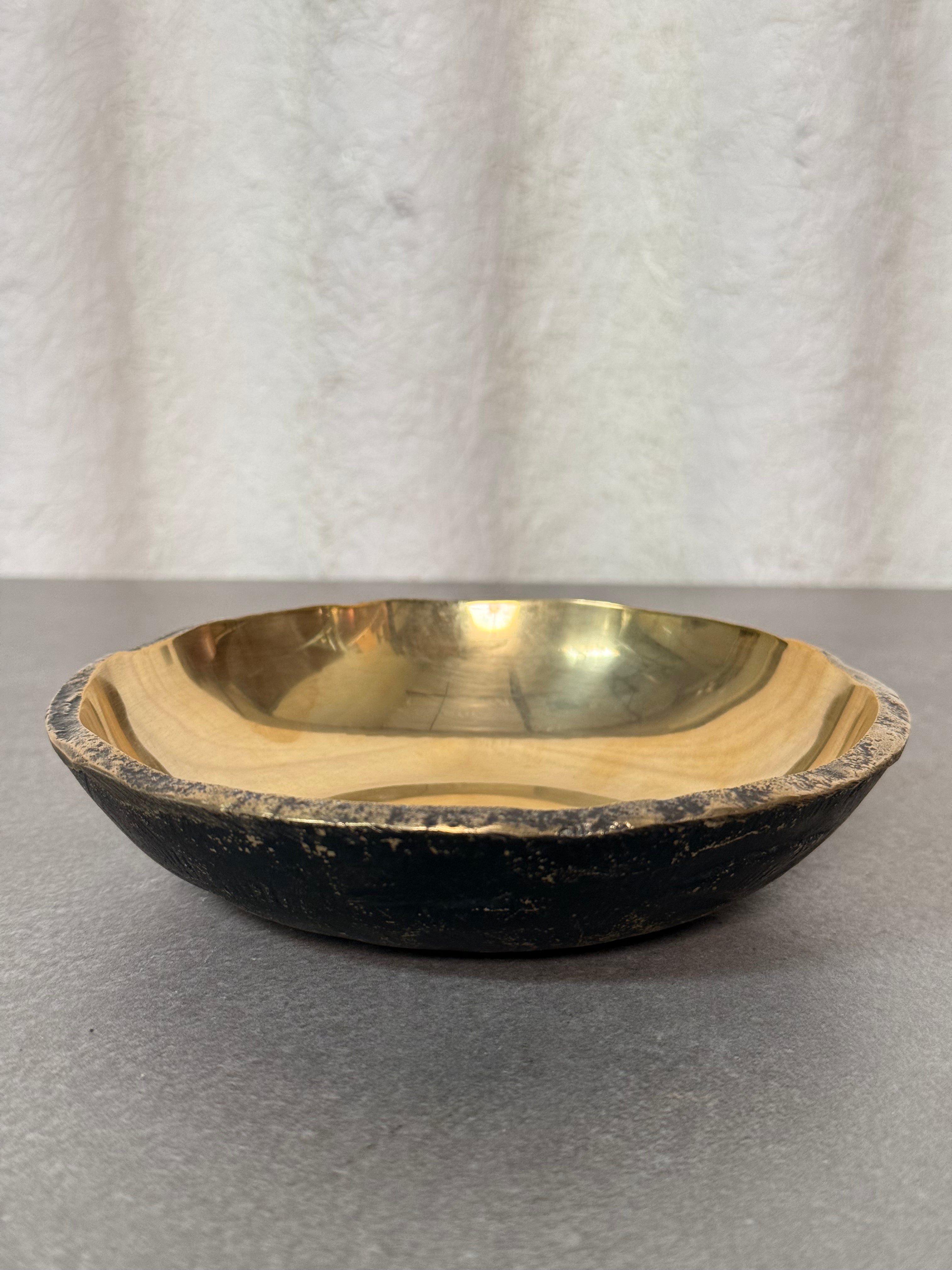 Shallow hand-cast bronze dish with a warm reflective interior and textured dark exterior. Organic edges and natural patina give it a sculptural, collected feel. Perfect as an entryway catch-all or decorative accent.