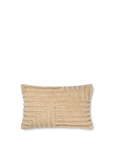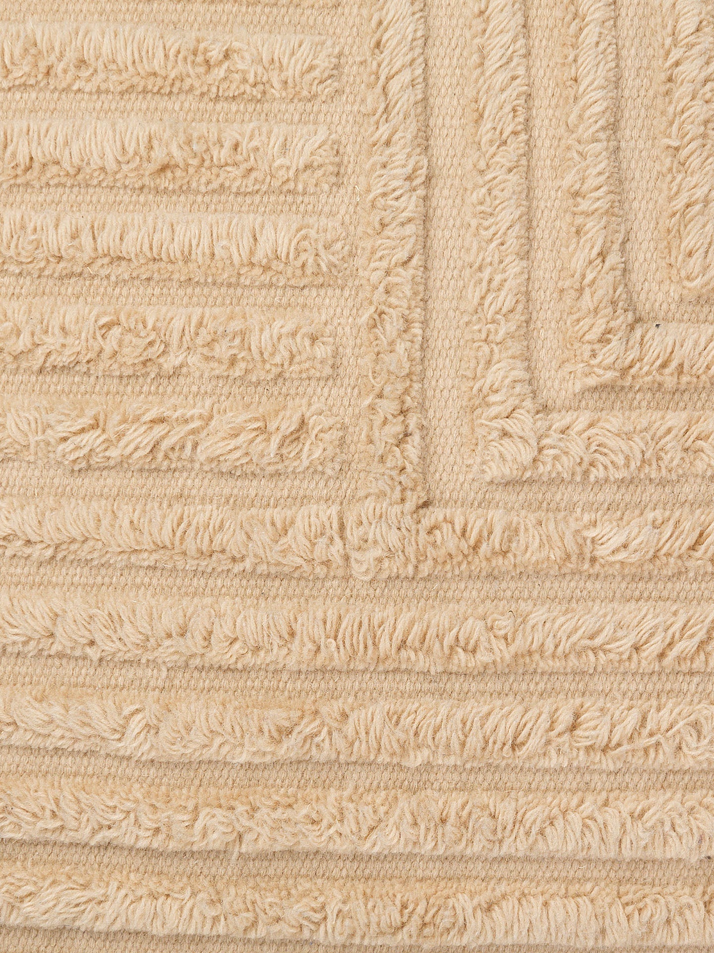 Drawing inspiration from the clean lines found in modern architecture, the Edges Wool Pillow has a soft, understated expression. Handwoven from New Zealand wool, the front of the cushion is a mix of high pile and flat woven wool which is tufted in a minimalistic pattern for a decorative, graphic expression. The back of the cushion is kept flat woven. Adding to its tactility, the cushion is completed with intricate top stitched details along the edges.