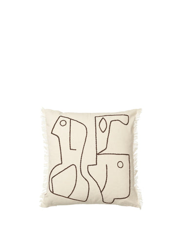 Infuse your space with a soft yet graphic touch using the Profiles Pillow. Crafted from certified, organic cotton, the cushion cover features abstract, sculptural figures and hand embroidered detailing.