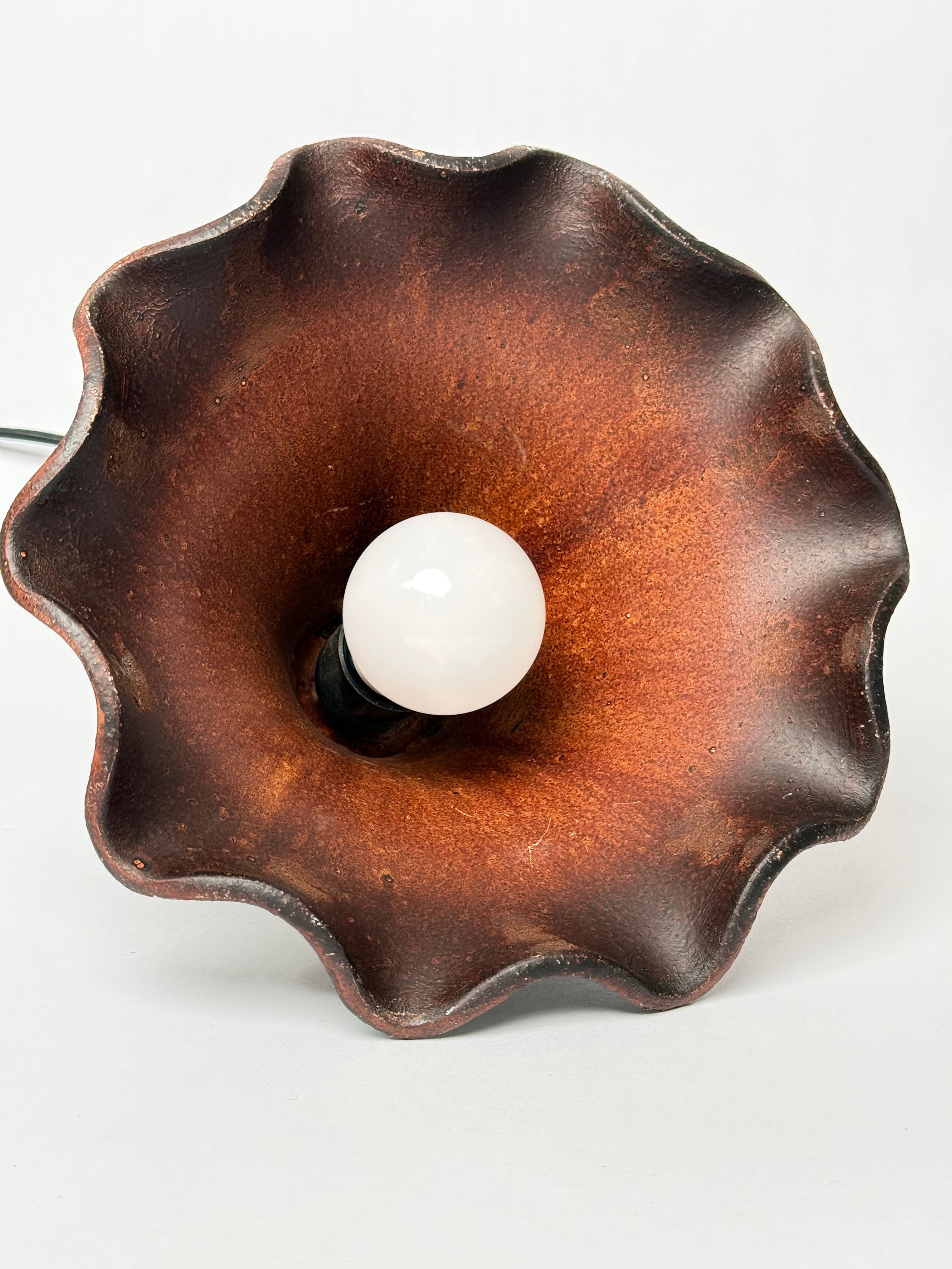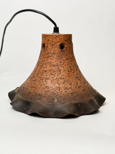A refined ceramic pendant fixture showcasing mid-century design sensibilities, this handcrafted hanging lamp brings timeless elegance to any interior space.