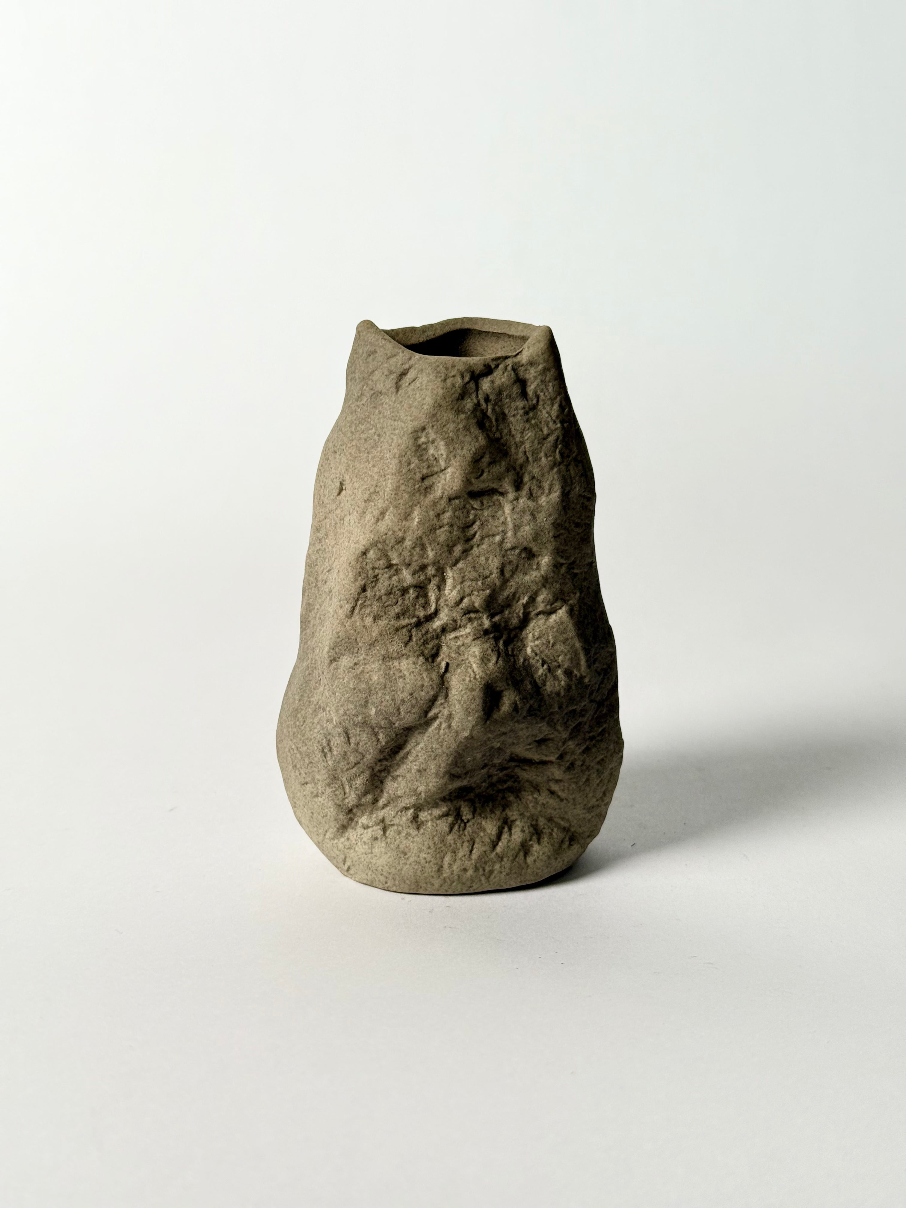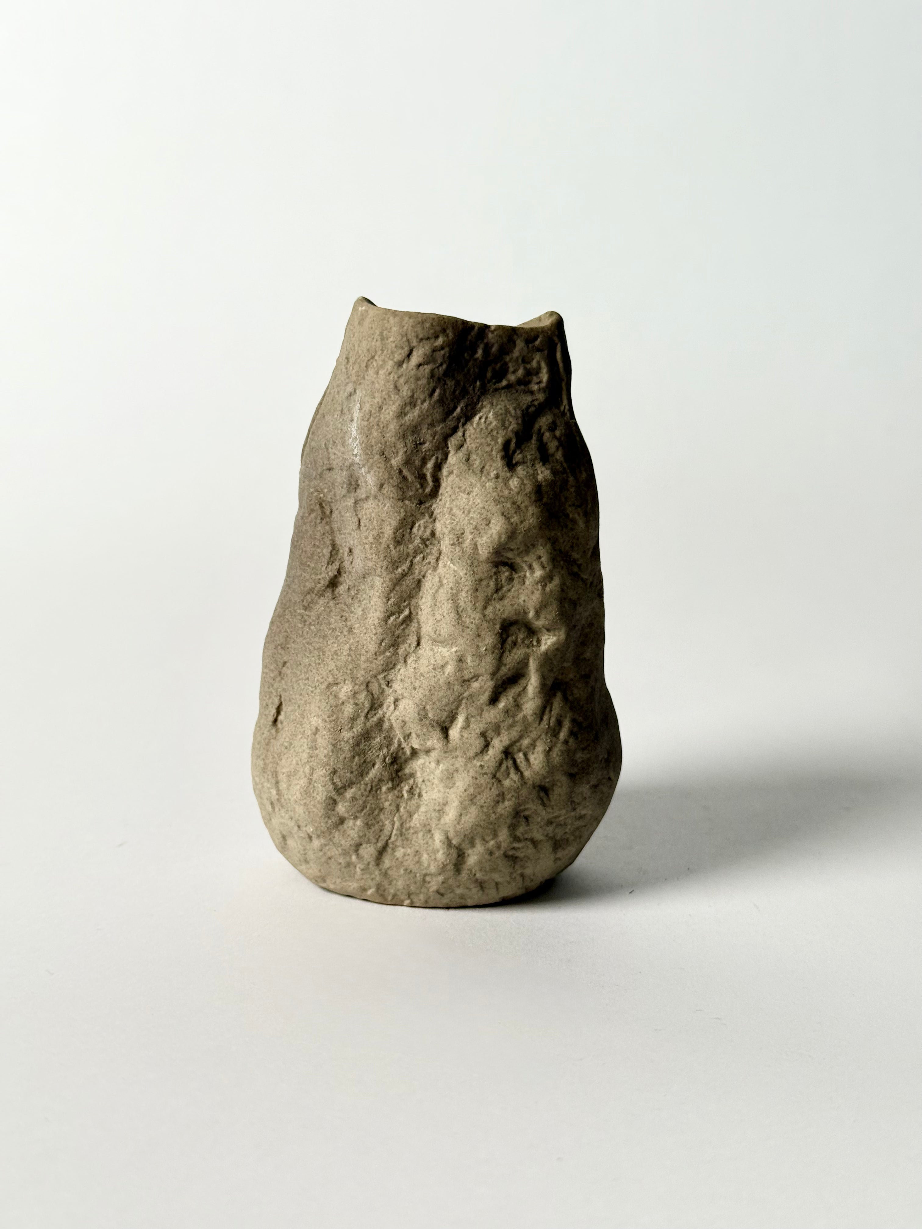 This rough, ceramic vase will integrate perfectly into any small space.