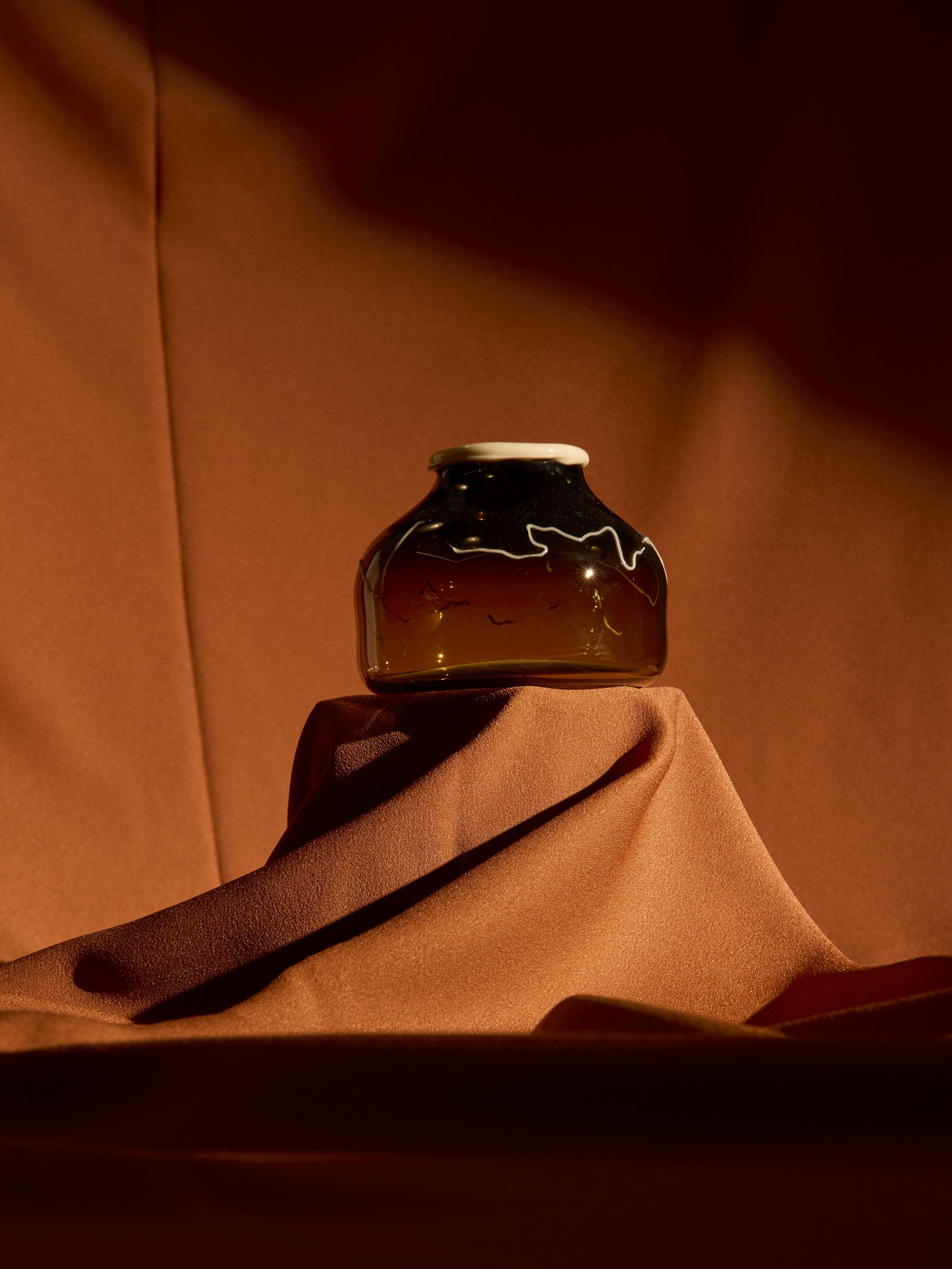 The Isbre vase — named for the Glassier in Norwegian — is a luminous piece of Scandinavian glasswork. Handblown in Norway by Cribbe Eriksson, it features a edgy body with a translucent glow, encircled by a vivid line and topped with a soft rim.