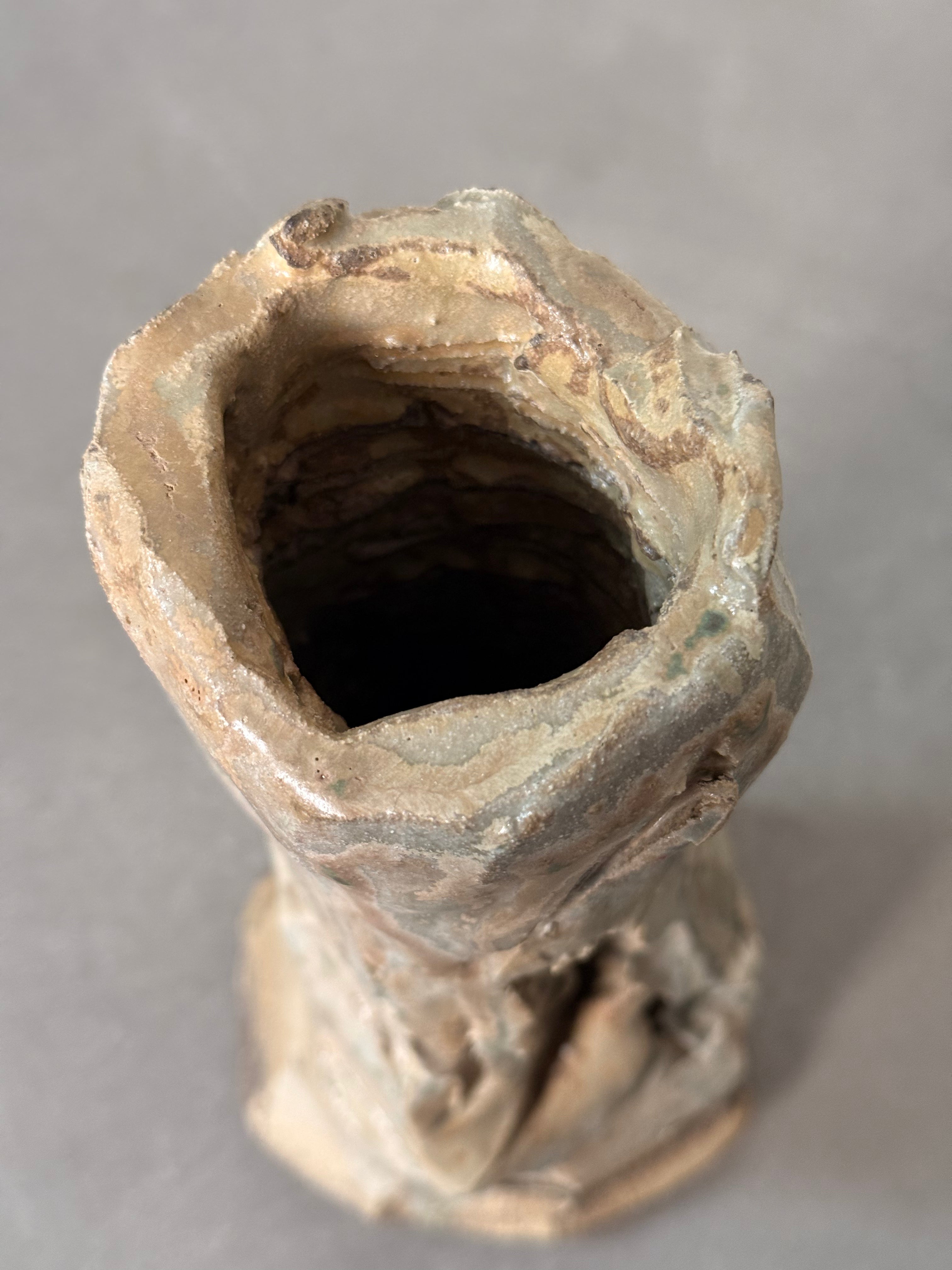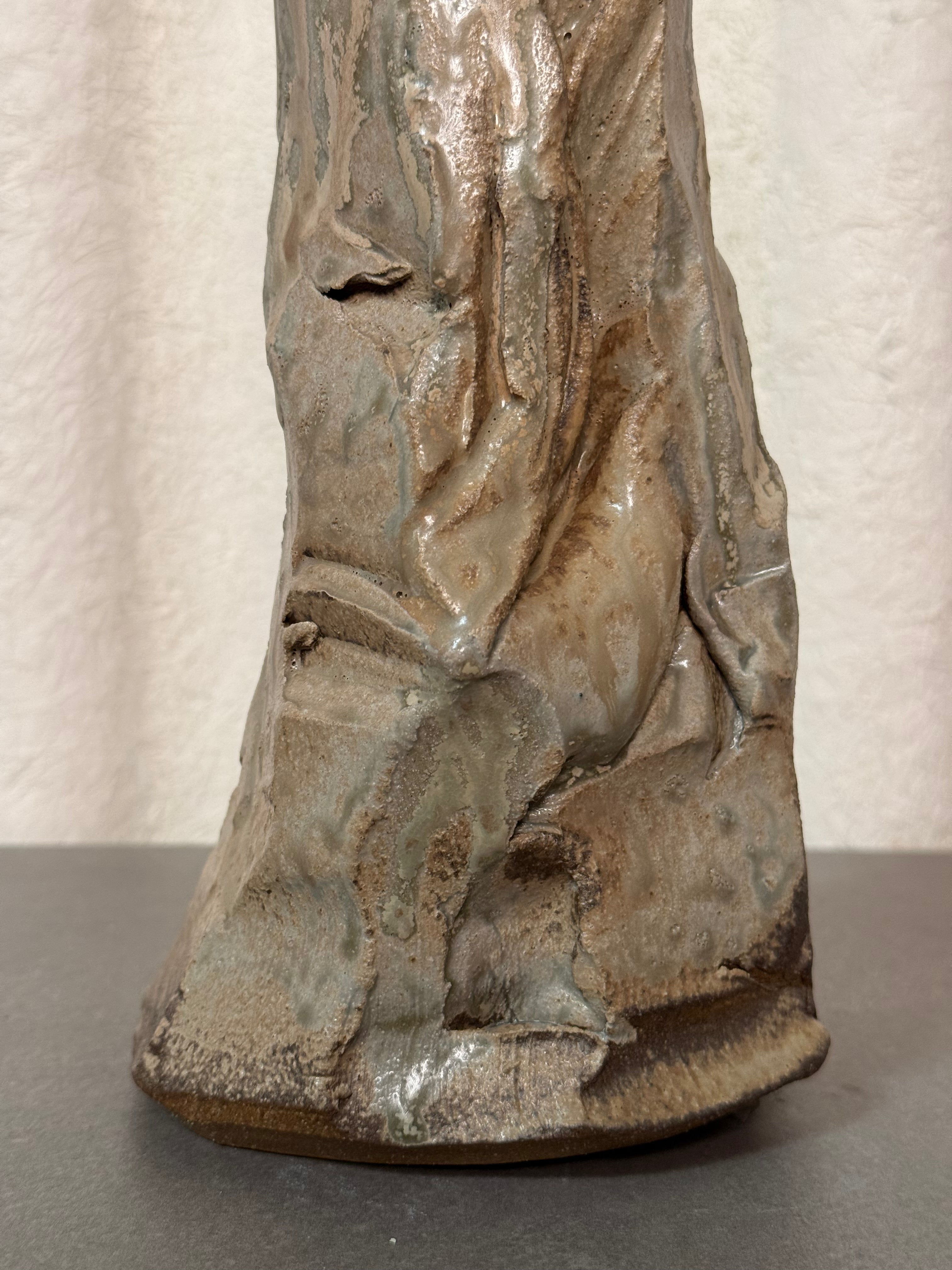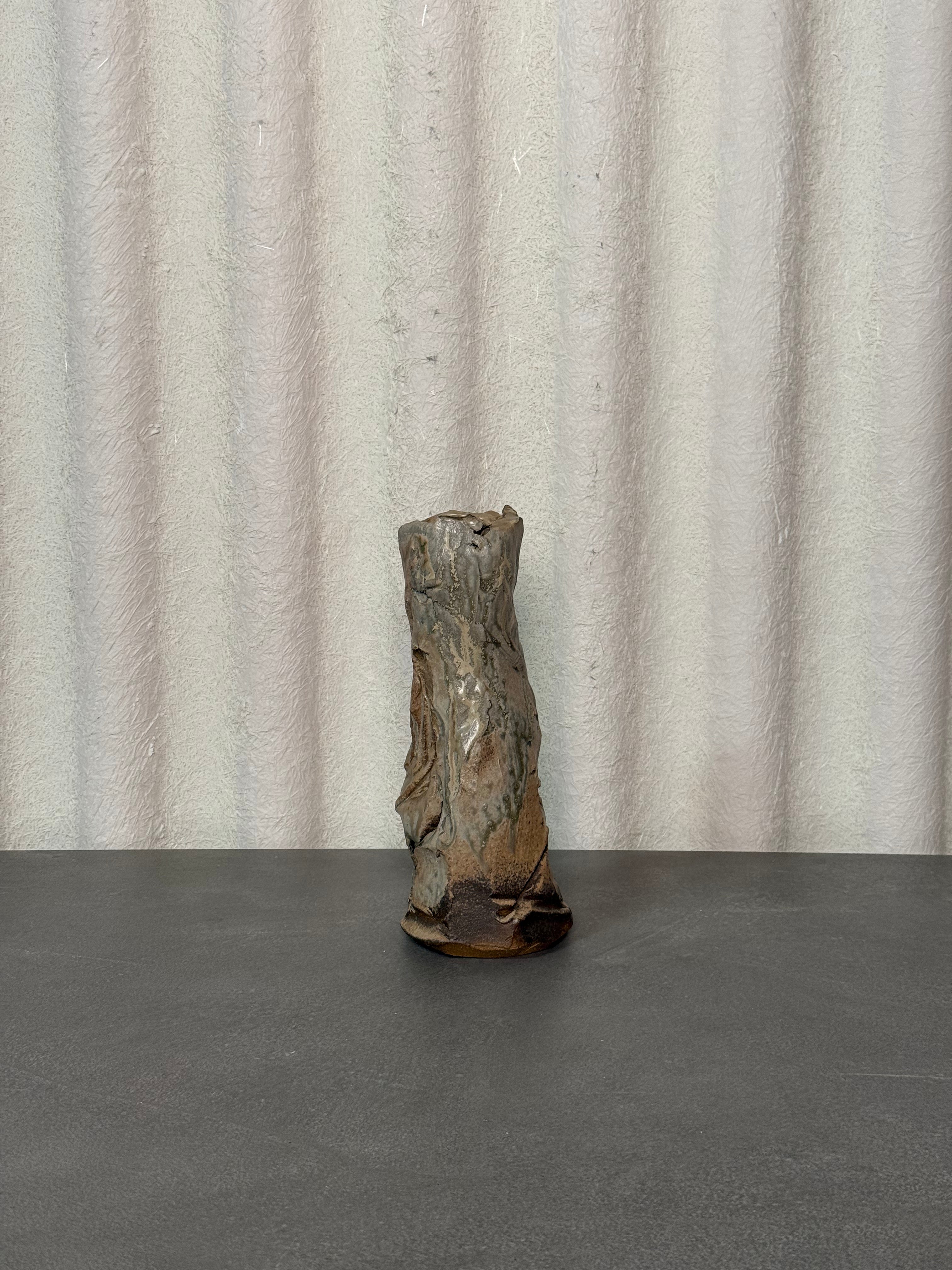 Textural stoneware vase by Augusta Pots, featuring an expressive hand-built form with layered natural glazes. Its sculptural surface and organic silhouette capture the essence of contemporary ceramic artistry.