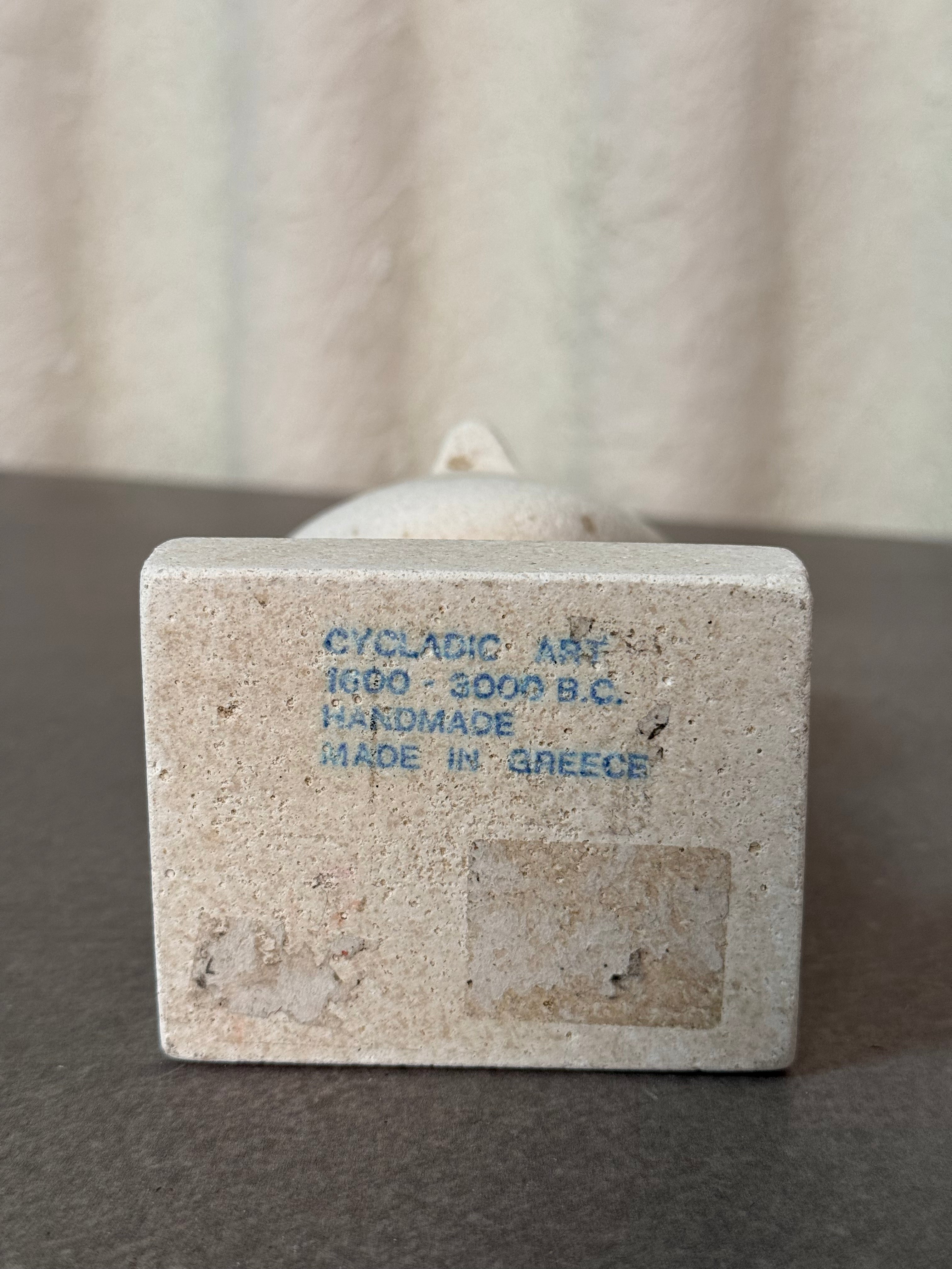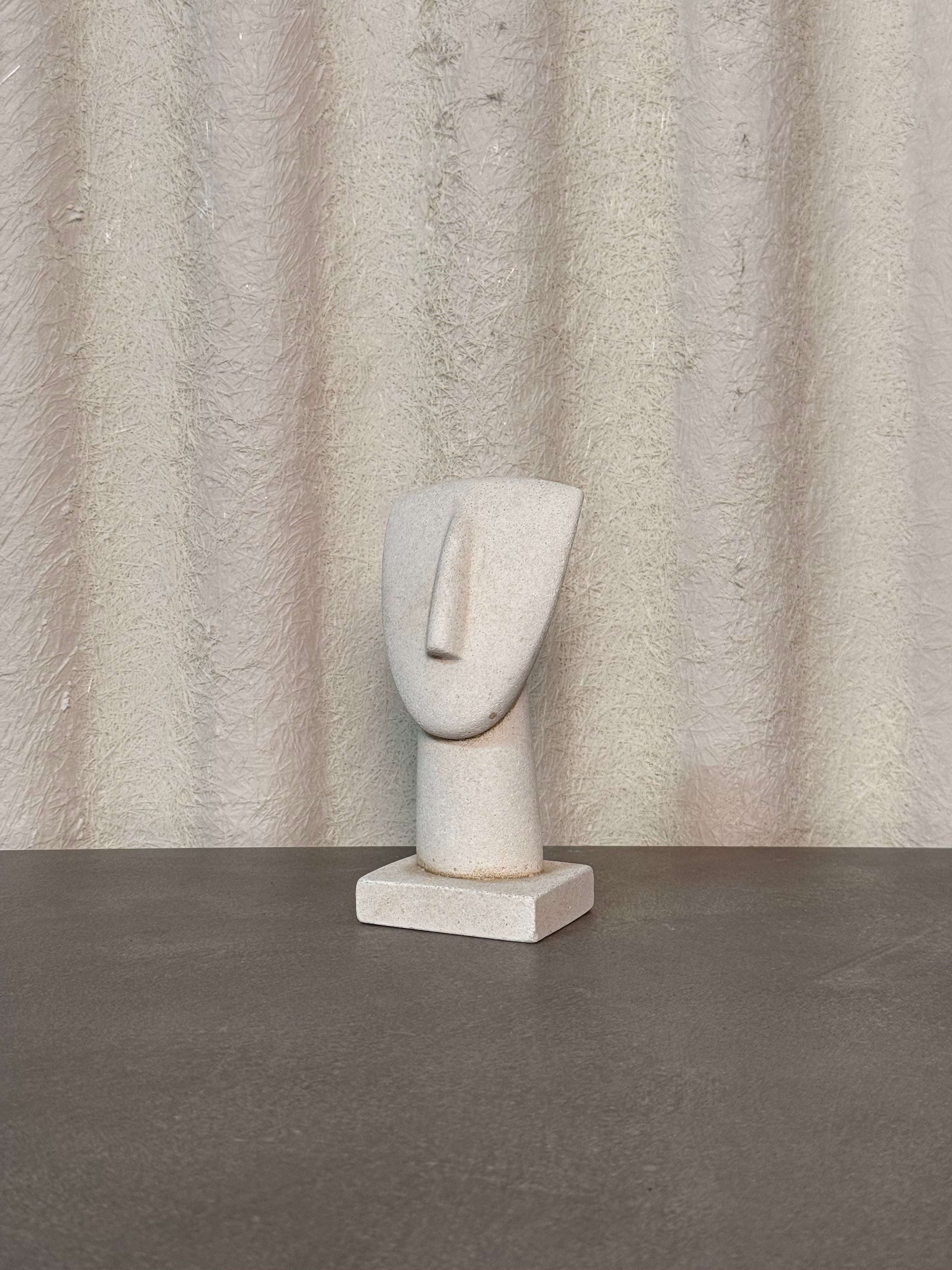 Minimalist carved stone bust with stylized facial features, mounted on a block base. A modernist-inspired decorative accent with timeless appeal.