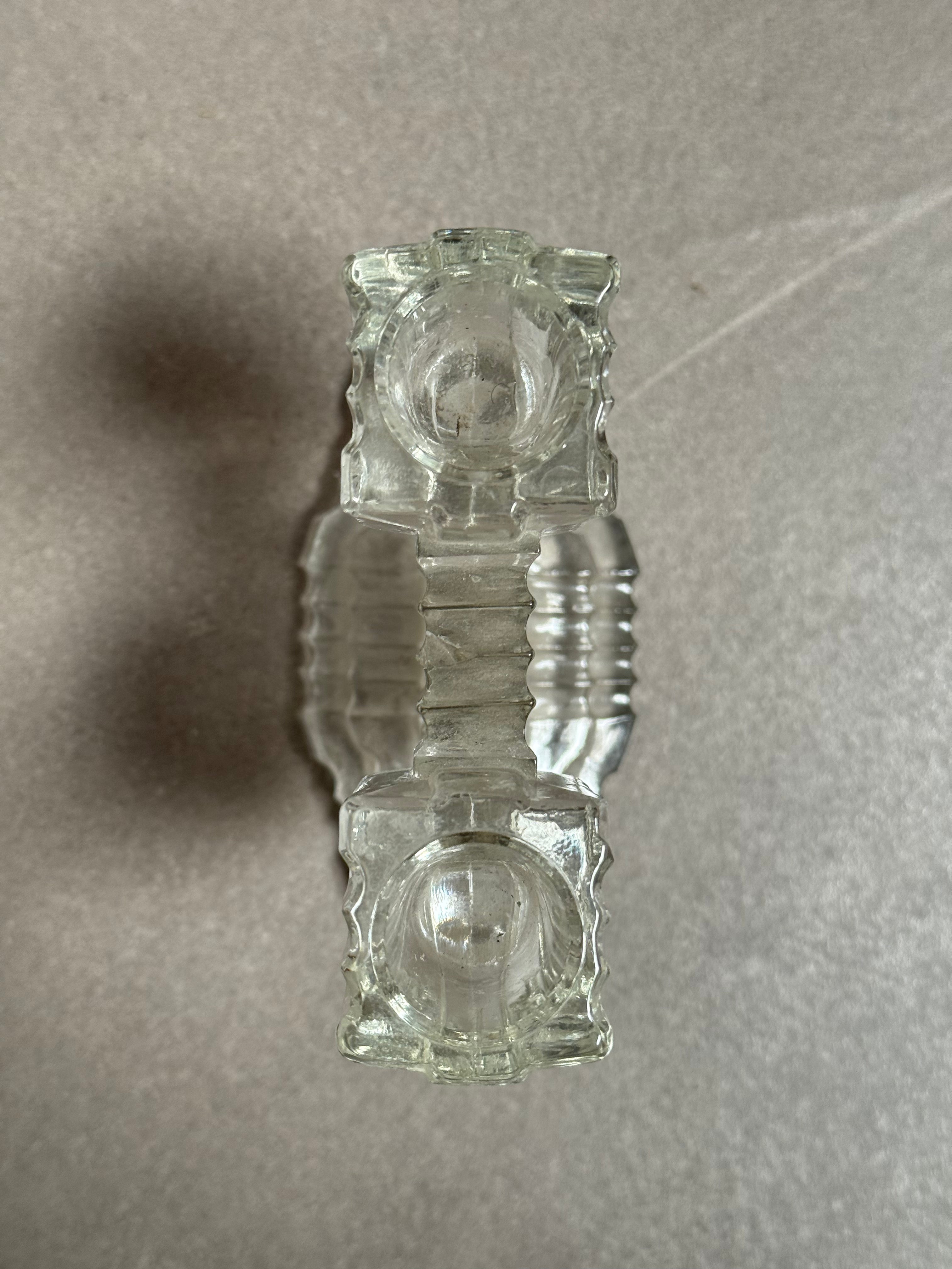 This 1940's Anchor Hocking double candle holder from their Queen Mary Collection adds a whimsical piece of vintage history to any space.
