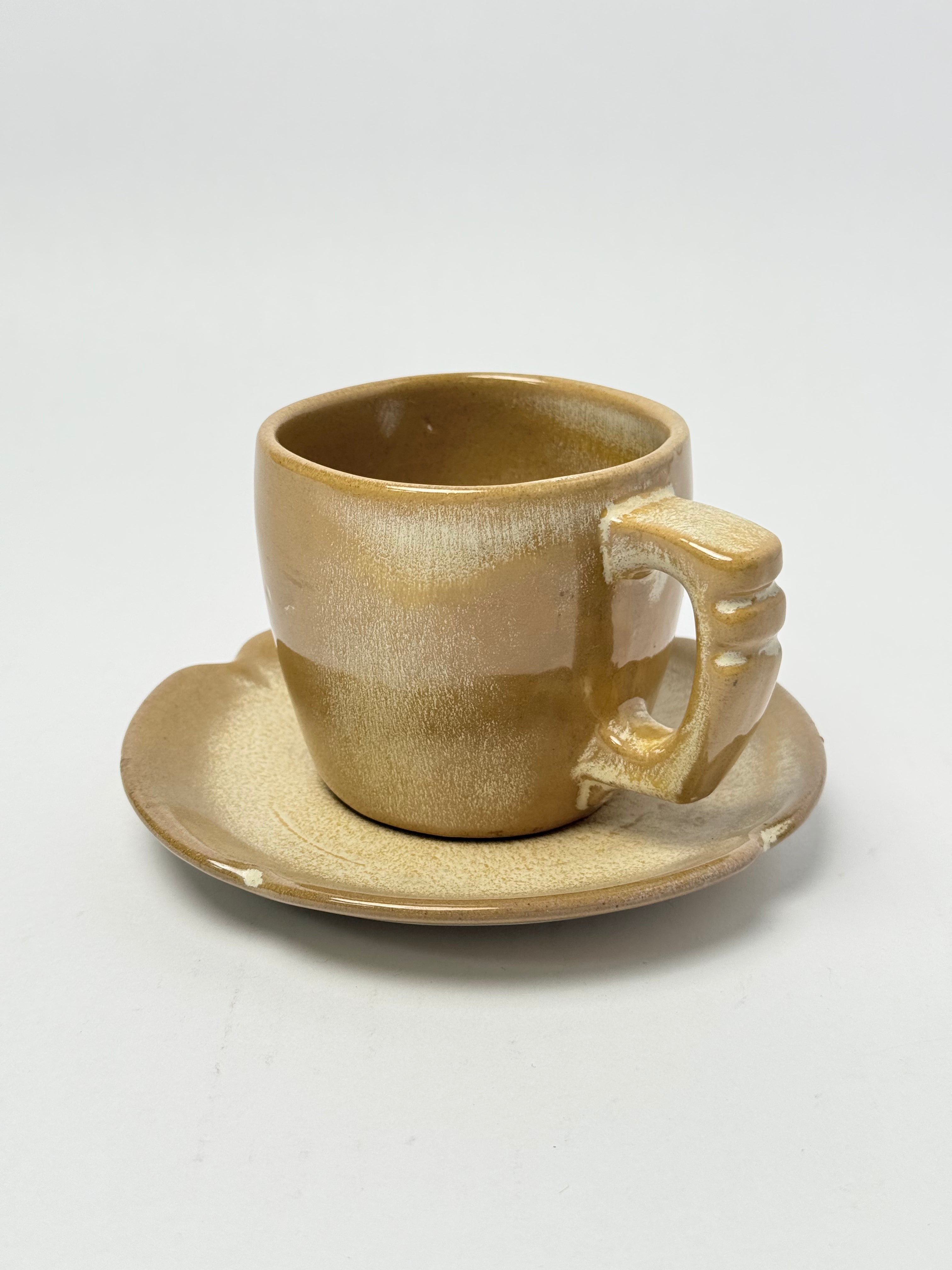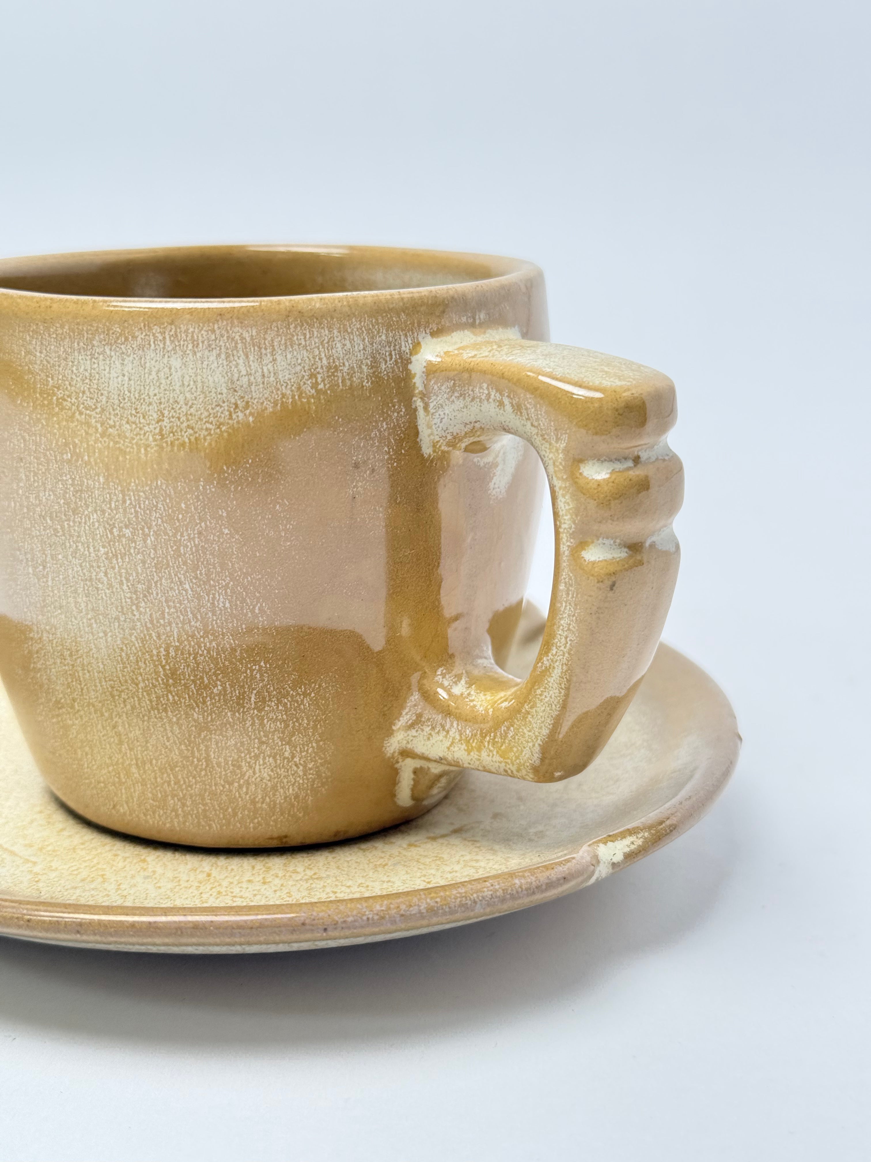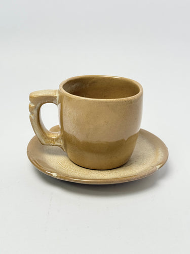 Vintage Frankoma cup and saucer set in the warm Desert Gold glaze, featuring the brand’s signature handcrafted Oklahoma clay and smooth mid-century design. Perfect for collectors or for adding a touch of charm to your coffee or tea ritual. Durable, timeless, and distinctly Frankoma.