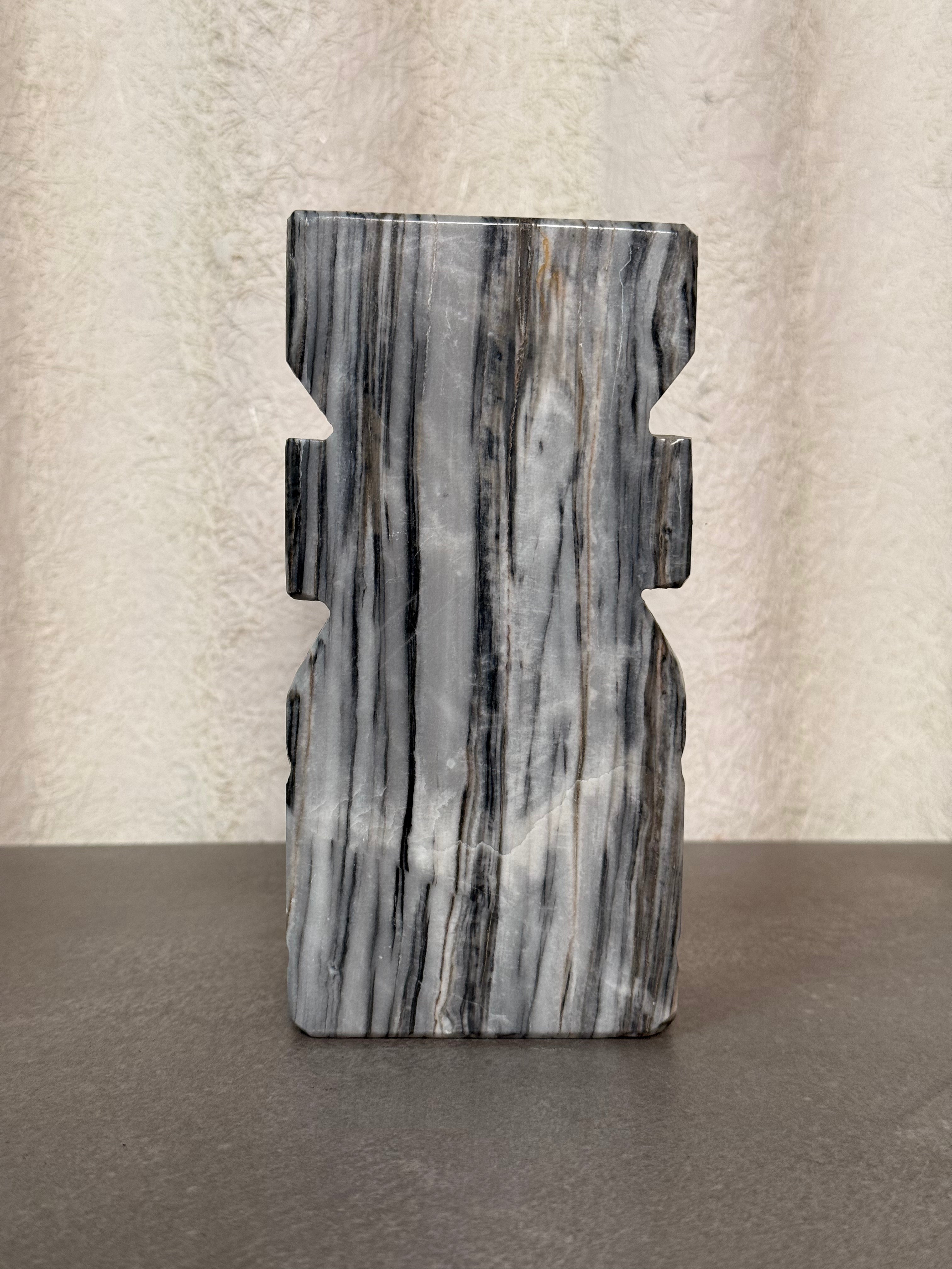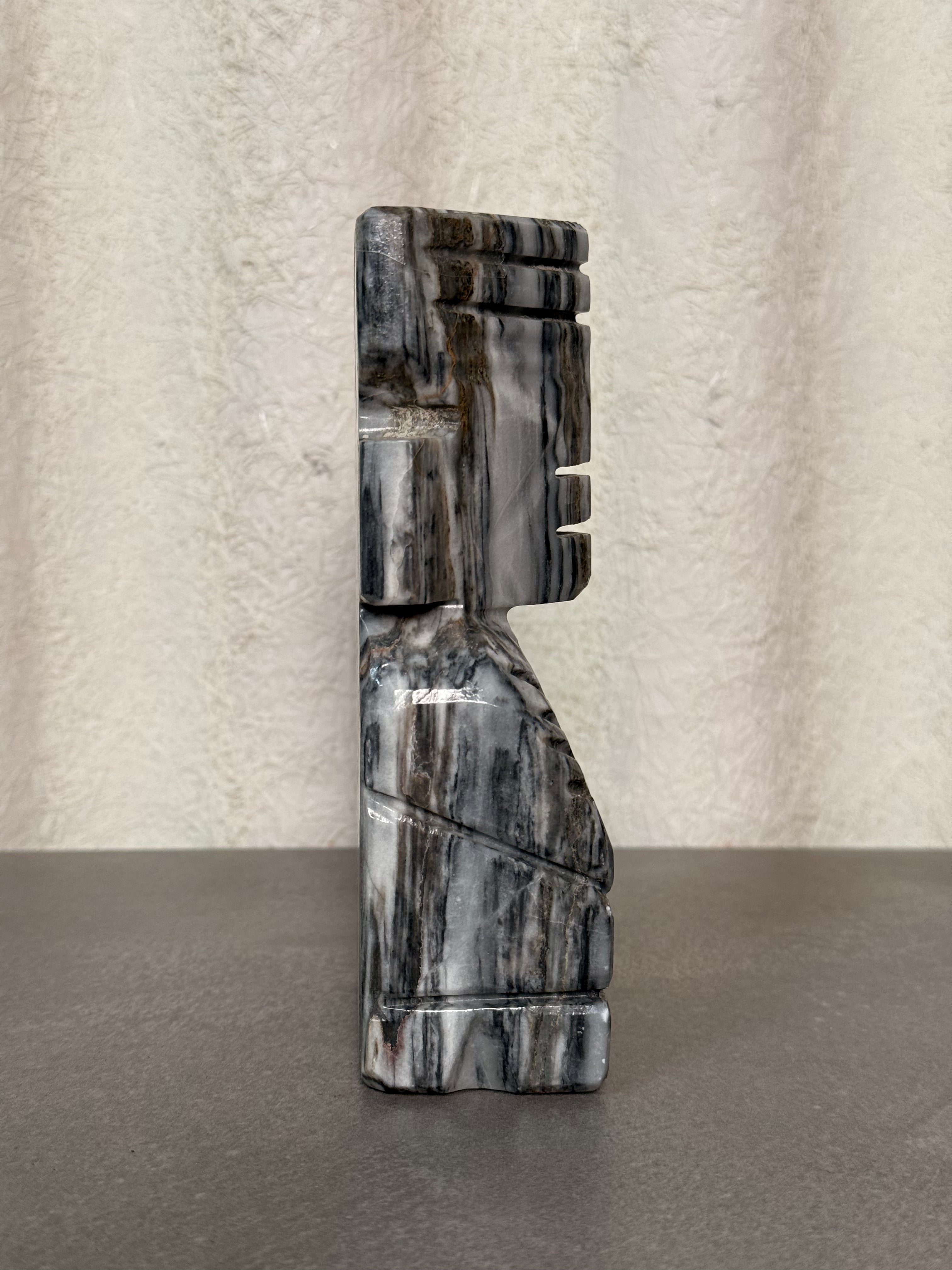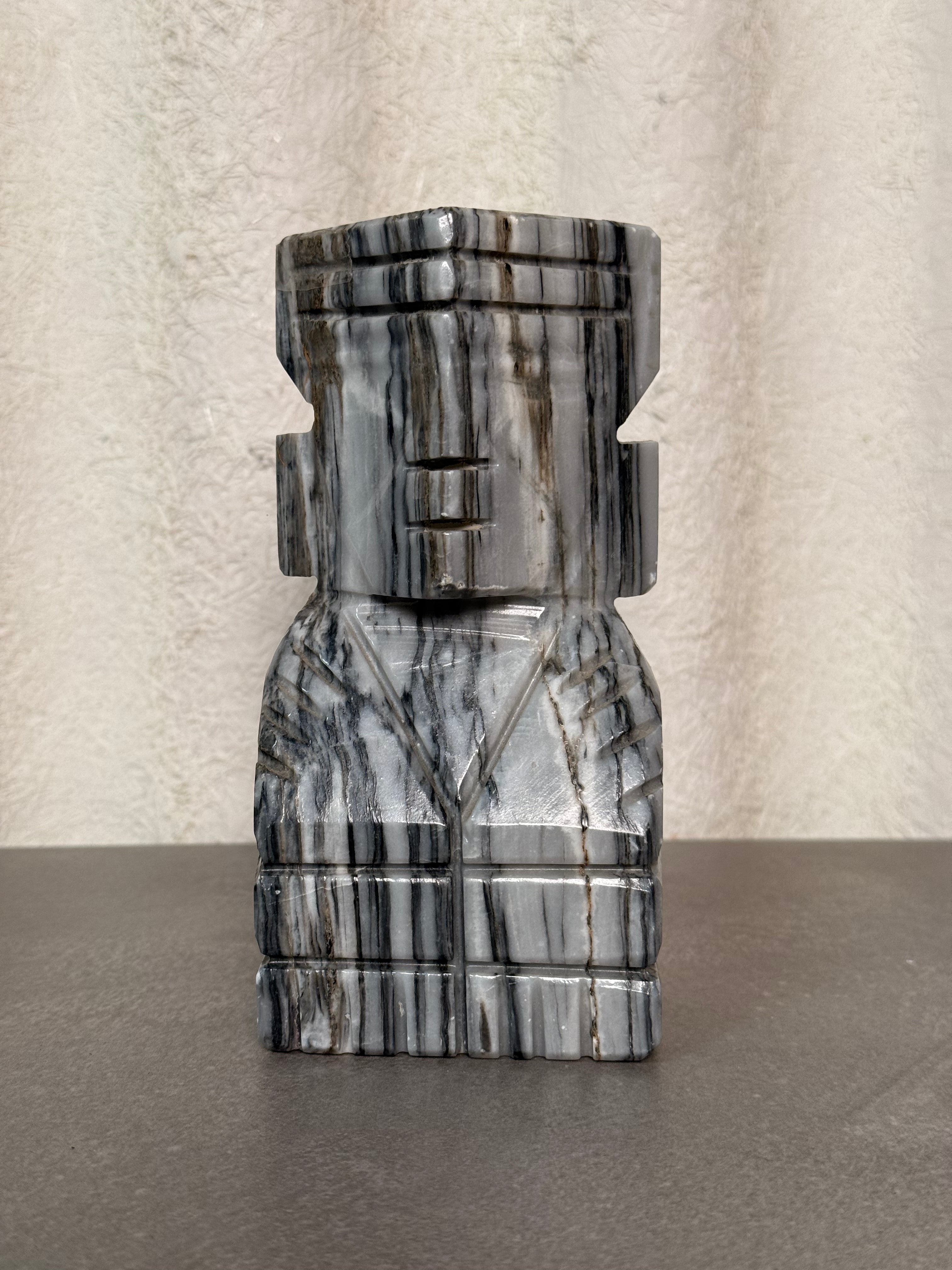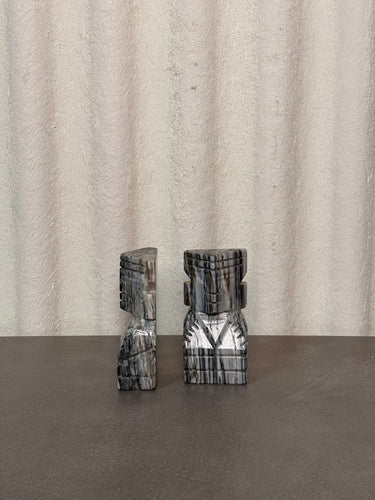 Bring bold character and natural texture to your shelves with these vintage stone tiki bookends. Hand-carved from solid stone with intricate stacked tiki-style detailing, this pair adds both weight and style to any library or display.