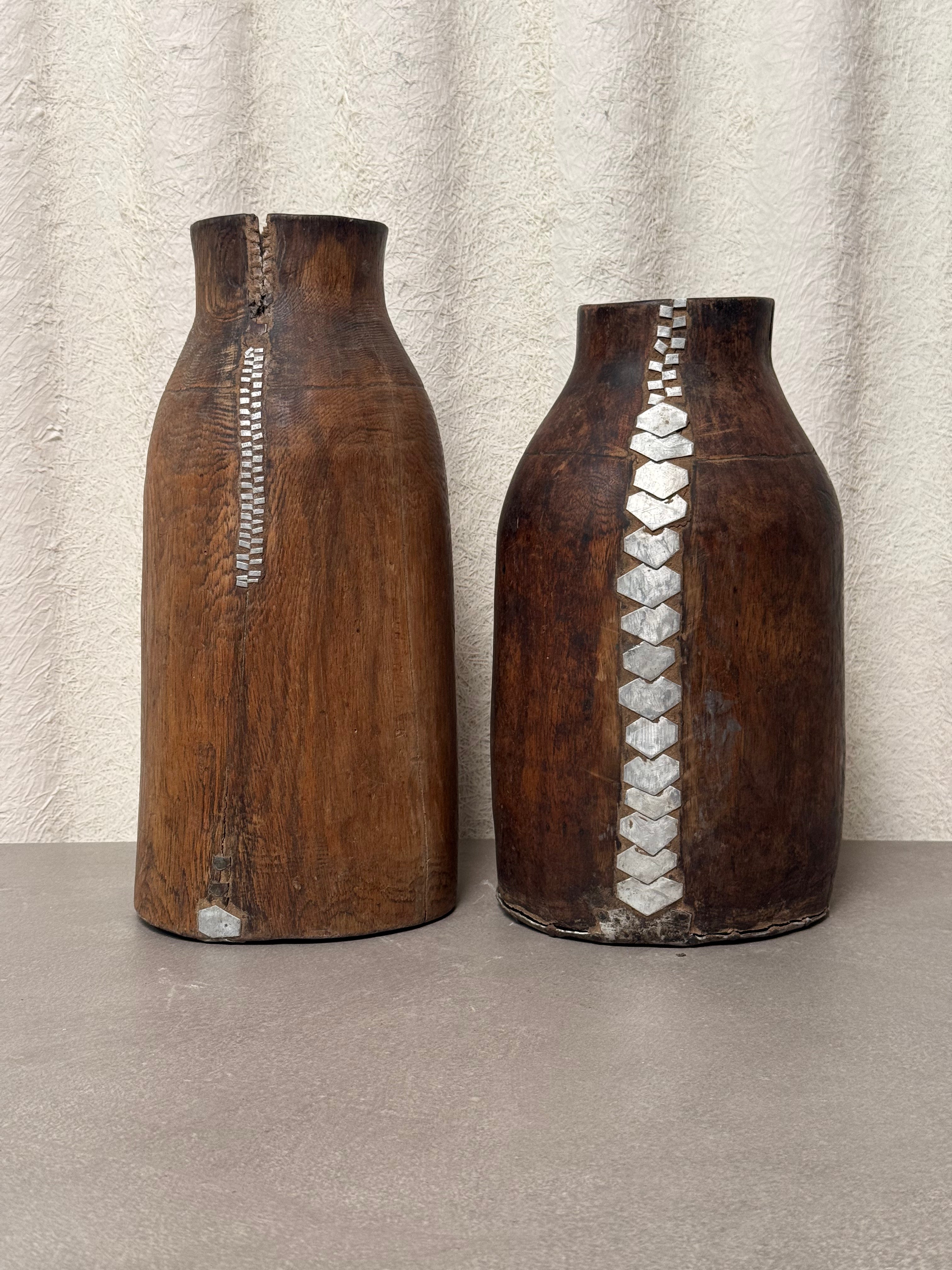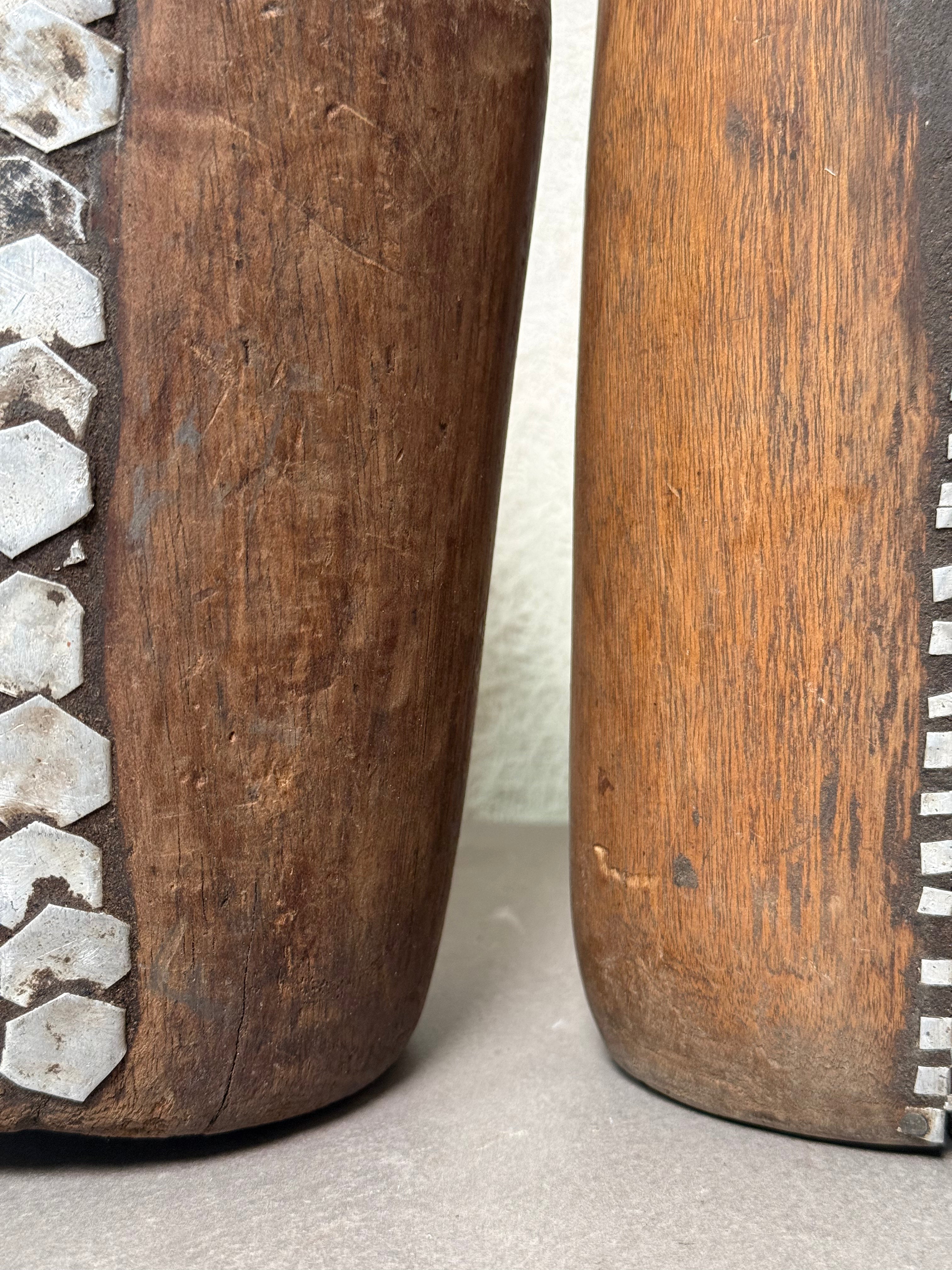 Good vintage condition with age-related wear, surface irregularities, and patina consistent with traditional handcrafted pieces. Each example is unique in tone, carving detail, and metal embellishment.