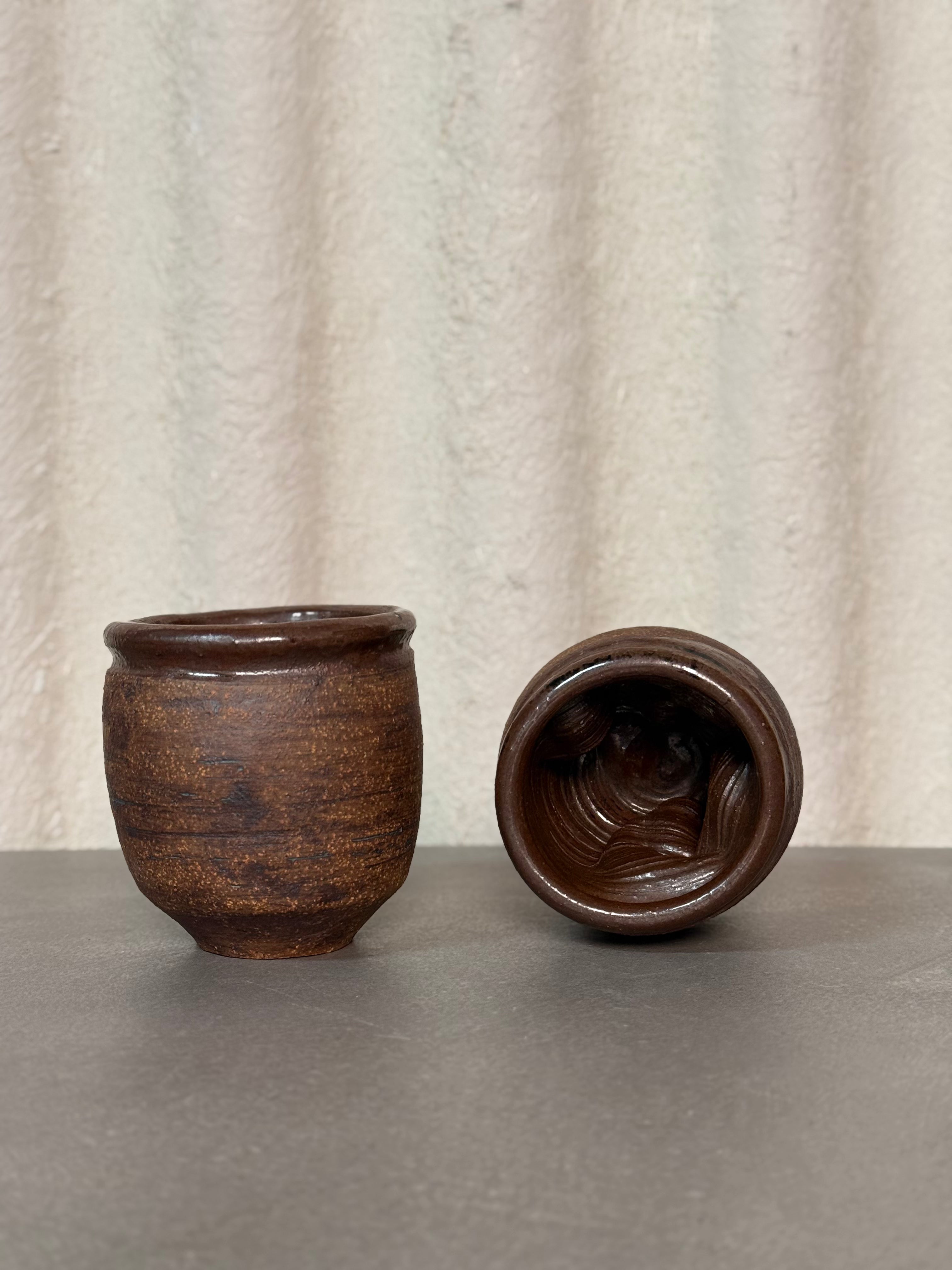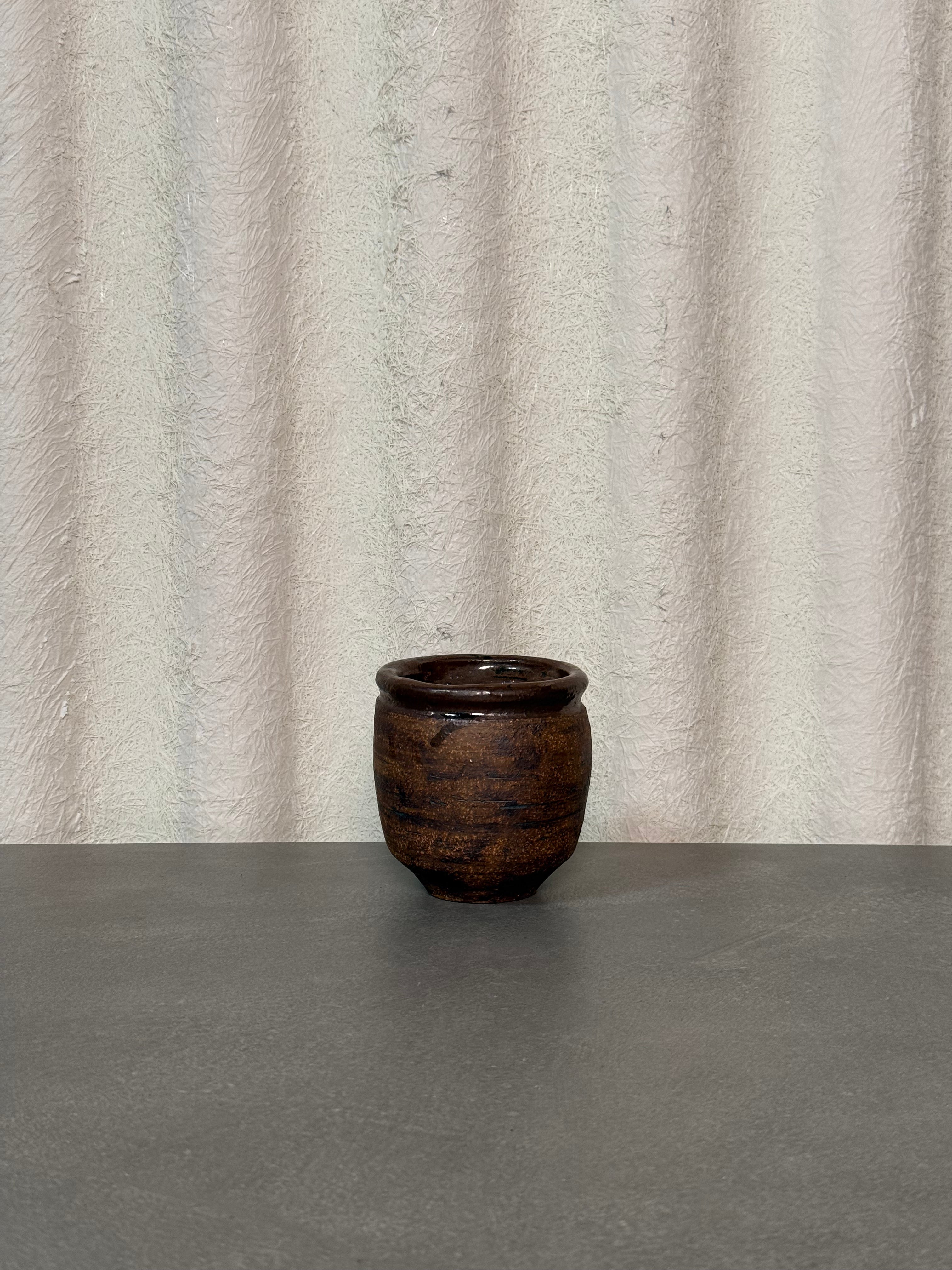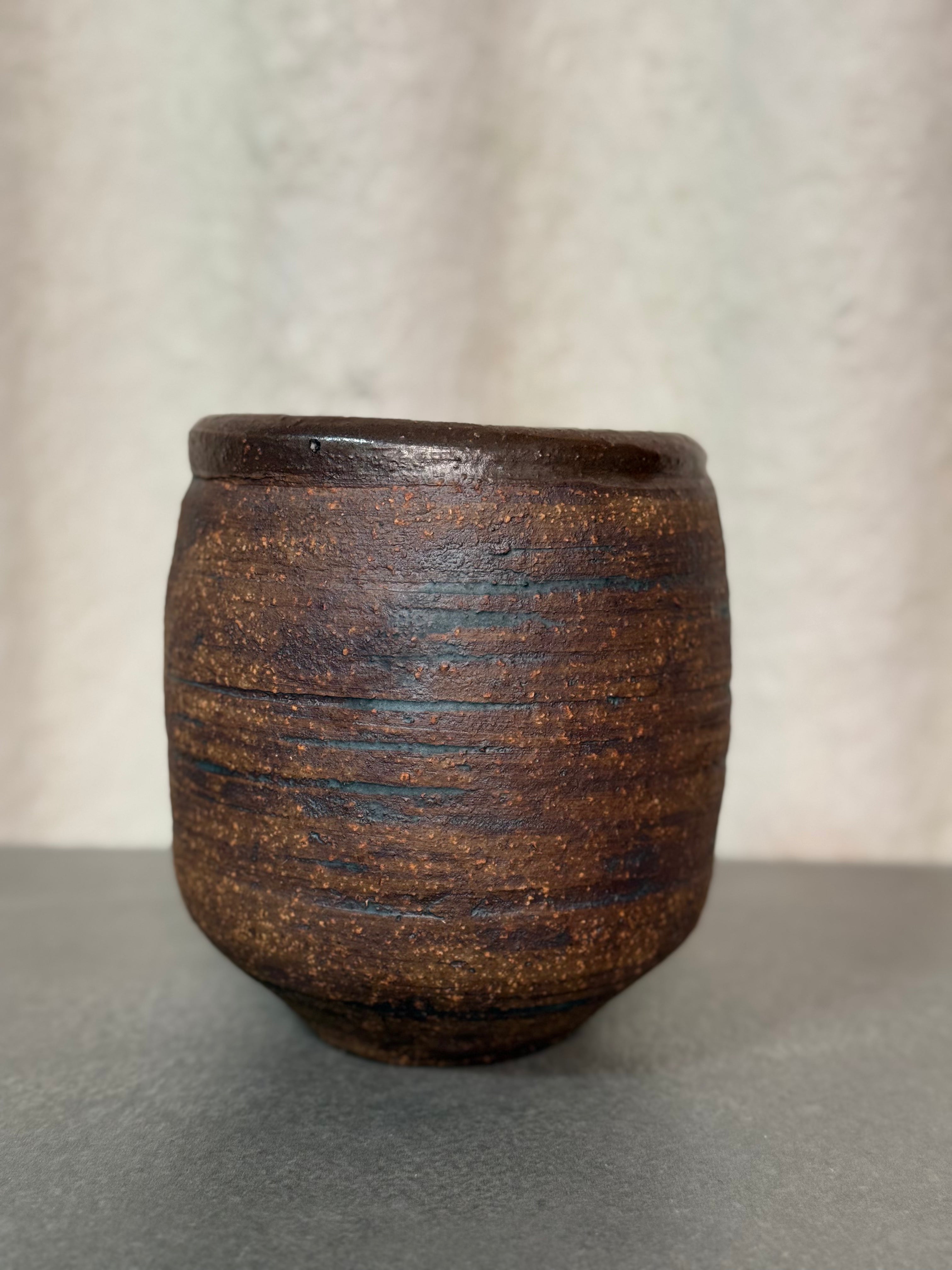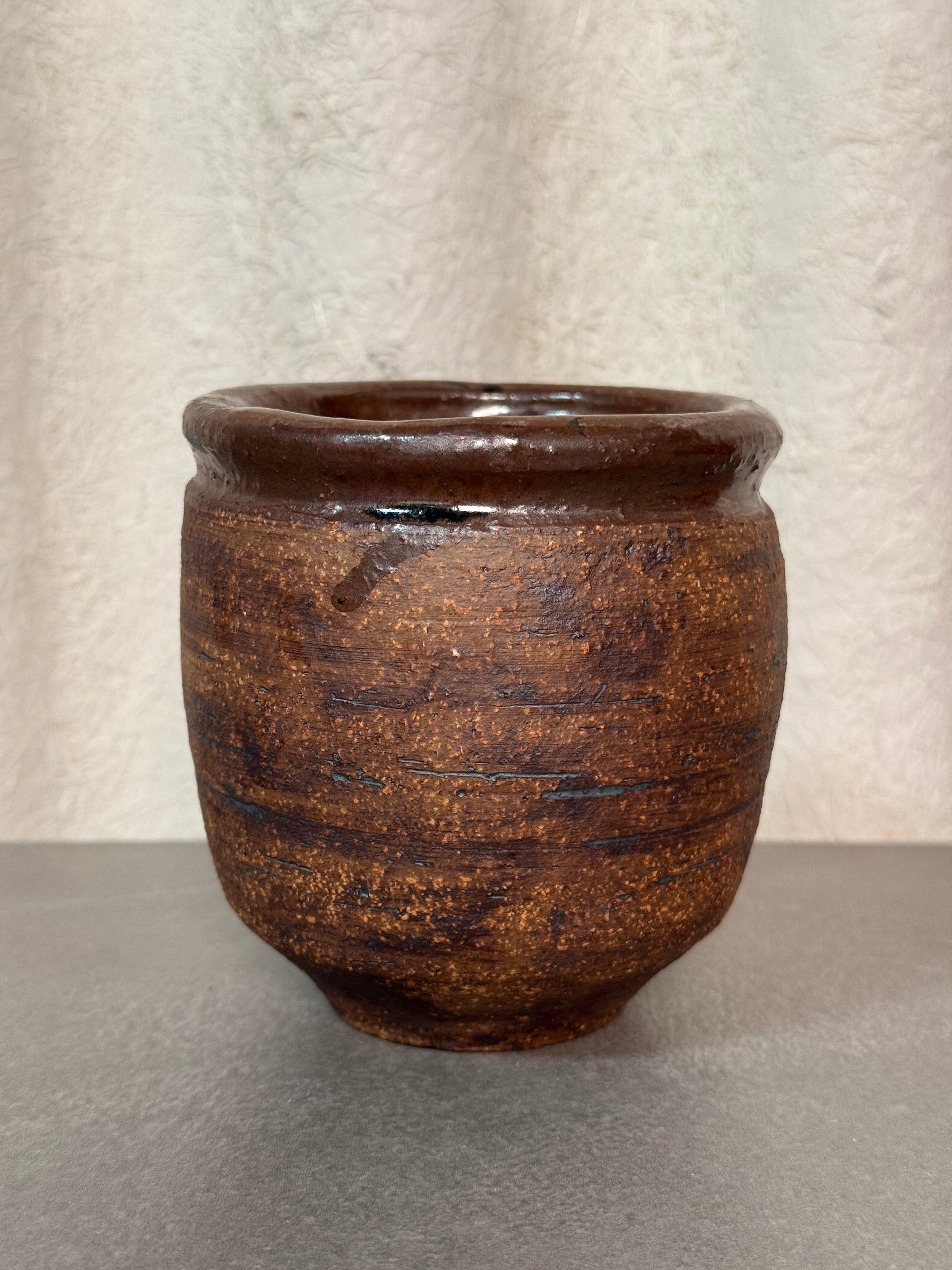 Rustic handmade ceramic vase with earthy tones and natural texture. A unique vintage piece, perfect for flowers or as a decorative accent.