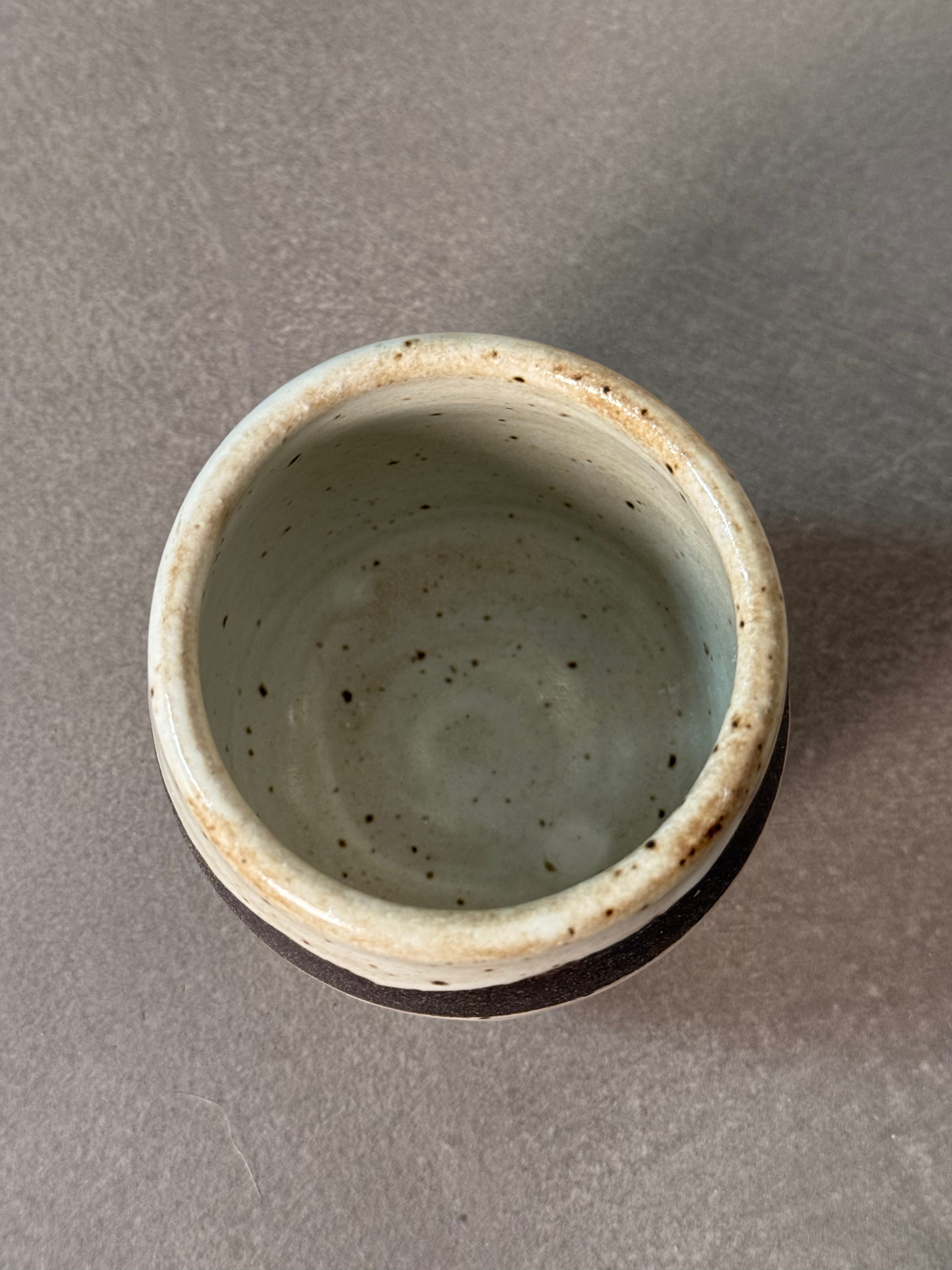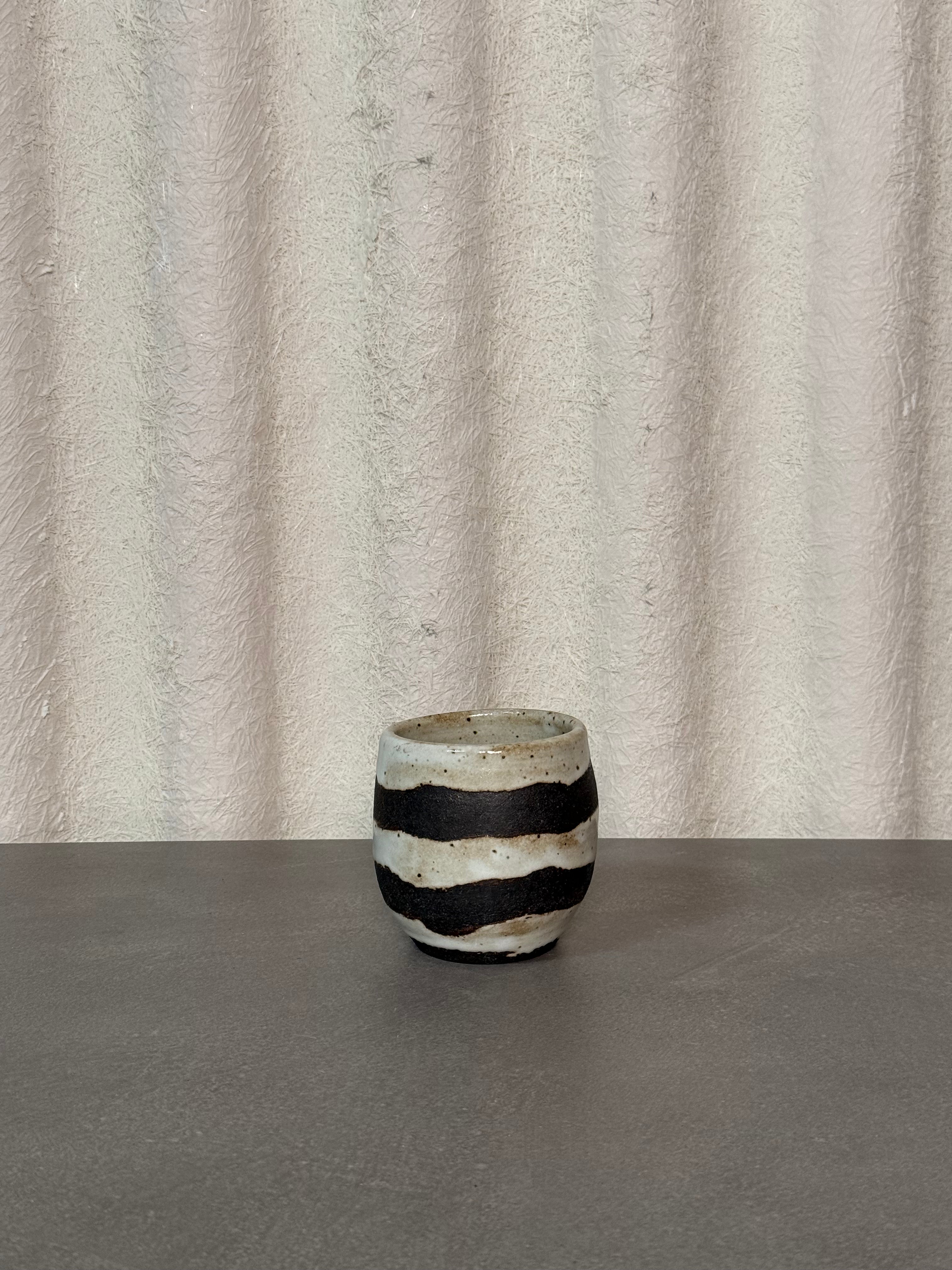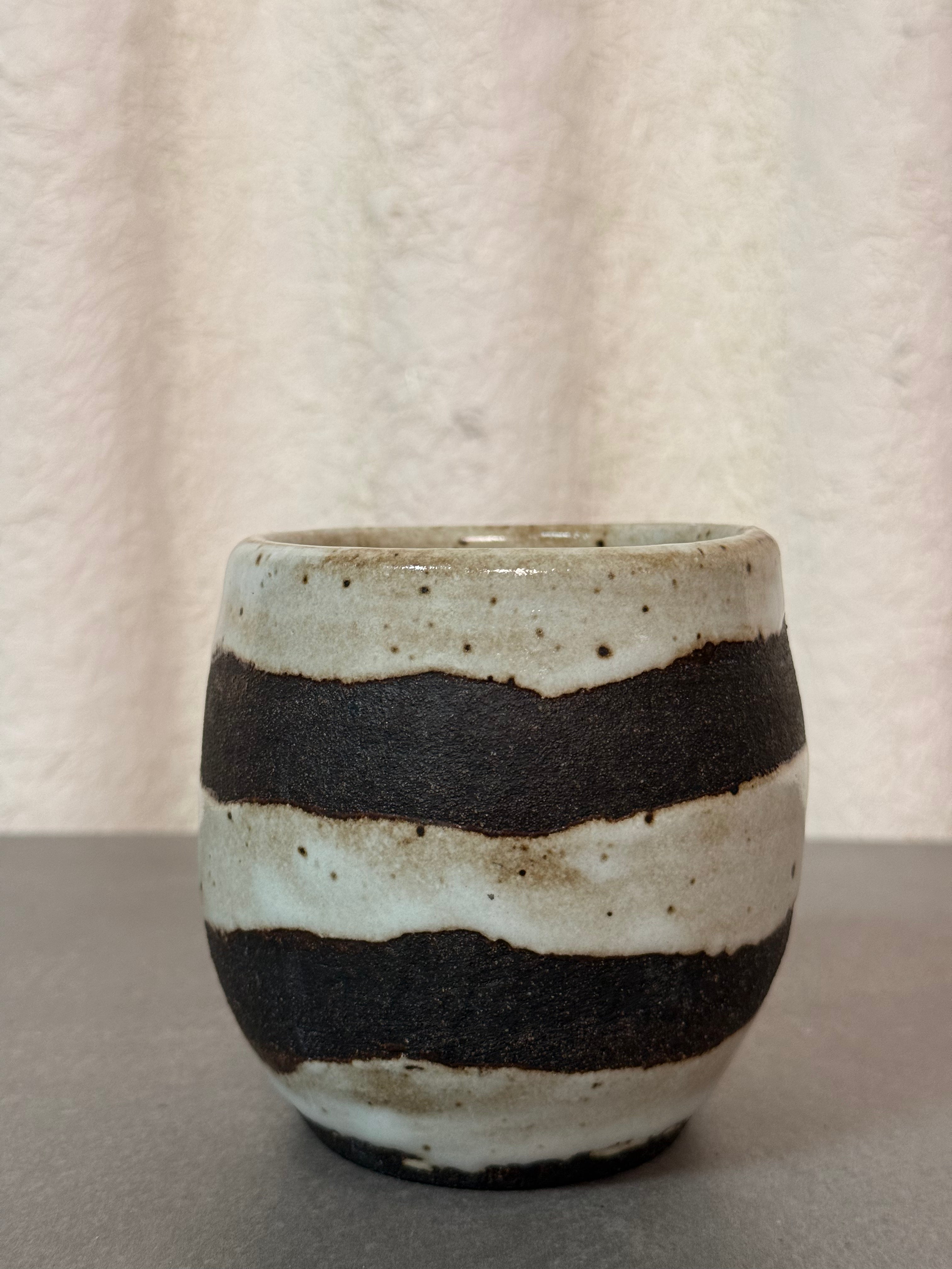 Handmade ceramic vase with bold horizontal stripes in earthy brown and creamy glaze. A rustic yet modern studio pottery piece, perfect for display or use.