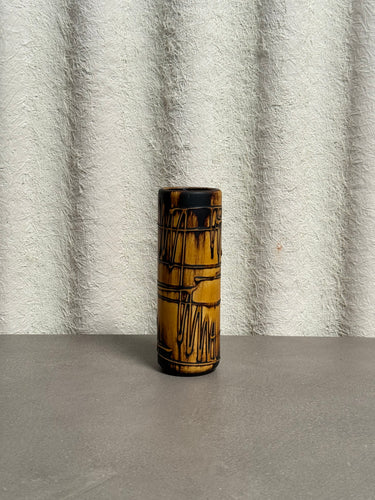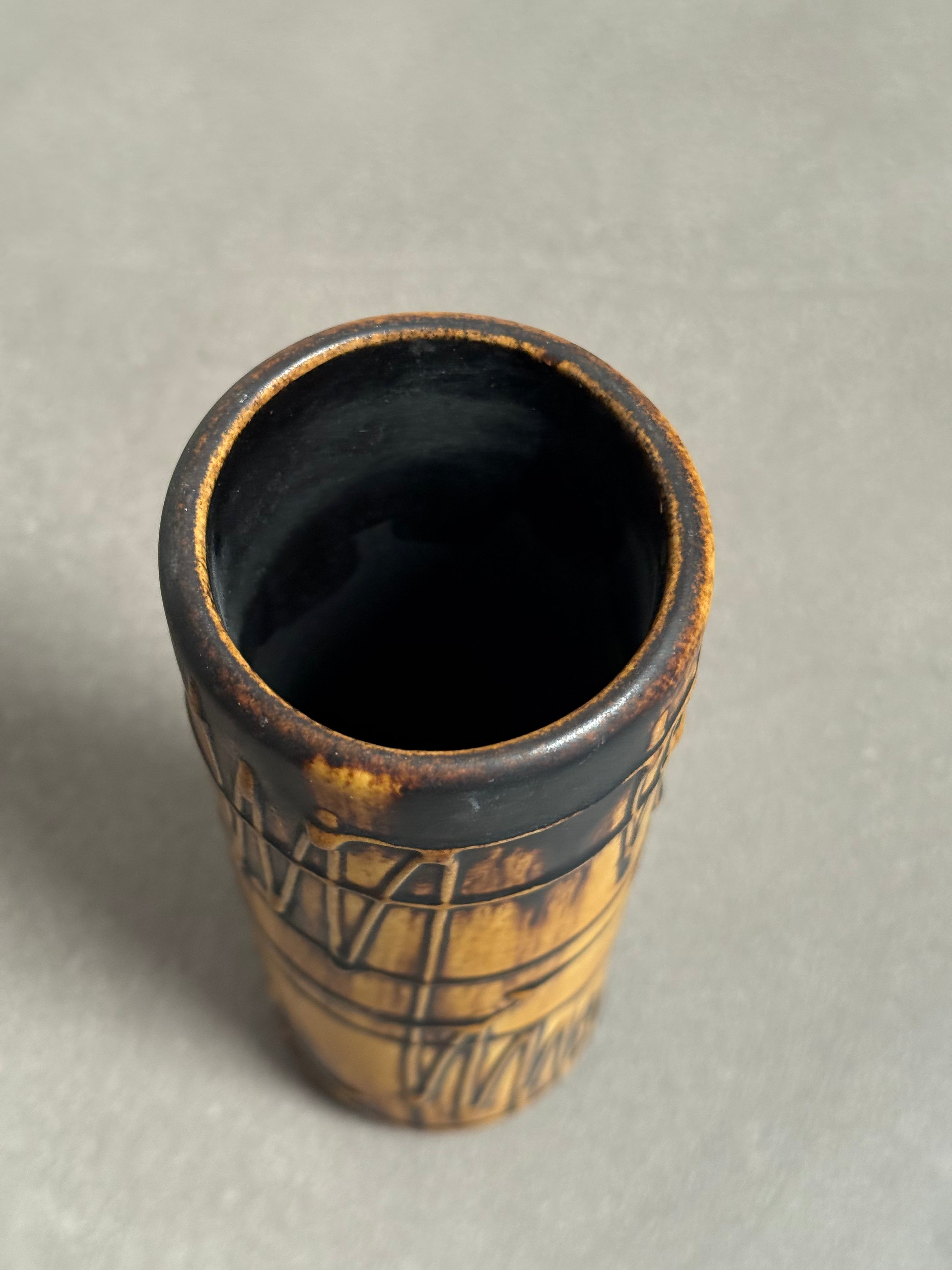 Rare Vintage Ilkra of West Germany vase featuring satin dark brown and caramel tones over abstract designs.