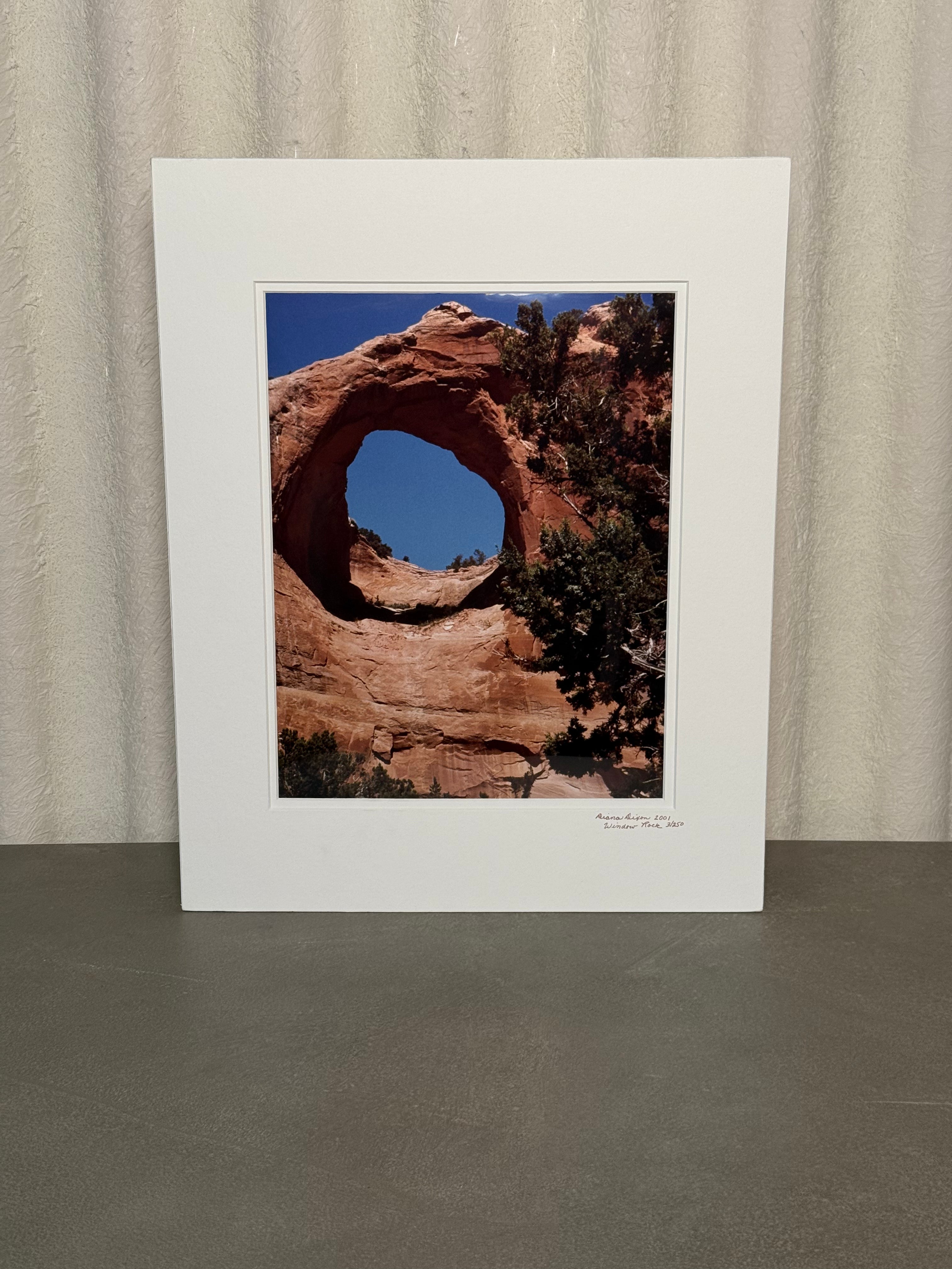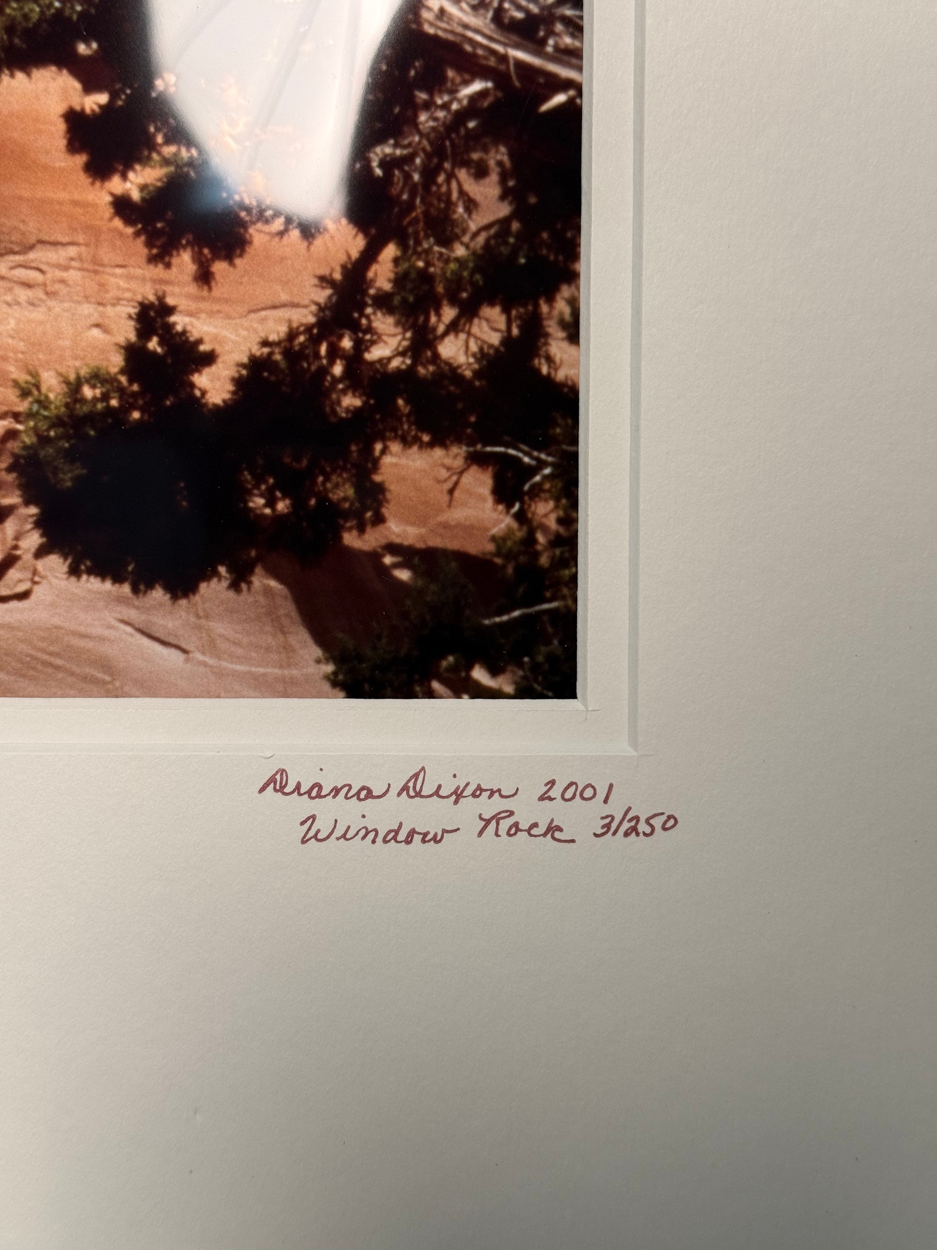 Fine art photograph by Diana Dixon titled Window Rock, capturing the natural sandstone arch formation in Arizona against a vivid blue sky. Professionally matted and signed by the artist—an elegant addition for collectors of Southwestern landscape photography.