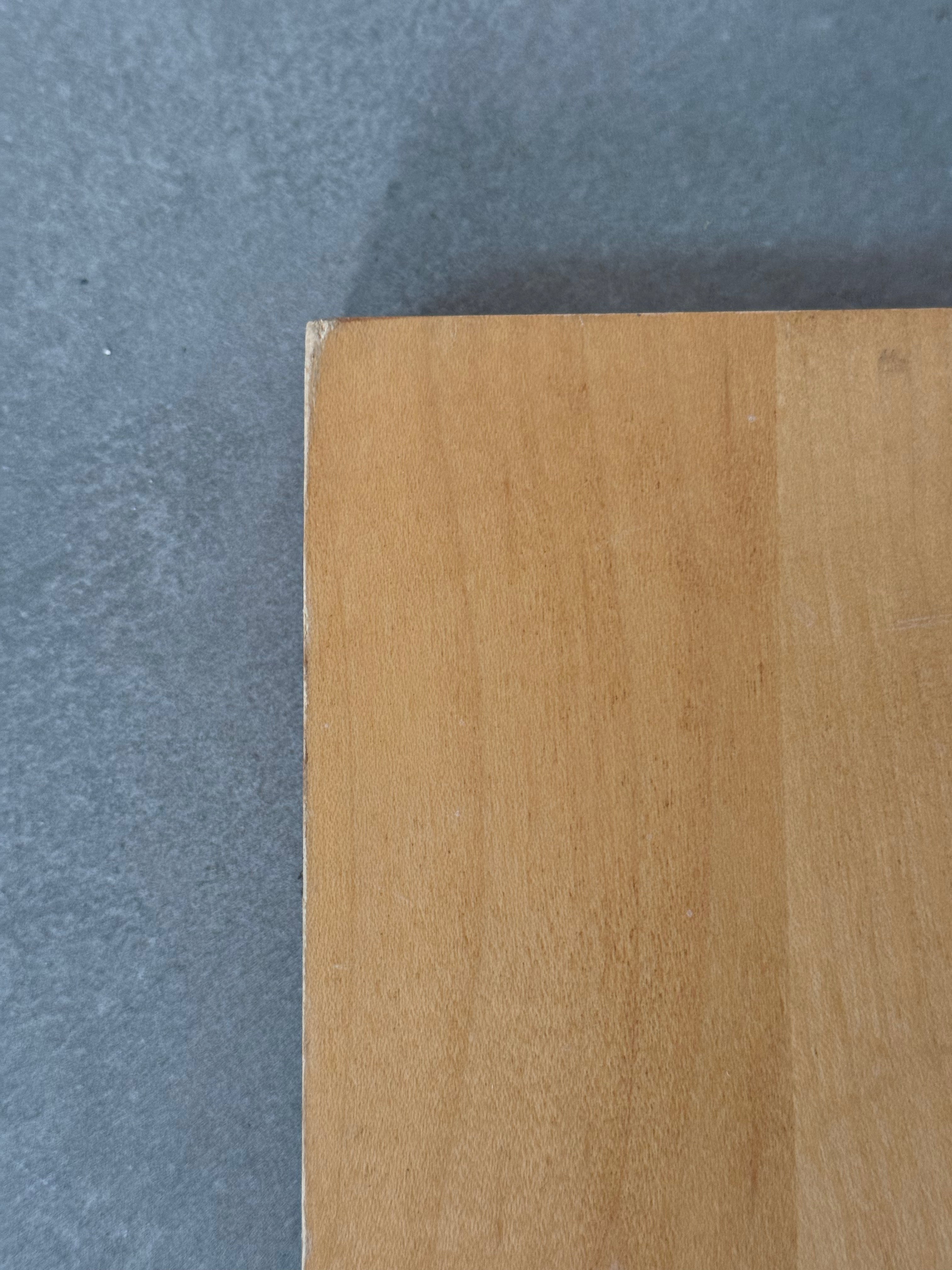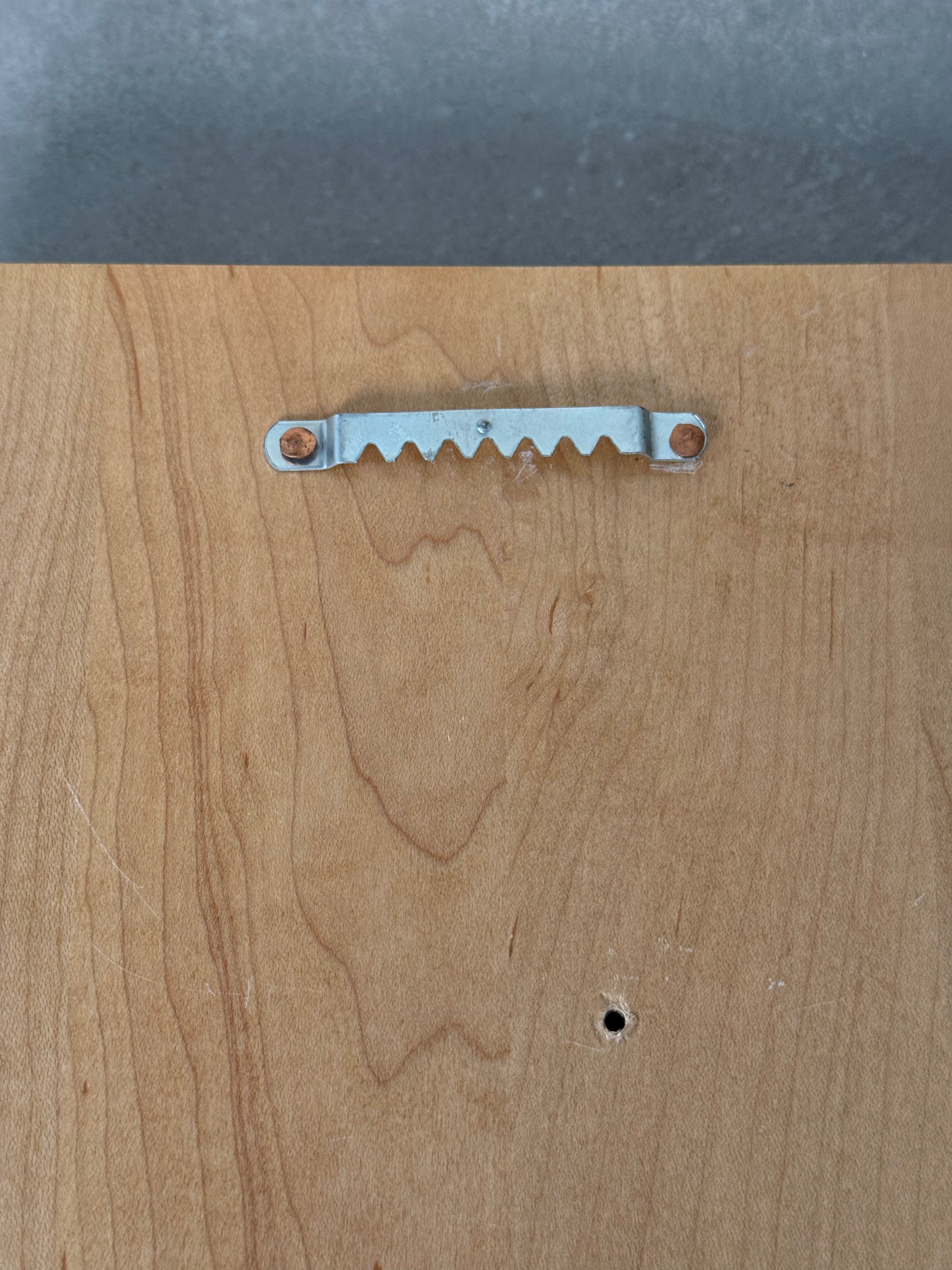 Good vintage condition with light surface wear, natural oxidation to the metal element, and minor marks to the wood panel consistent with age and display.
