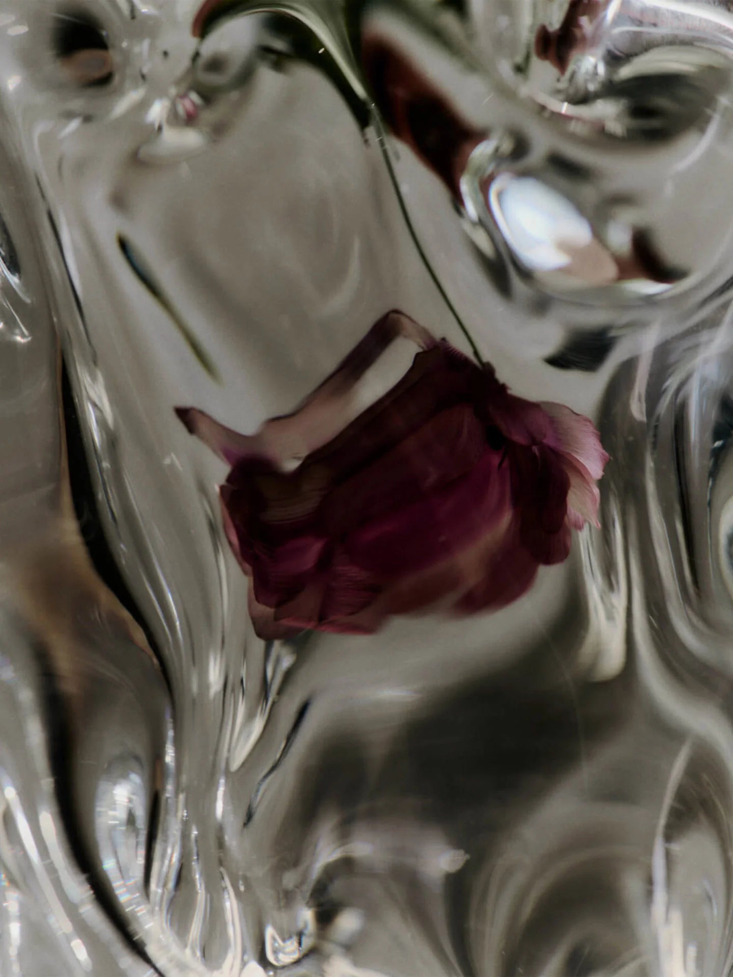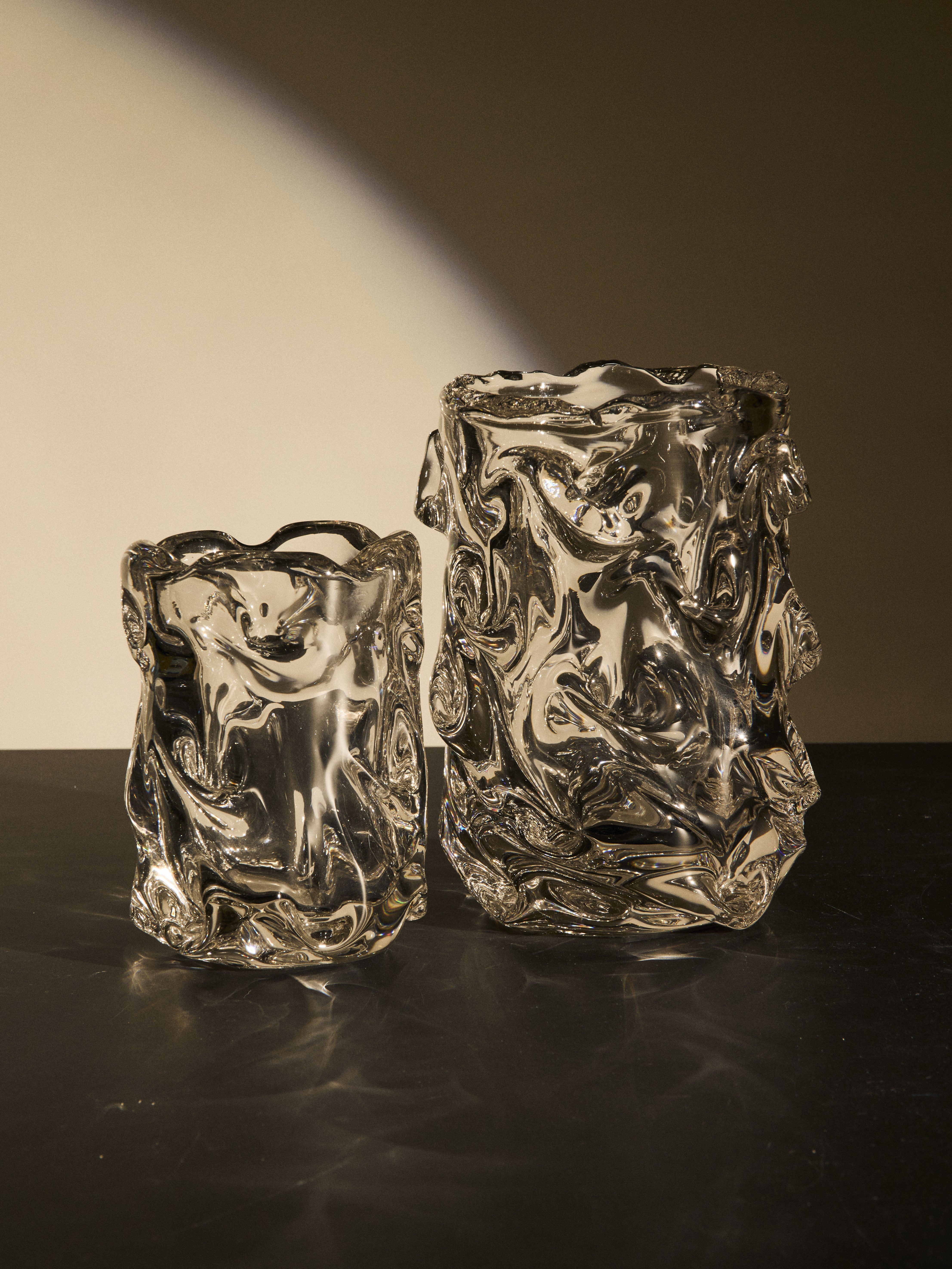 The Hydra Vase is crafted from mouth-blown glass with a form that captures gentle motion. Its rippling silhouette evokes the feeling of swells and vibrations, bringing a fluid, sculptural presence to the room. A considered piece that adds a quiet sense of movement to your space.