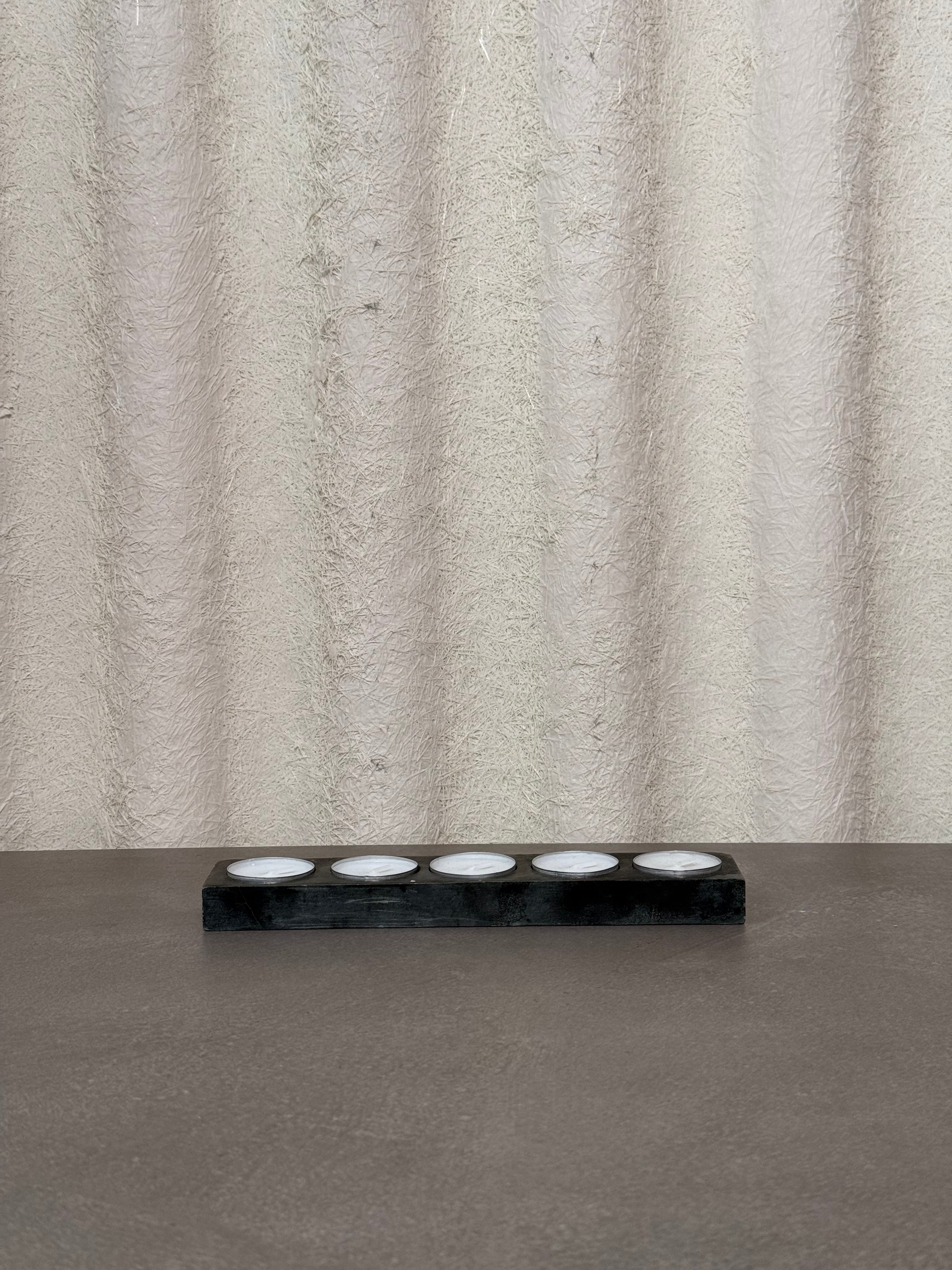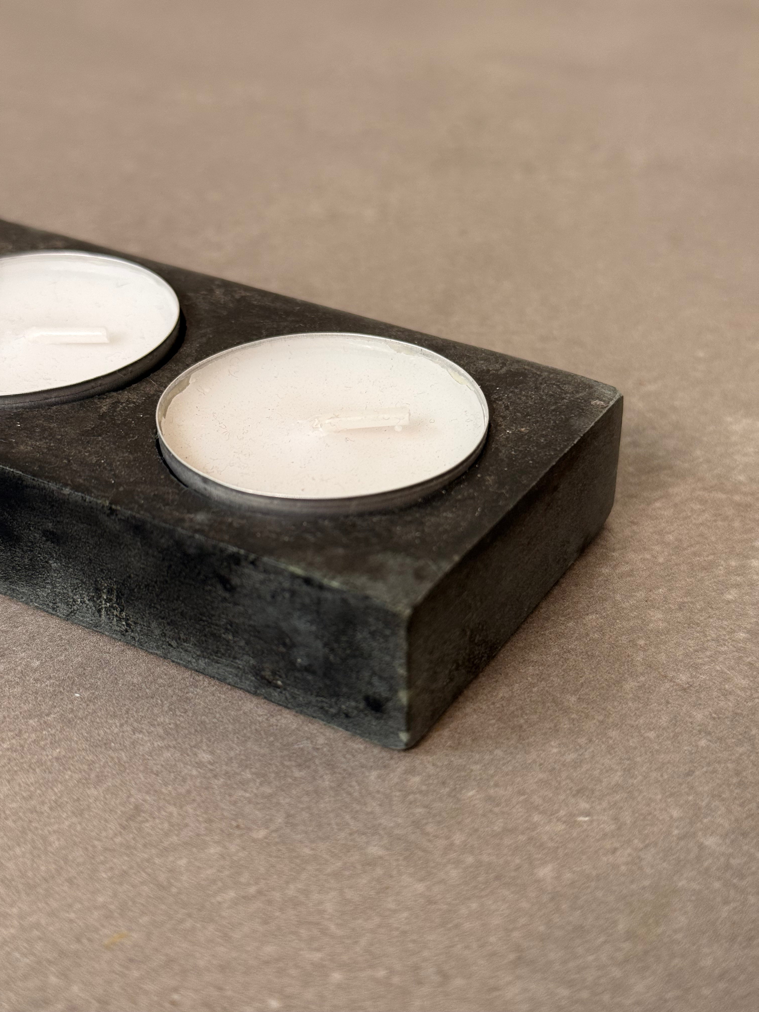 This refined vintage tealight holder has a streamlined rectangular silhouette and a dark understated wood finish. The sharp geometric lines create a sophisticated accent.